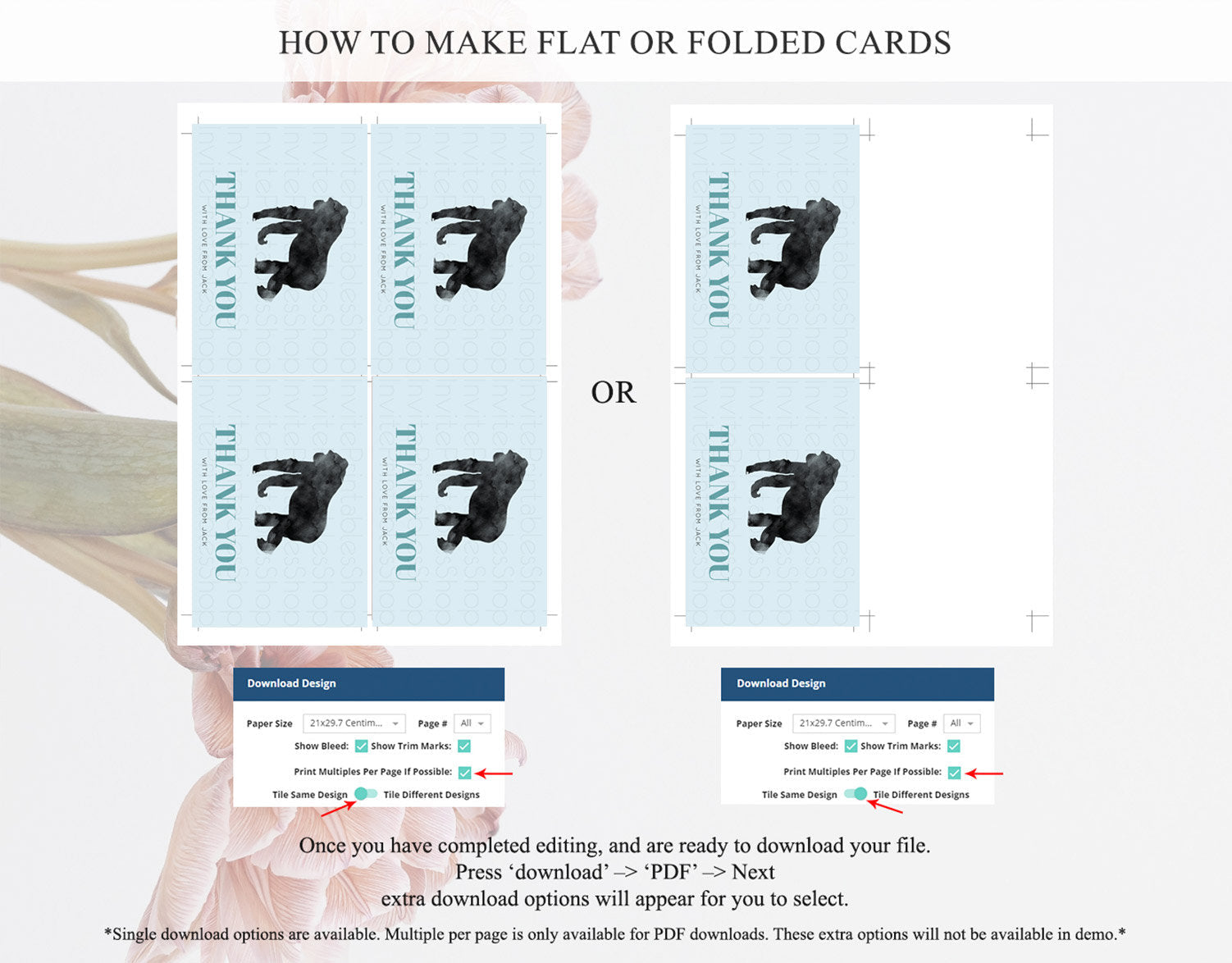 • Custom changes to artwork are not provided on existing templates.