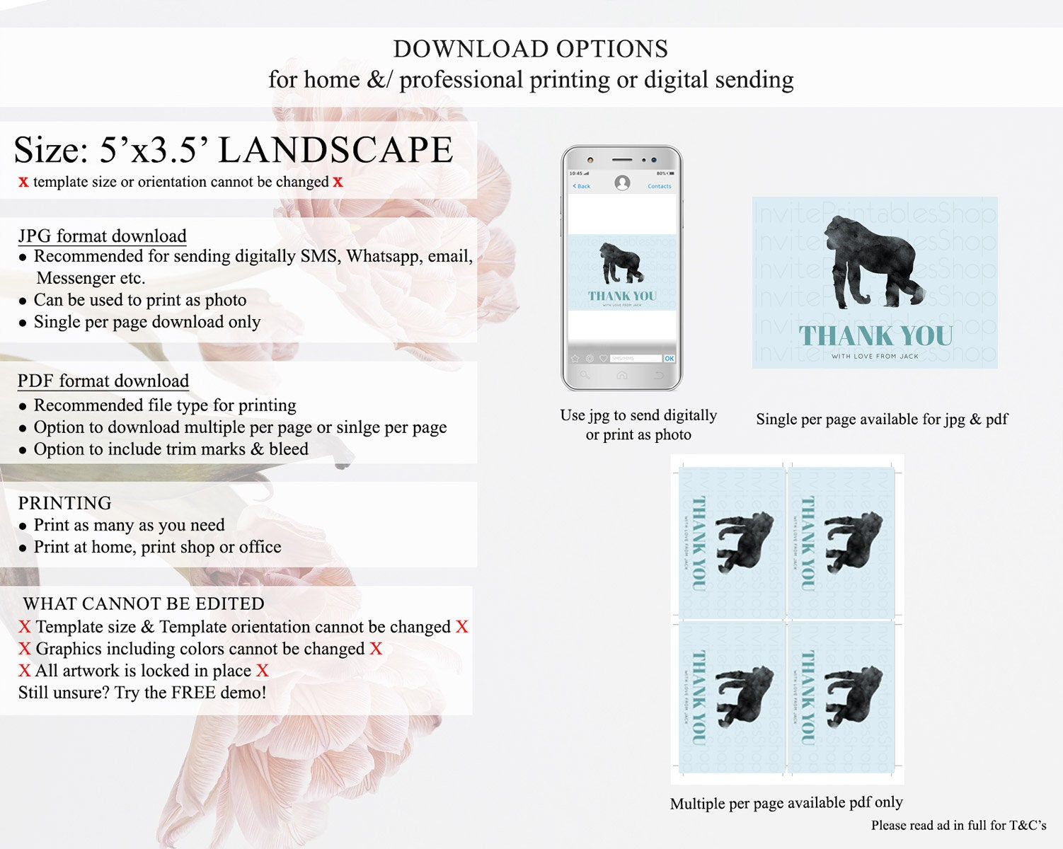 • Template size & orientation cannot be changed. Please use the demo link to confirm this product suits your needs.