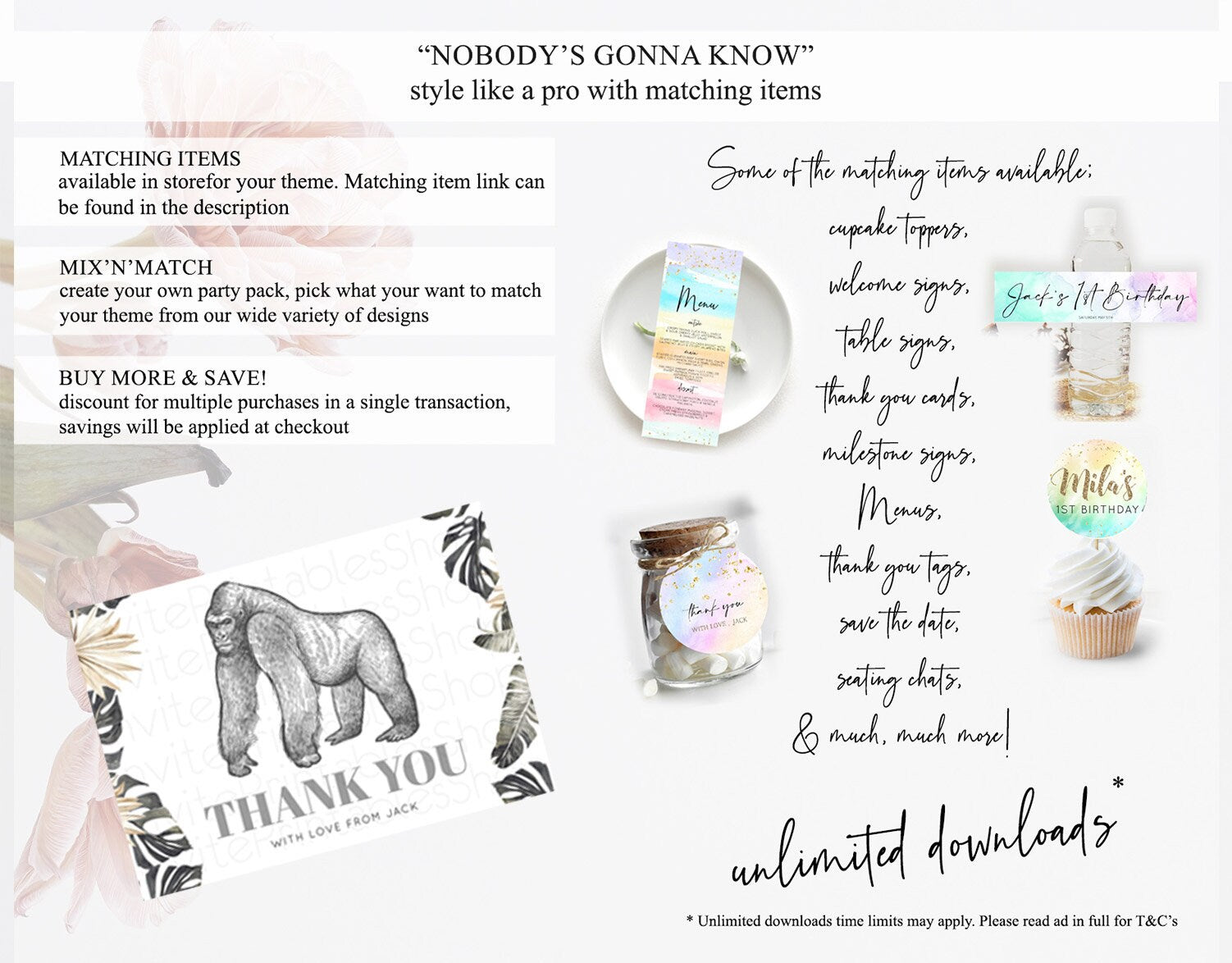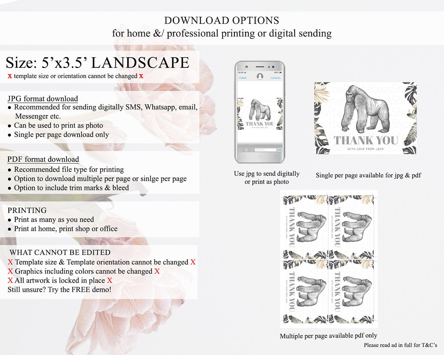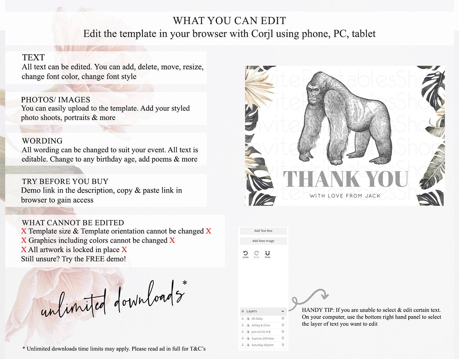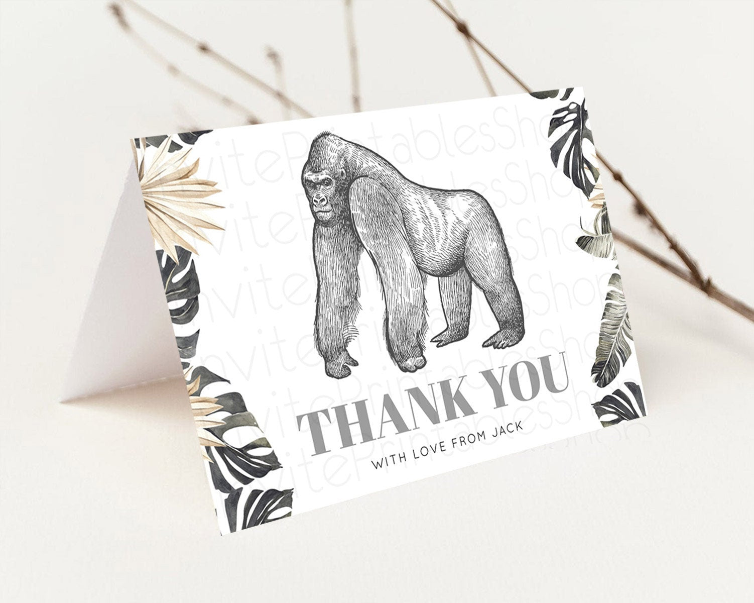 Gorilla Thank You Gorilla Thank You Card Gorilla Party Birthday Thank You Card Safari Card Template Gorilla Teacher Thank You Cards D10825