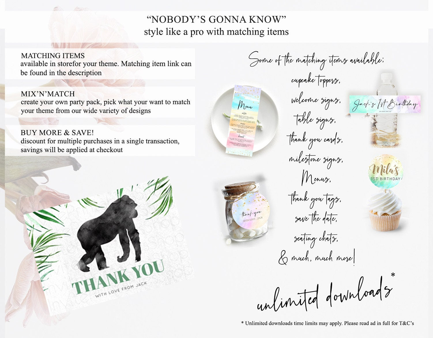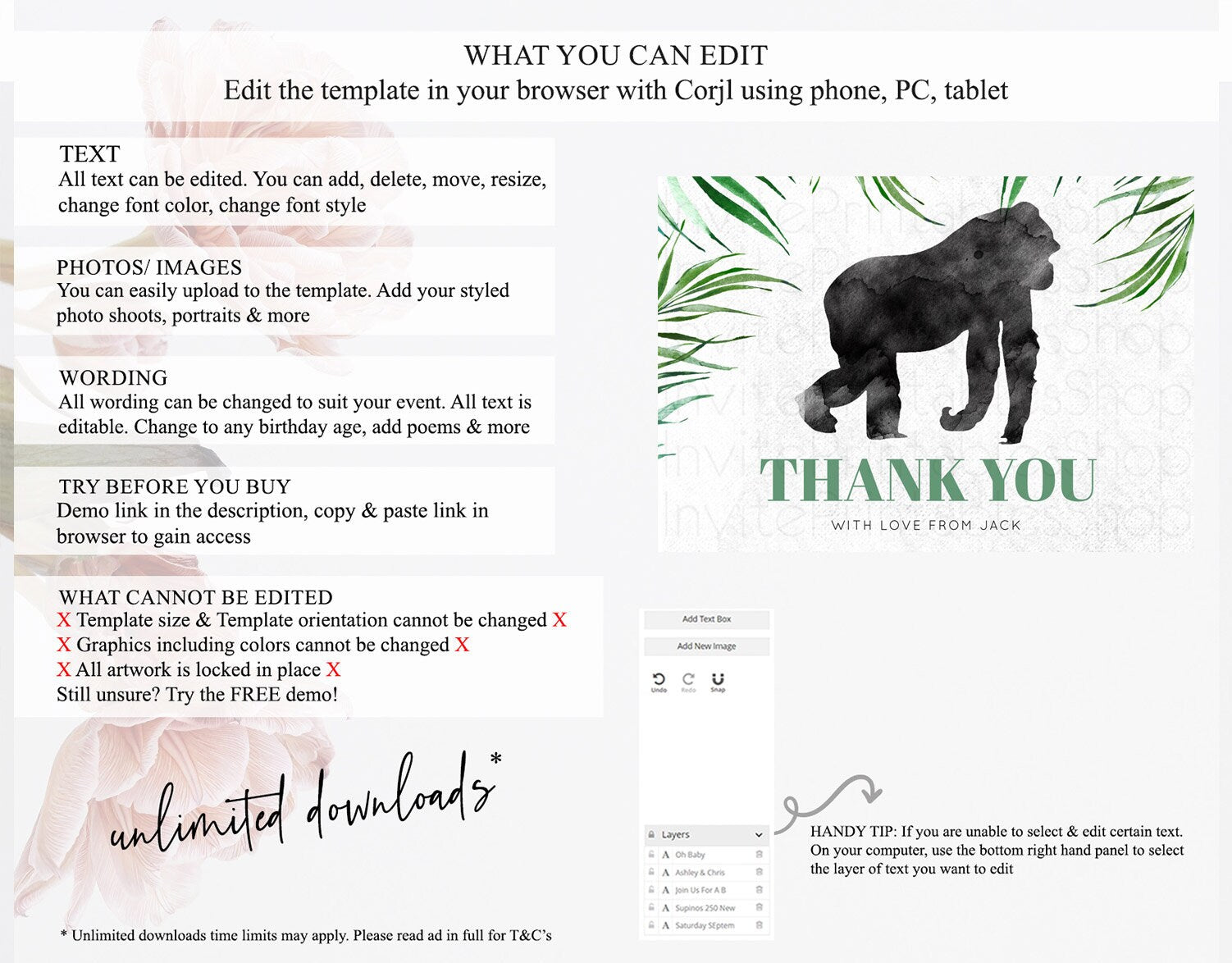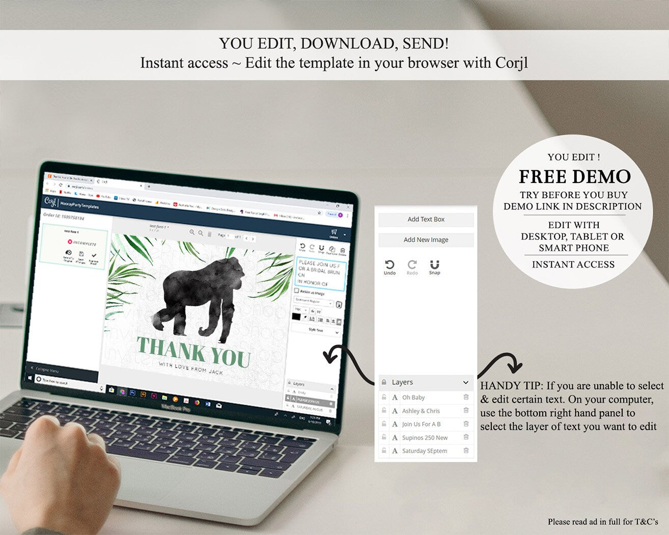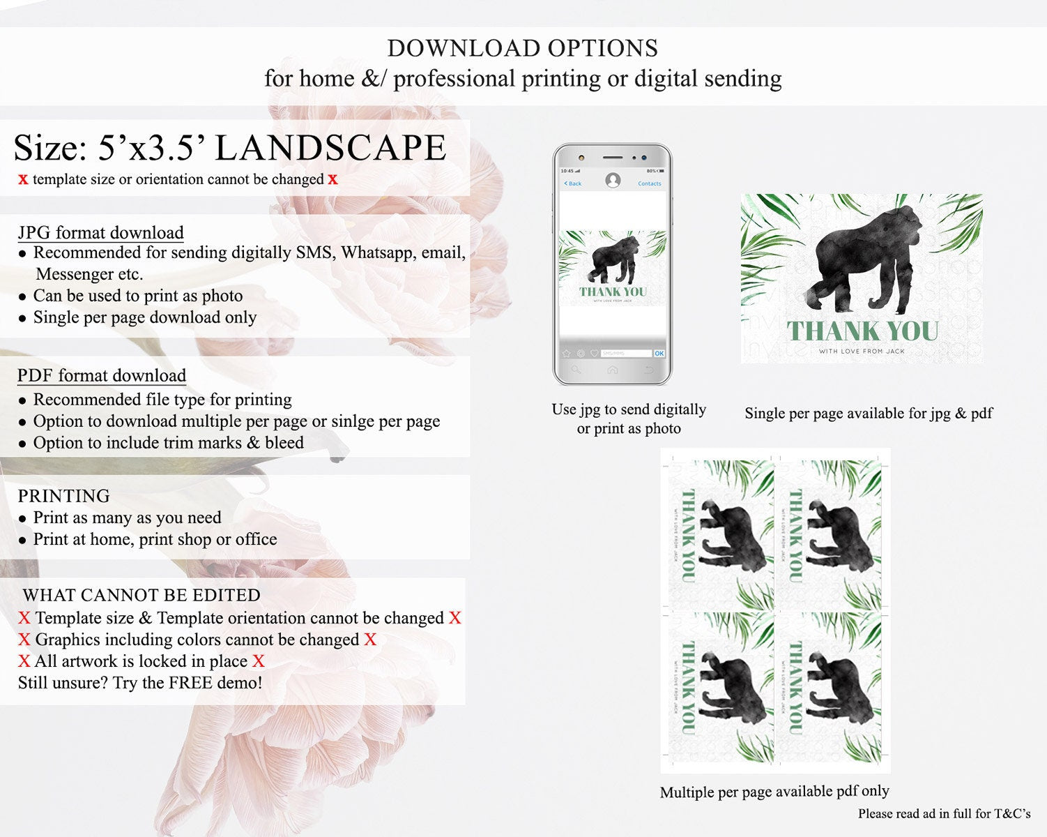 Gorilla Thank You Gorilla Thank You Card Gorilla Party Birthday Thank You Card Safari Card Template Gorilla Teacher Thank You Cards D10840