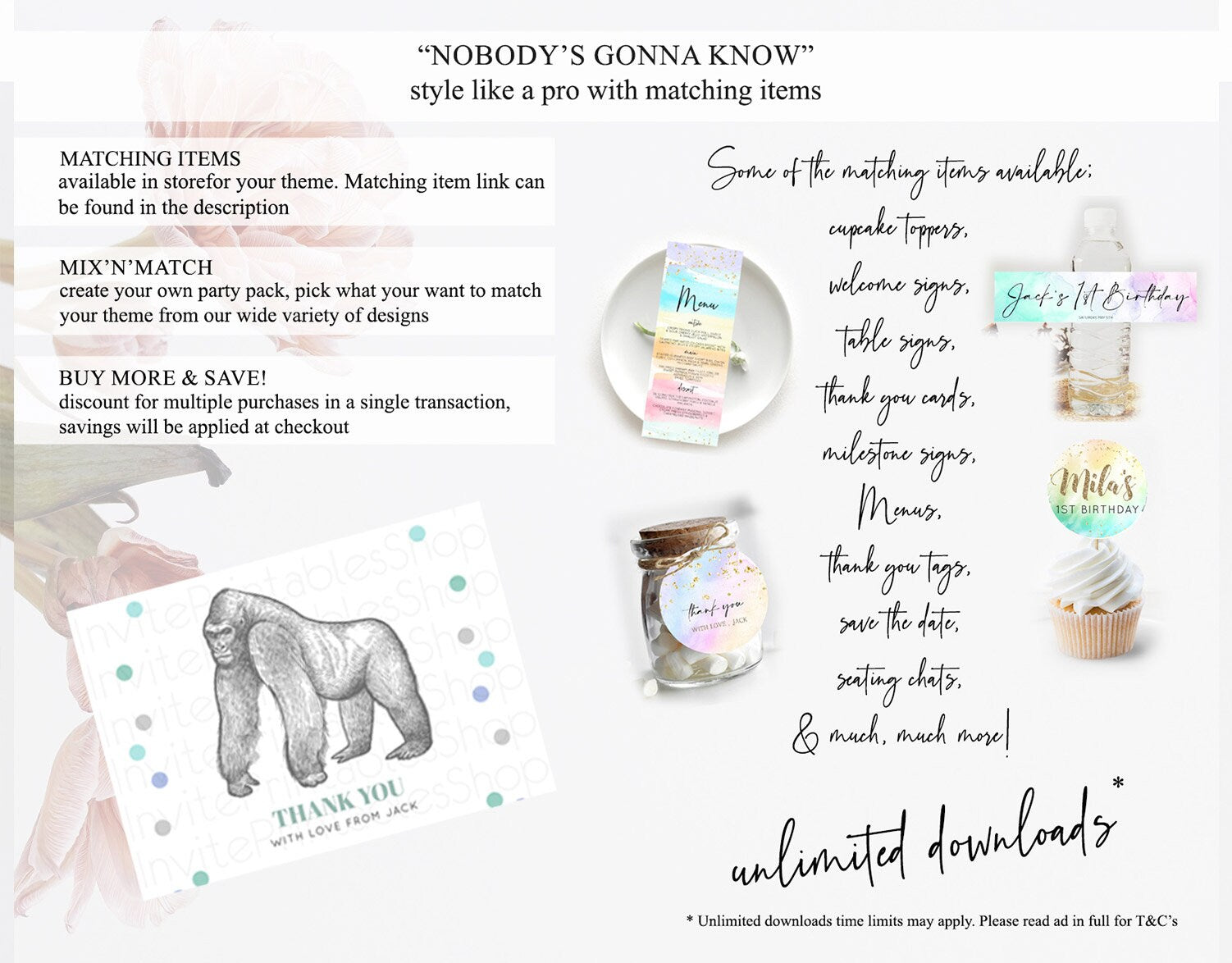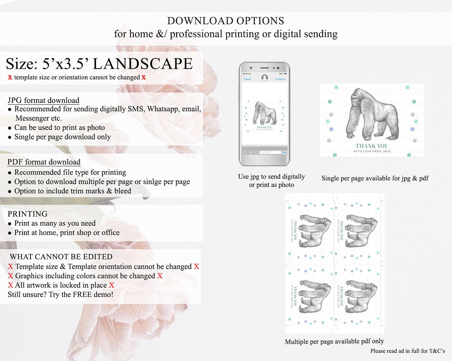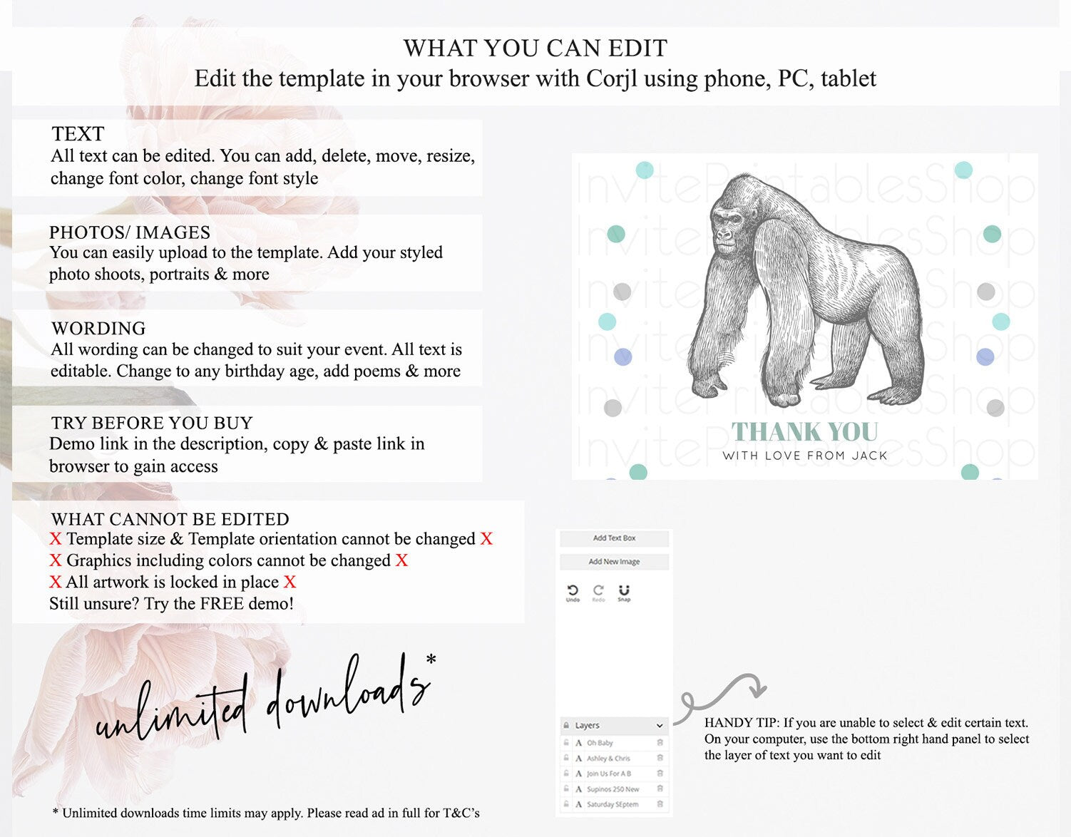 Gorilla Thank You Gorilla Thank You Card Gorilla Party Birthday Thank You Card Safari Card Template Gorilla Teacher Thank You Cards D10854