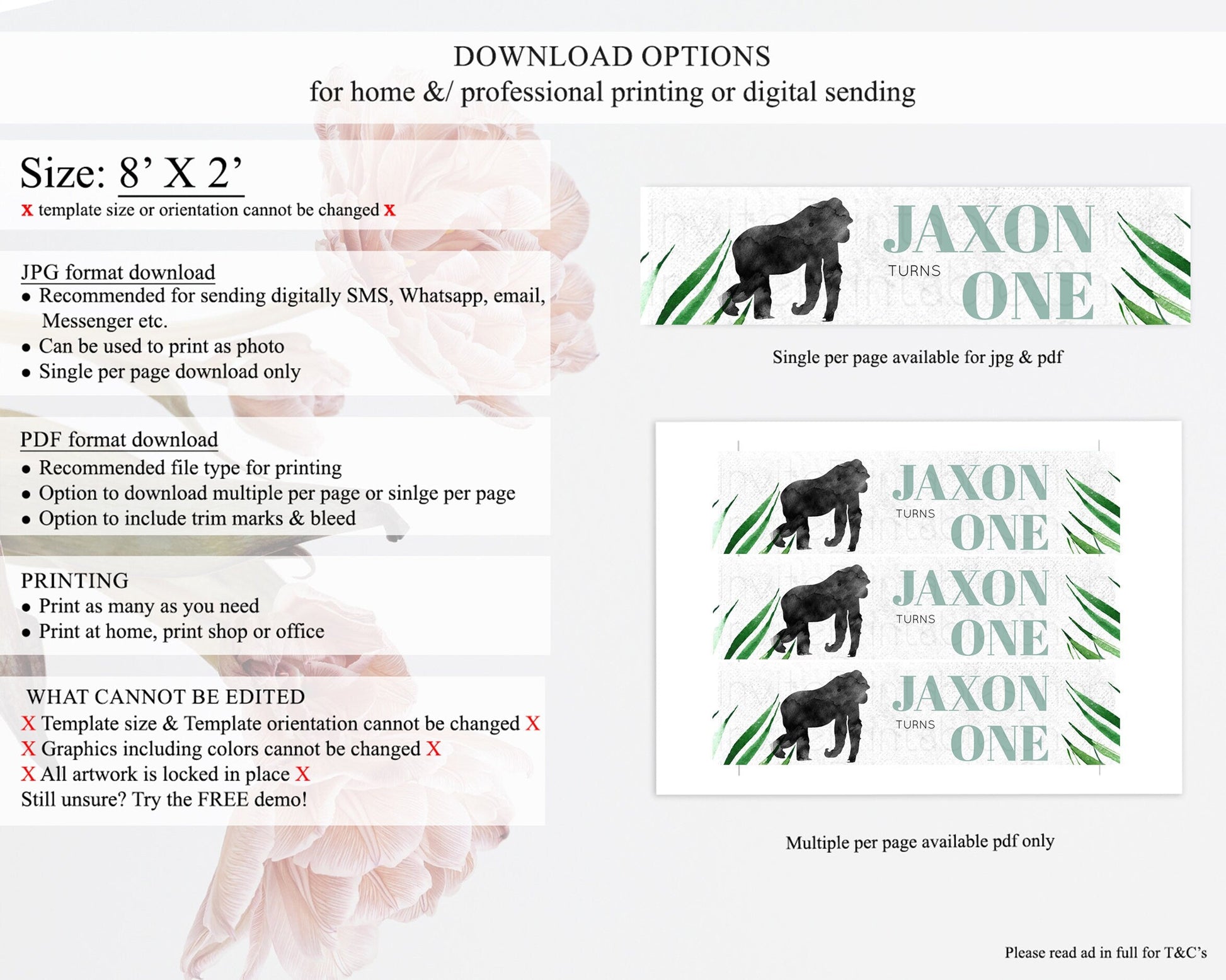 • Template size & orientation cannot be changed. Please use the demo link to confirm this product suits your needs.
