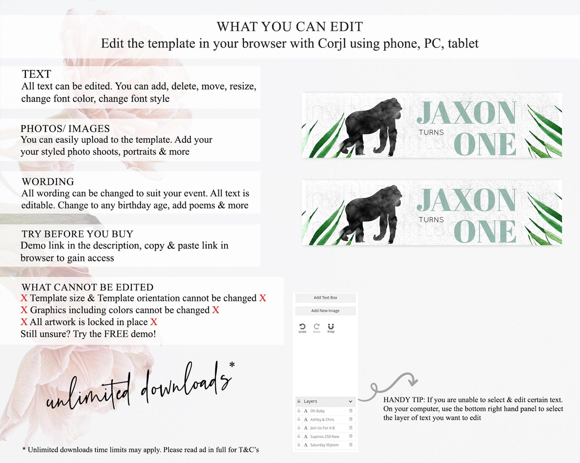 • After purchase, Corjl emails your editing link. Allow up to 15 minutes for delivery.