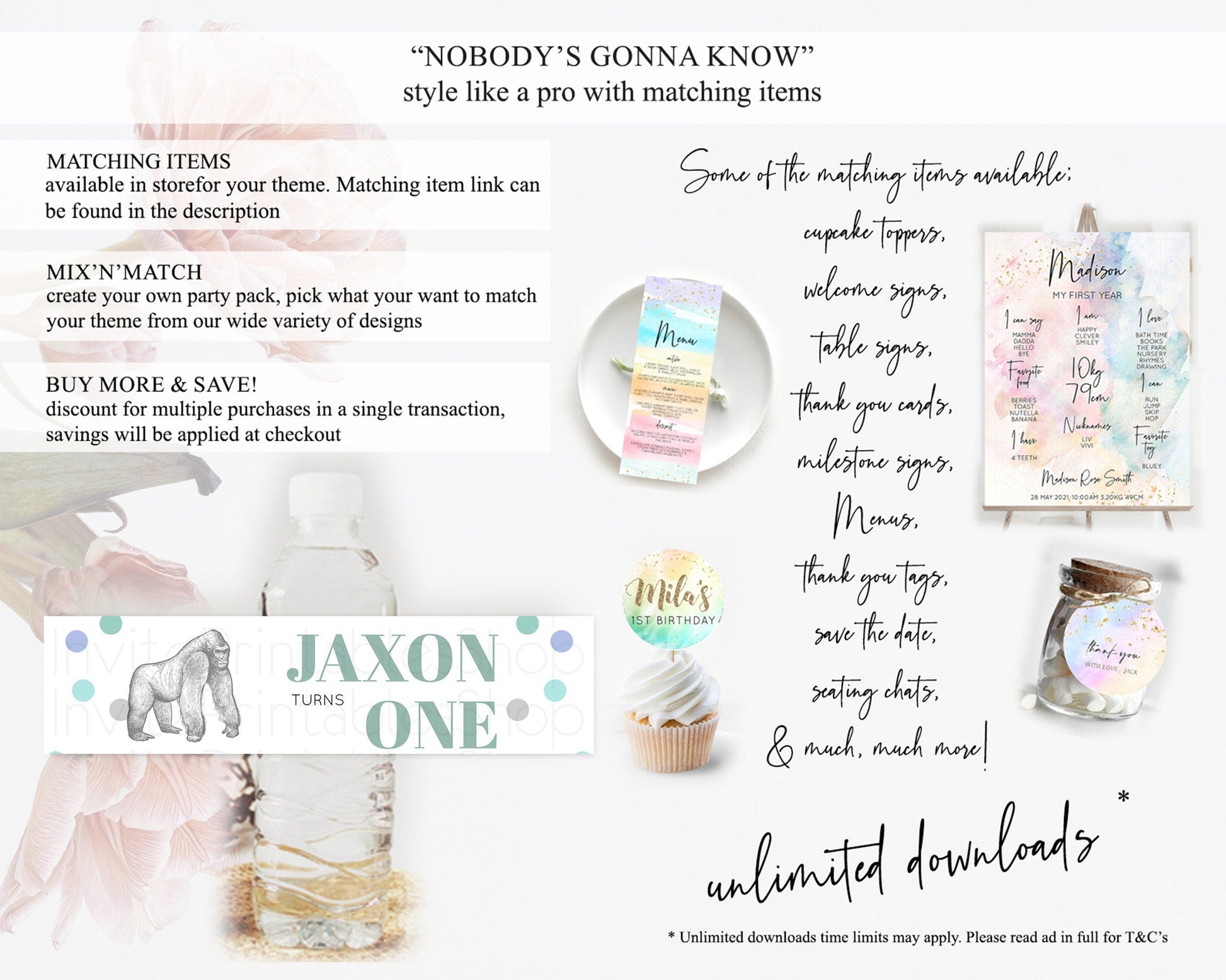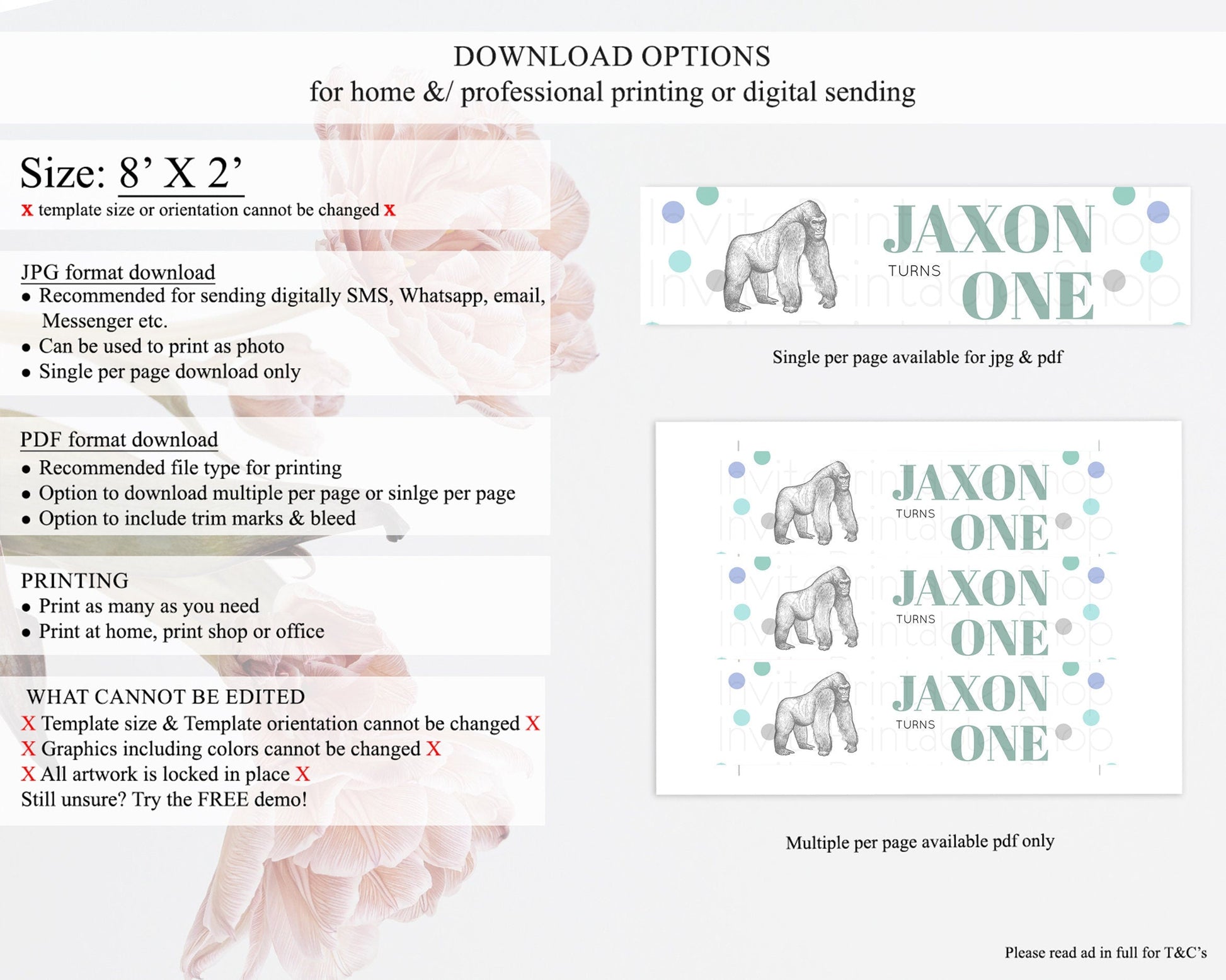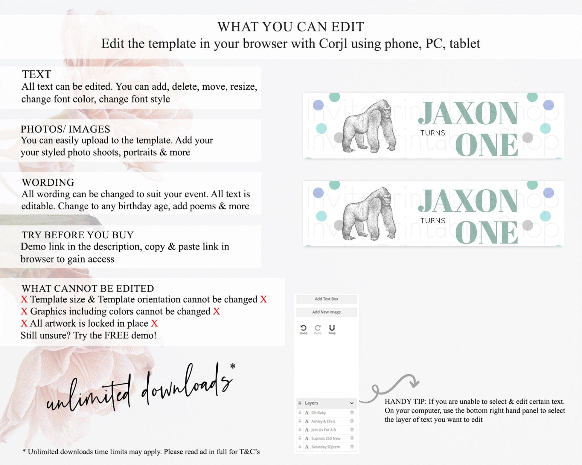 Gorilla Water Label Template Gorilla Party Decor Water Label Safari Adventure Gorilla Minimal Theme 1st Birthday Baptism Baby Shower D10854
