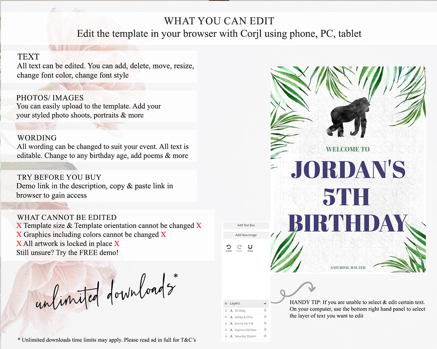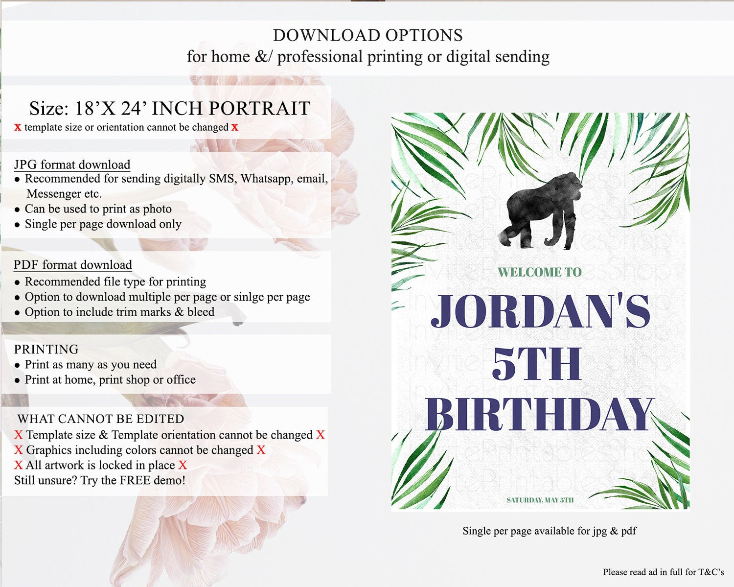 Gorilla Welcome Sign Gorilla Welcome Board Gorilla Party Welcome Poster Safari Adventure Decor Gorilla First Birthday Welcome Sign D10840