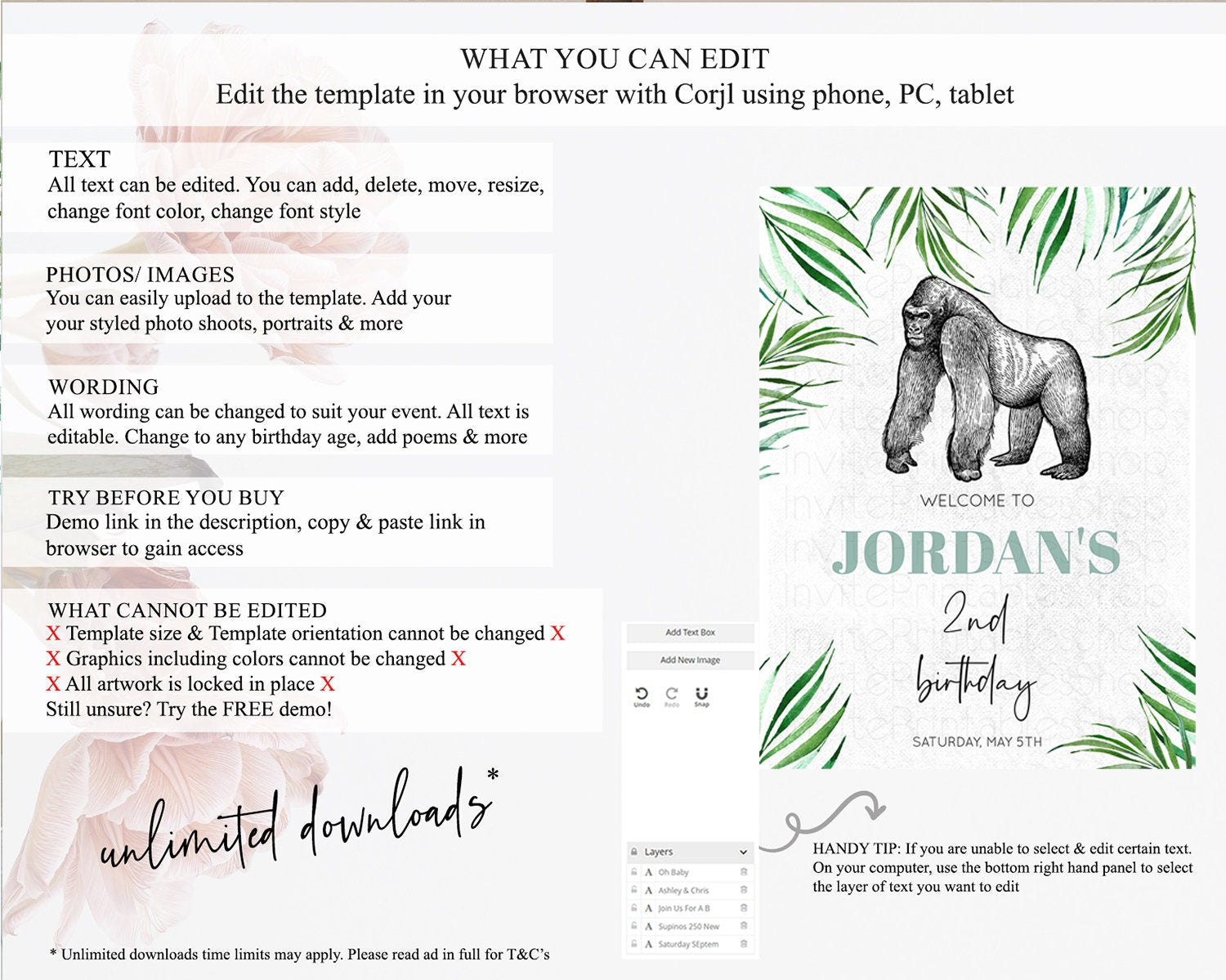 • After purchase, Corjl emails your editing link. Allow up to 15 minutes for delivery.