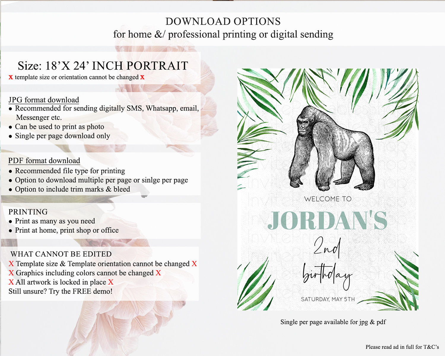 • Template size & orientation cannot be changed. Please use the demo link to confirm this product suits your needs.