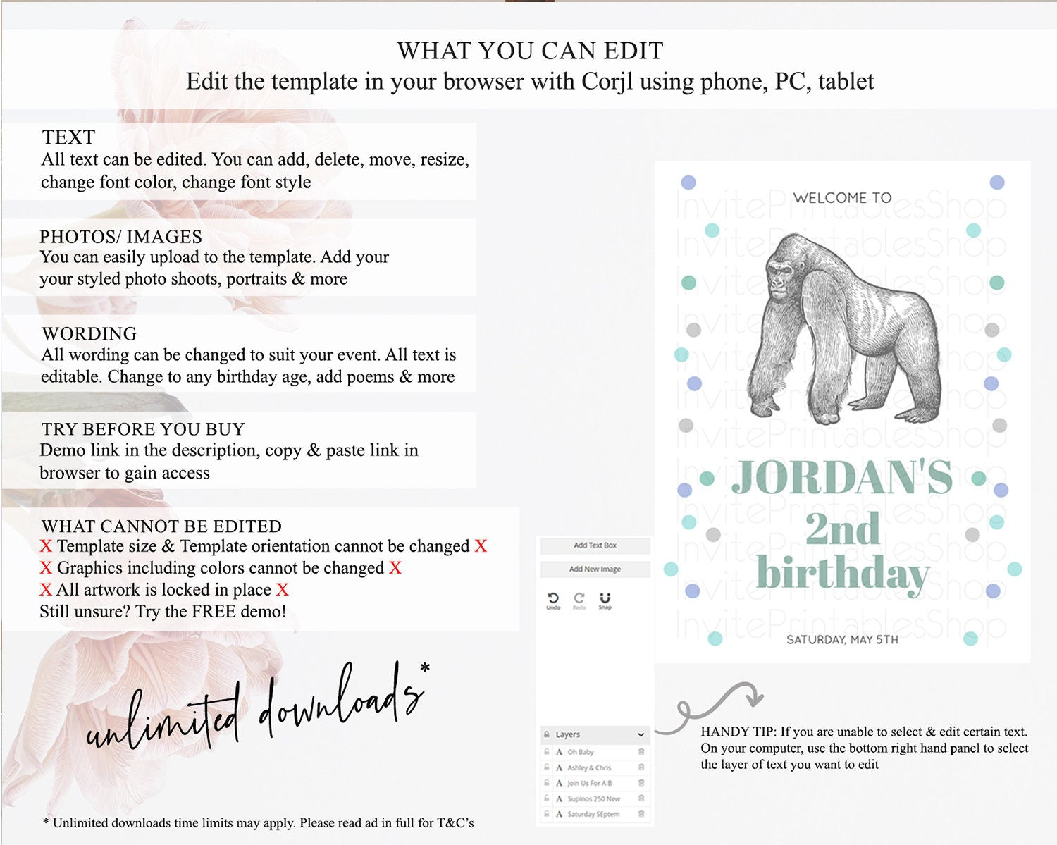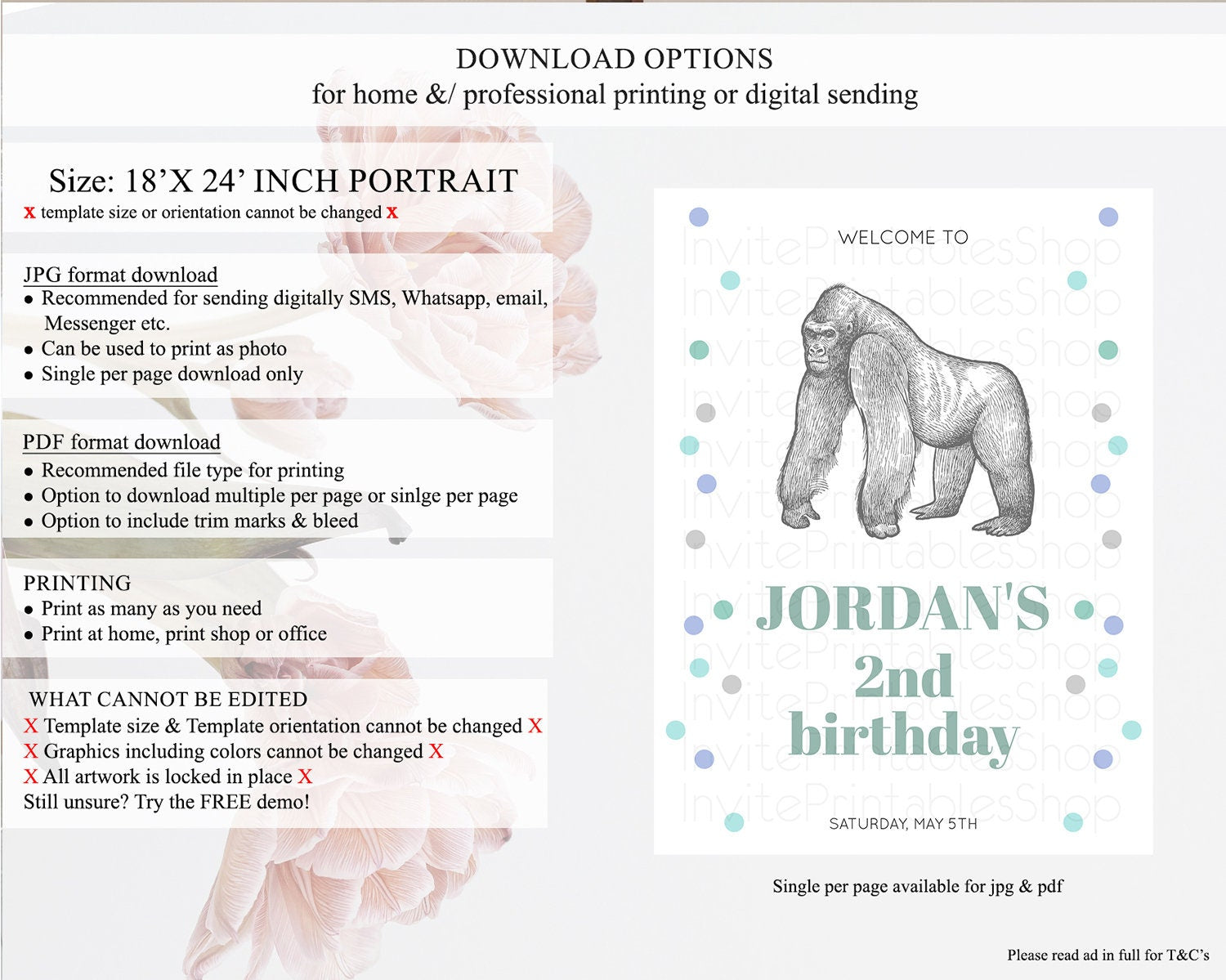 Gorilla Welcome Sign Gorilla Welcome Board Gorilla Party Welcome Poster Safari Adventure Decor Gorilla First Birthday Welcome Sign D10854