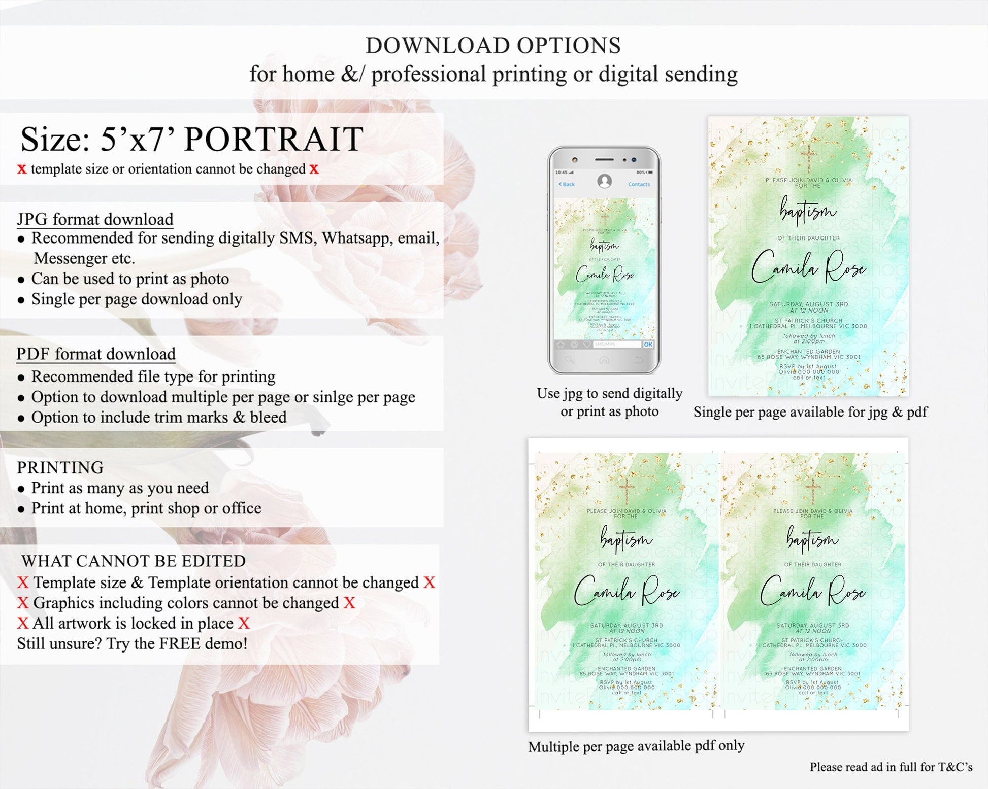 • Template size & orientation cannot be changed. Please use the demo link to confirm this product suits your needs.