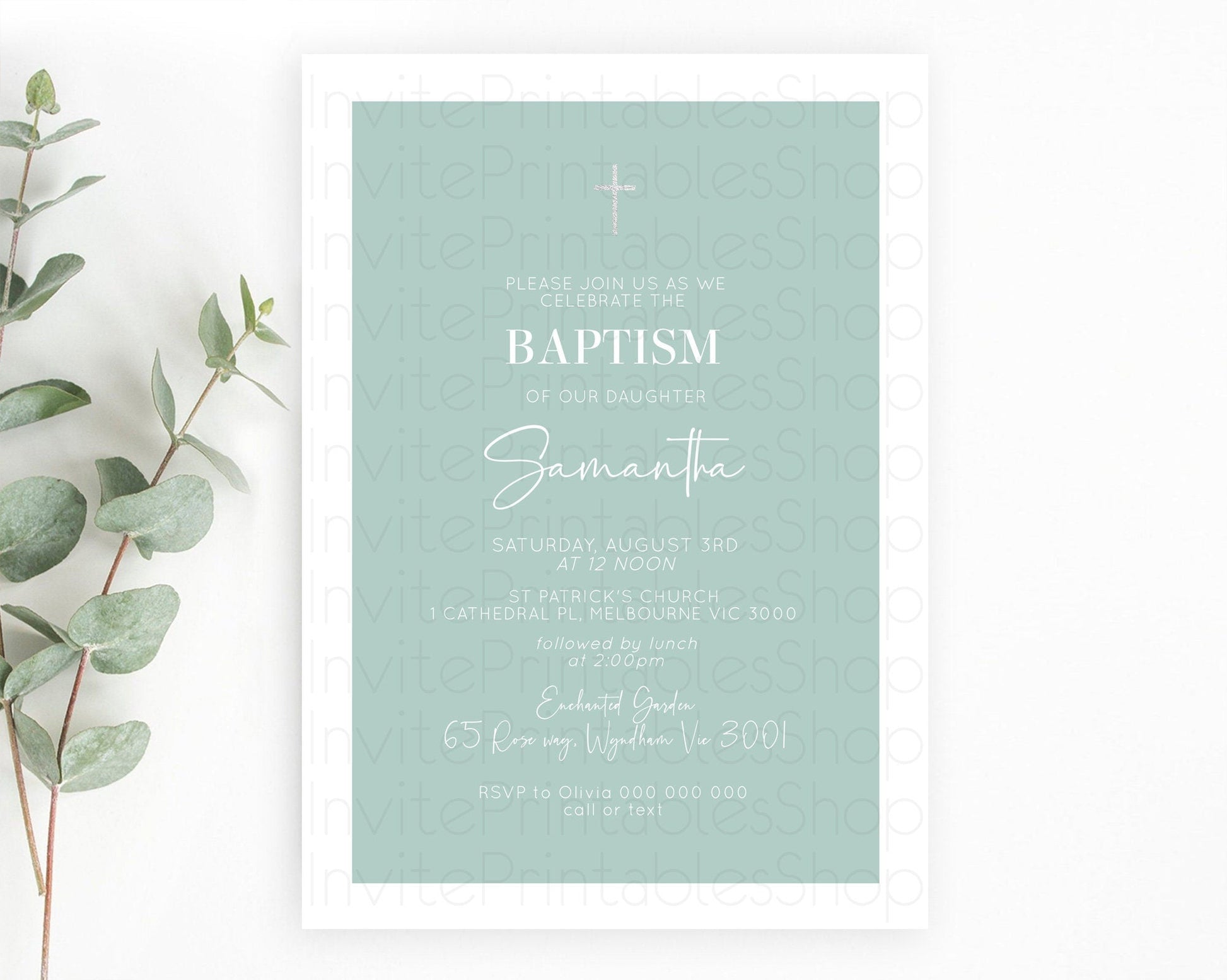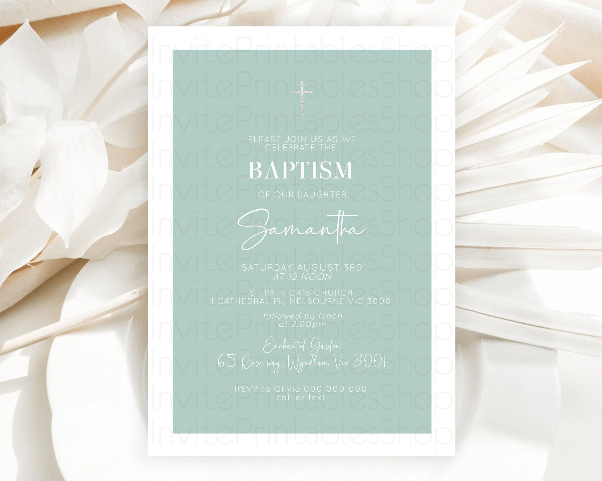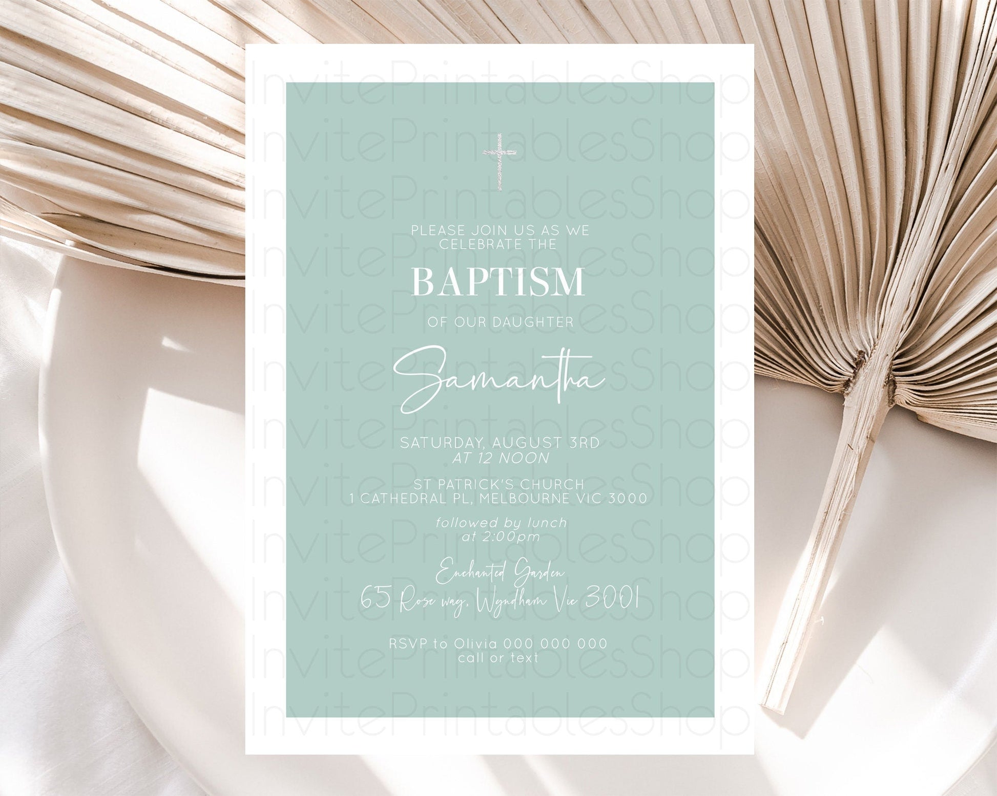 Green Baptism Invitation Plain Green Baptism 1st Birthday Invitation Minimalist Pastel Green Christening Invitation Holy Communion D10736