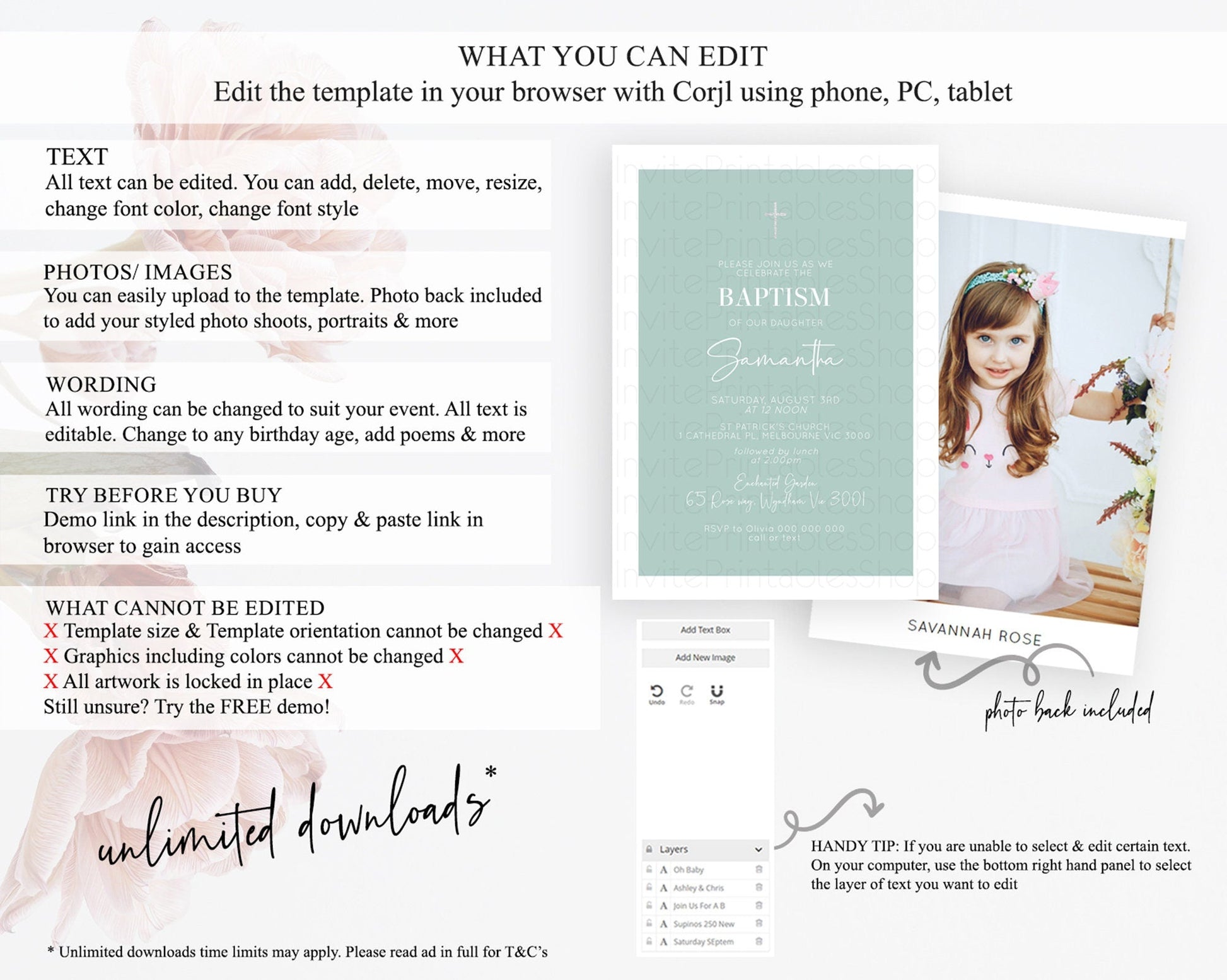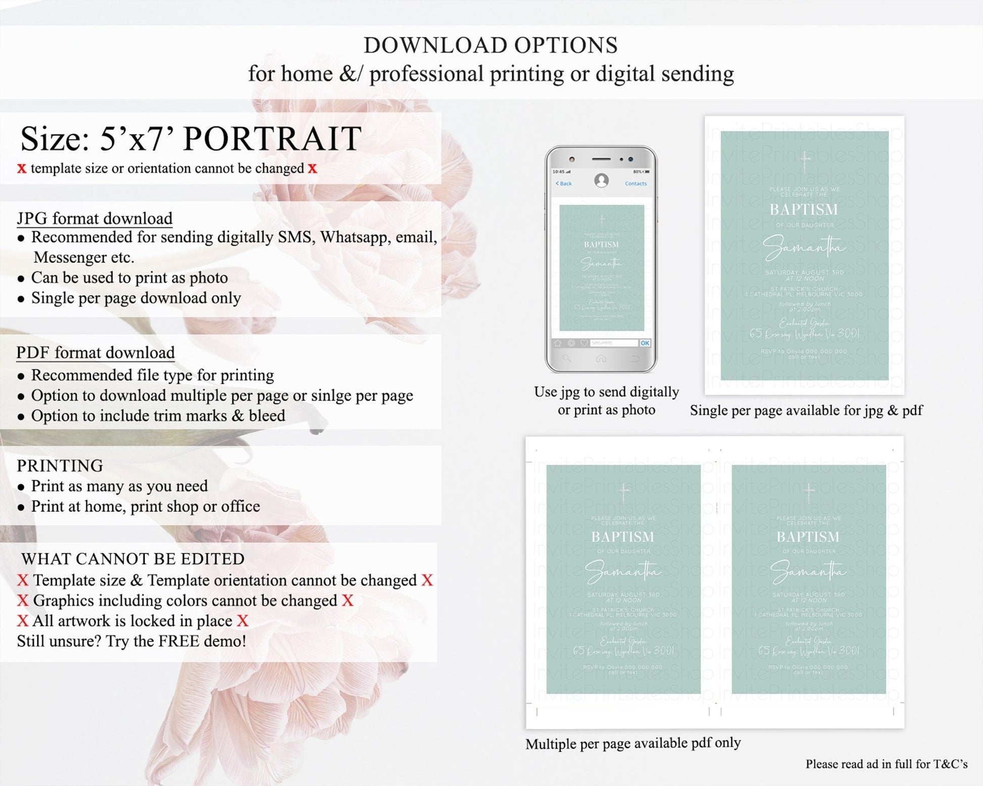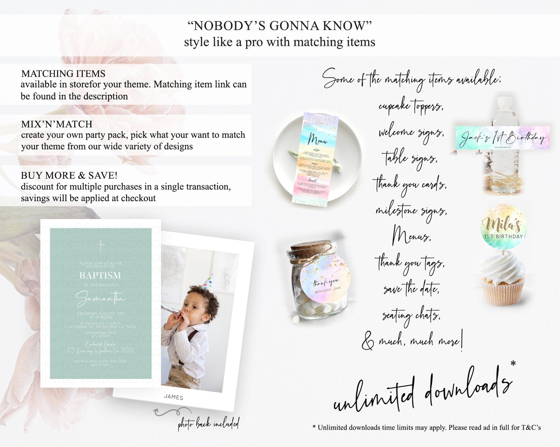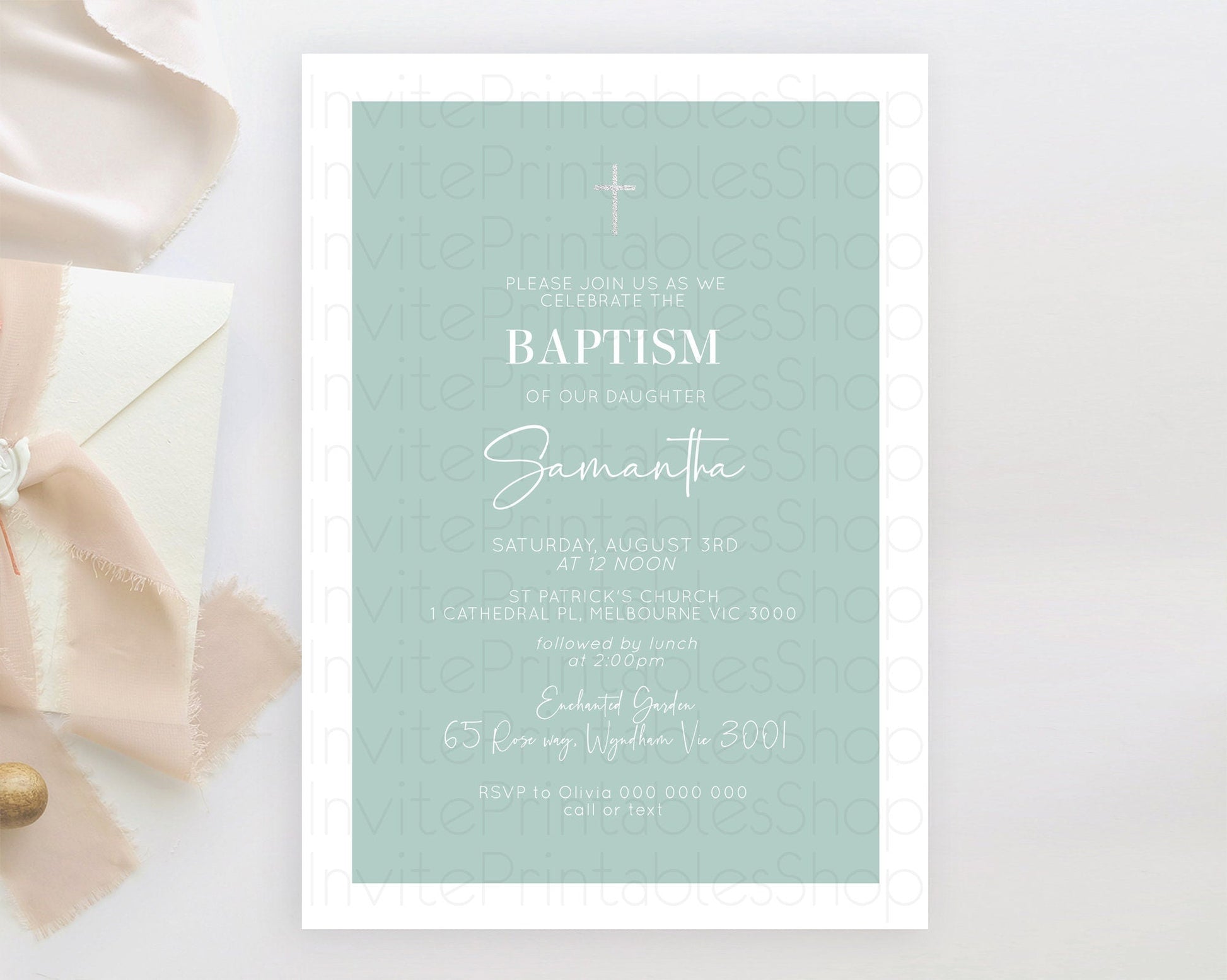 Green Baptism Invitation Plain Green Baptism 1st Birthday Invitation Minimalist Pastel Green Christening Invitation Holy Communion D10736