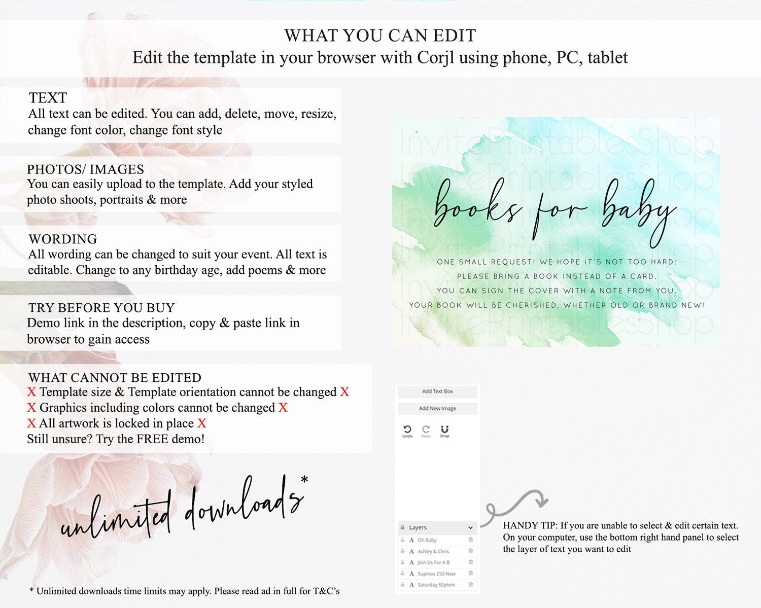• After purchase, Corjl emails your editing link. Allow up to 15 minutes for delivery.