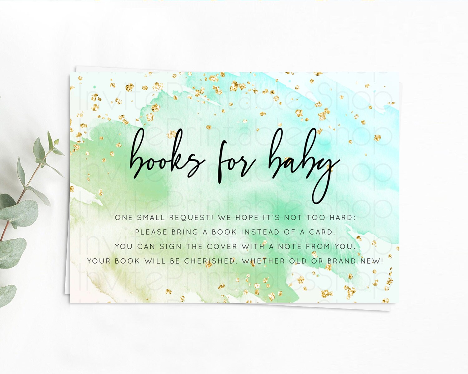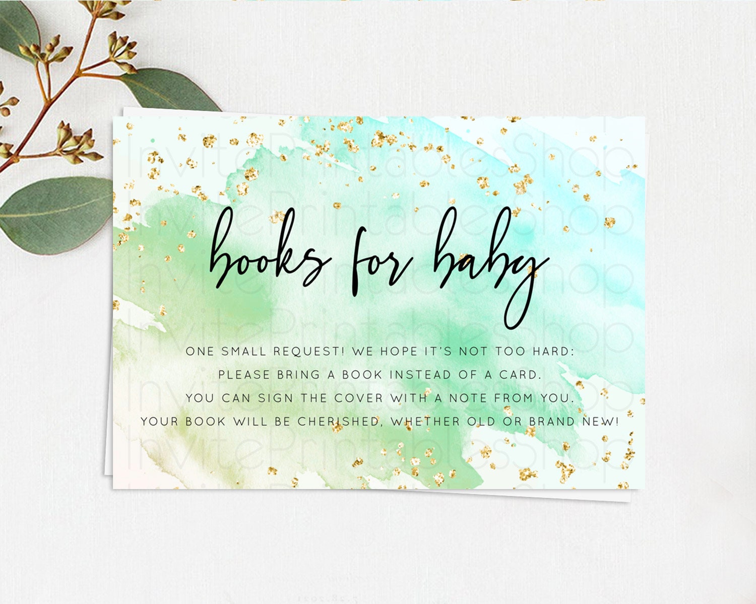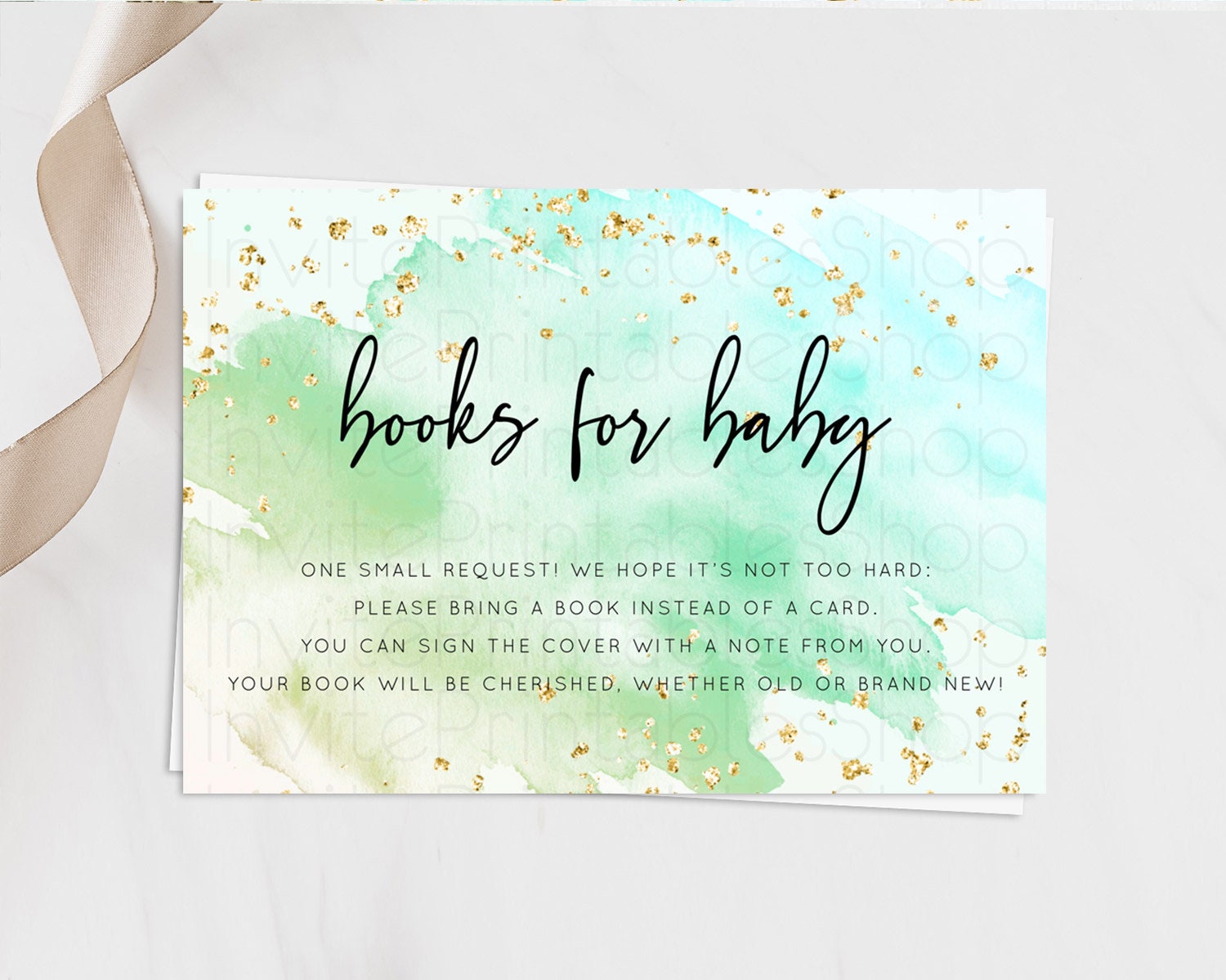 Green Books For Baby Card Green Watercolor Book Insert Pastel Green Baby Shower Book Card Splash Green Book Poem Request For Guests D10170