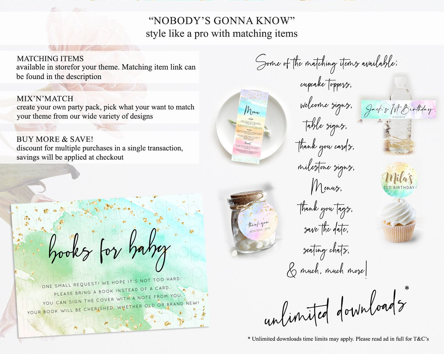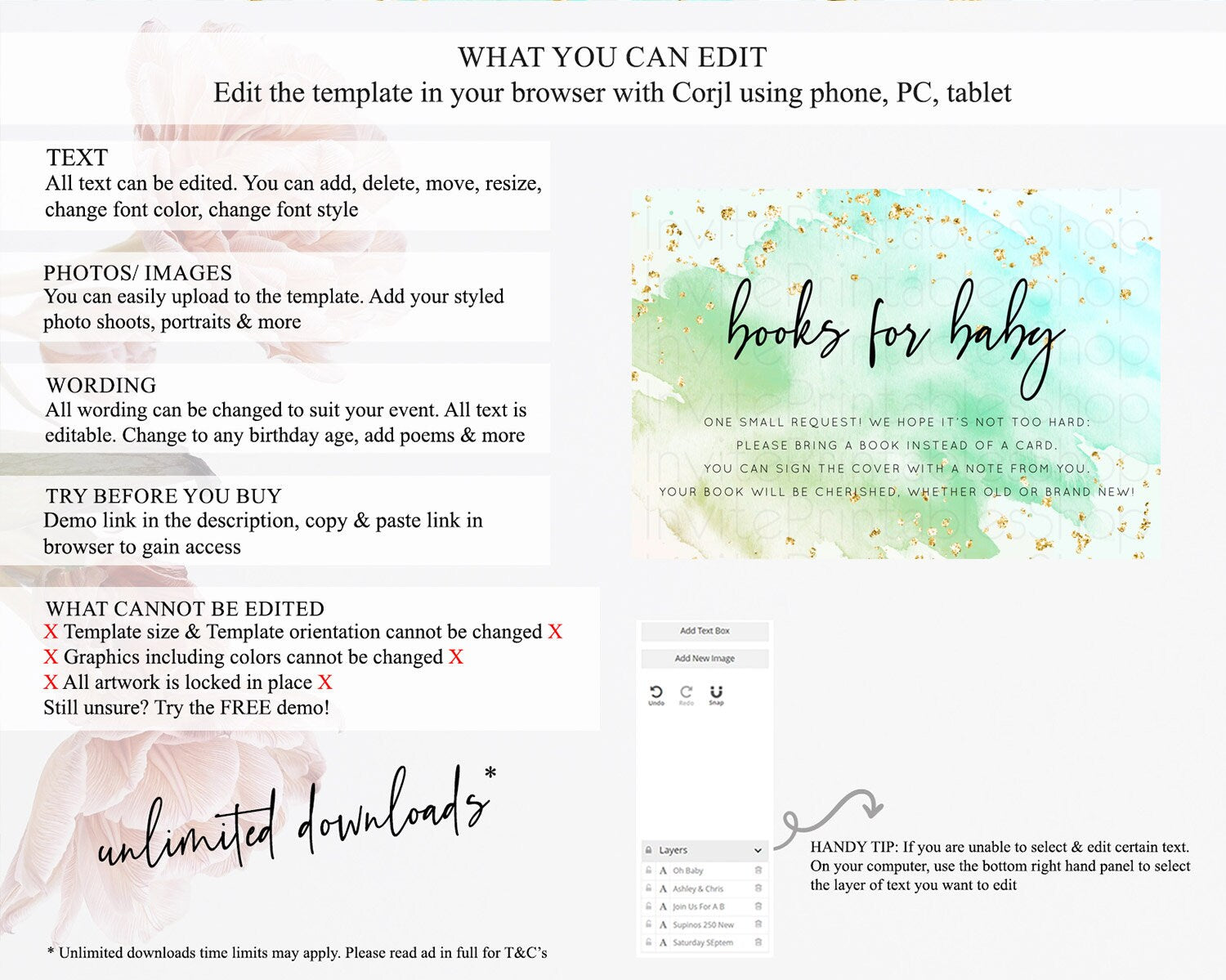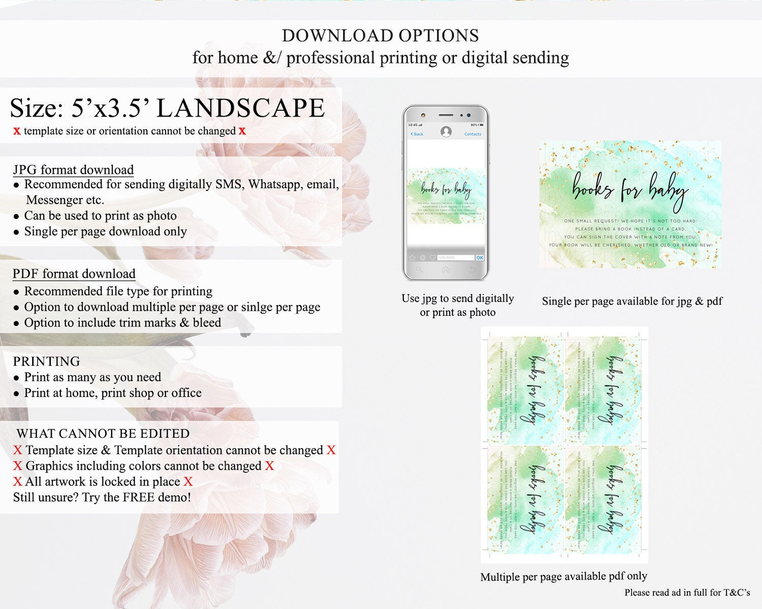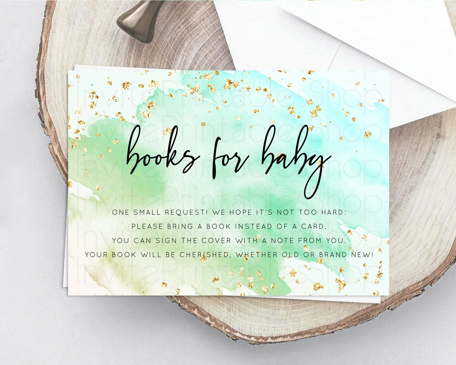 Green Books For Baby Card Green Watercolor Book Insert Pastel Green Baby Shower Book Card Splash Green Book Poem Request For Guests D10170