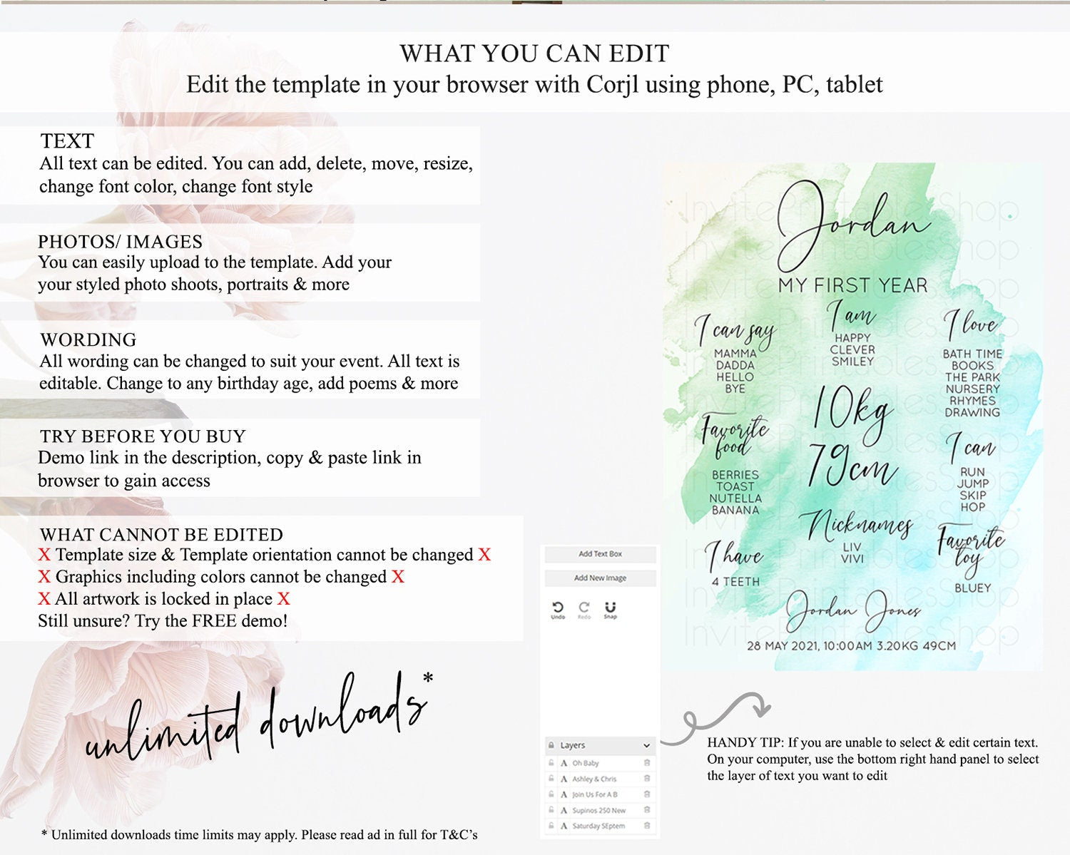 • Template size & orientation cannot be changed. Please use the demo link to confirm this product suits your needs.