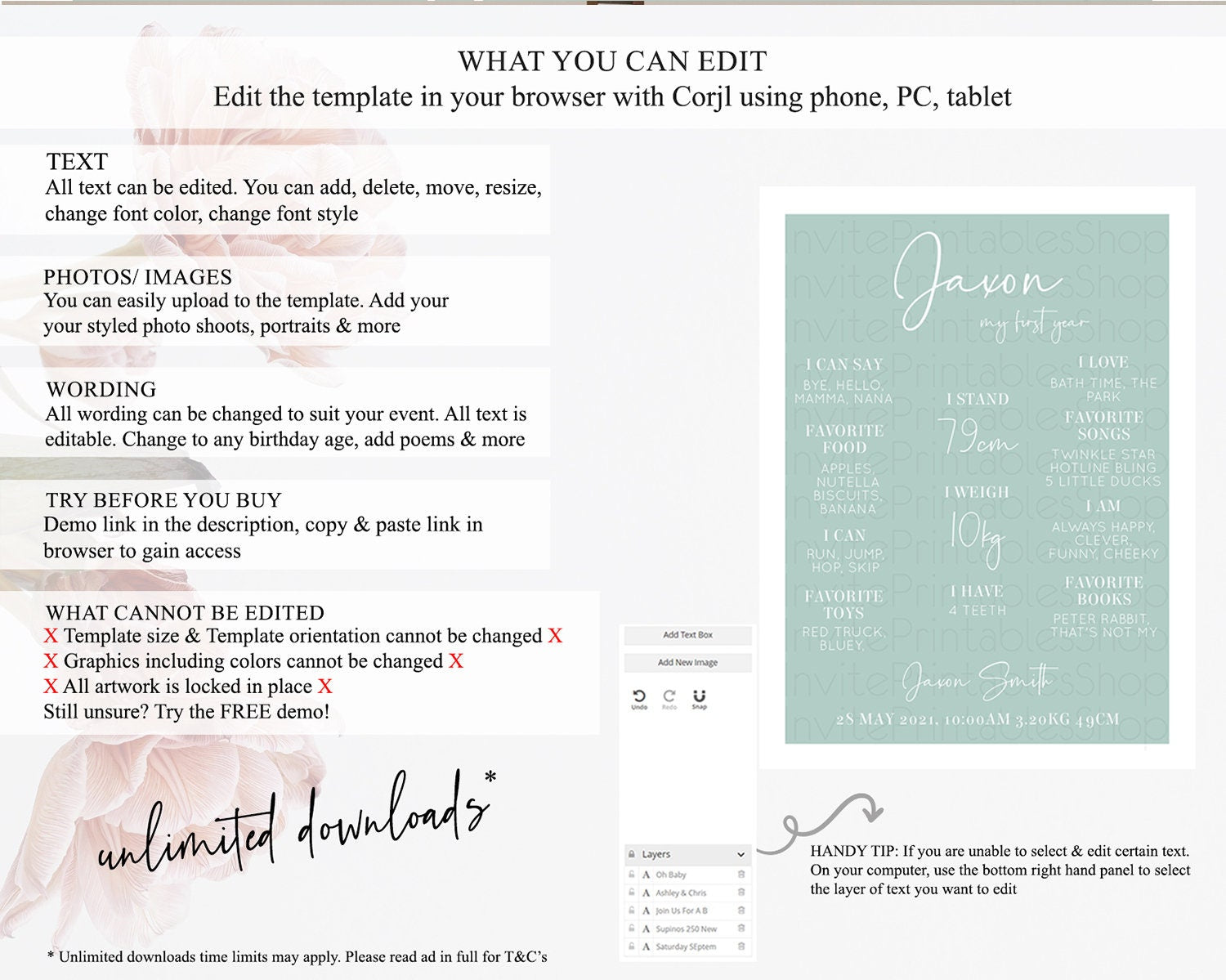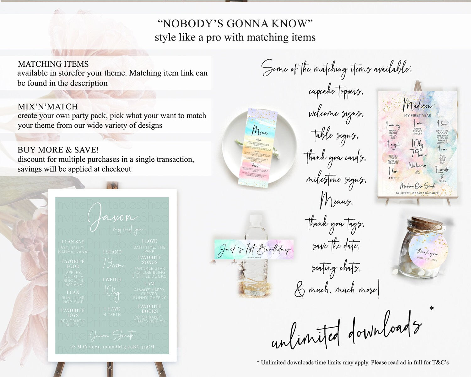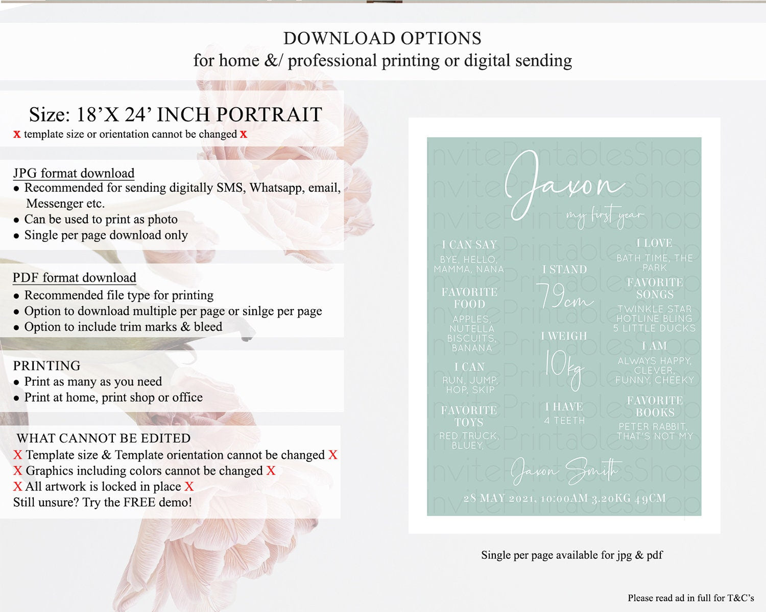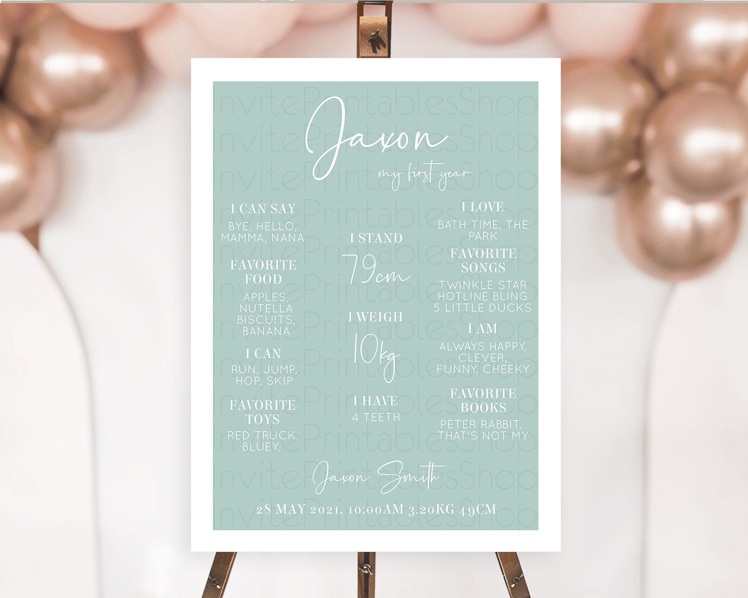 Green First Birthday Milestone Poster Plain Green Milestone Board Minimalist Pastel Green Milestone Modern 1st Birthday Welcome Sign D10736