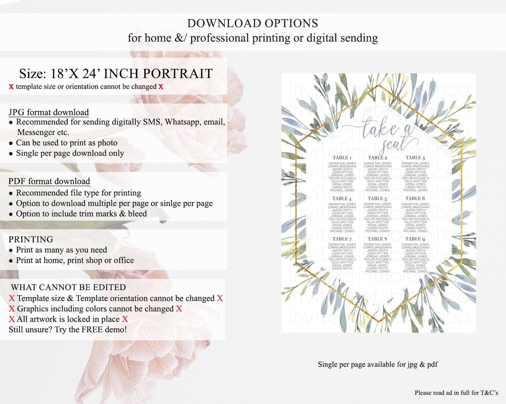 Green Leaf Seating Chart Leave Seating Chart Simple Greenery Seating Sign Eucalyptus Fern Spray Leaves Minimal Leaf Watercolour D10532