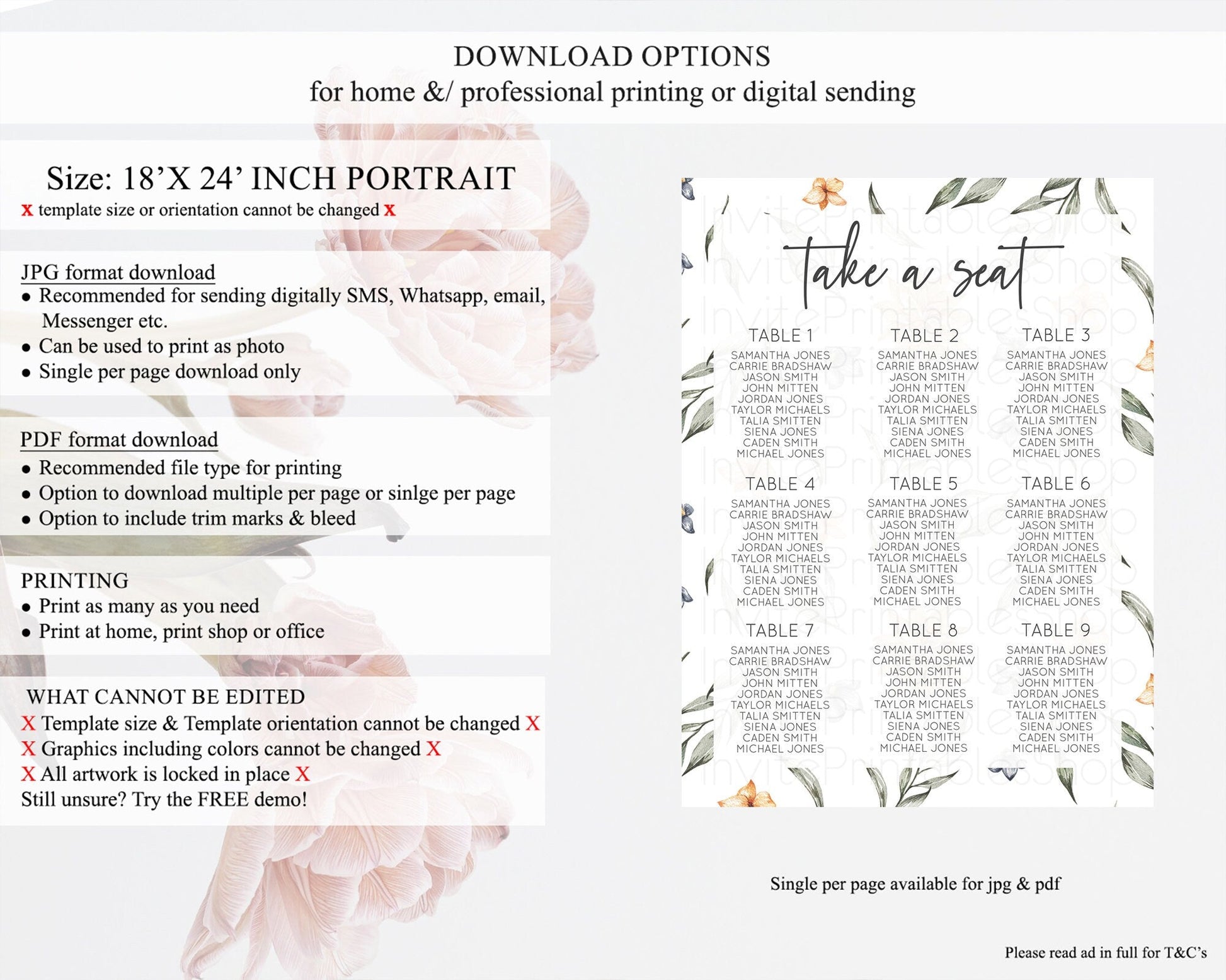 Green Leaf Seating Chart Leave Seating Chart Simple Greenery Seating Sign Eucalyptus Fern Spray Leaves Minimal Leaf Watercolour D10544