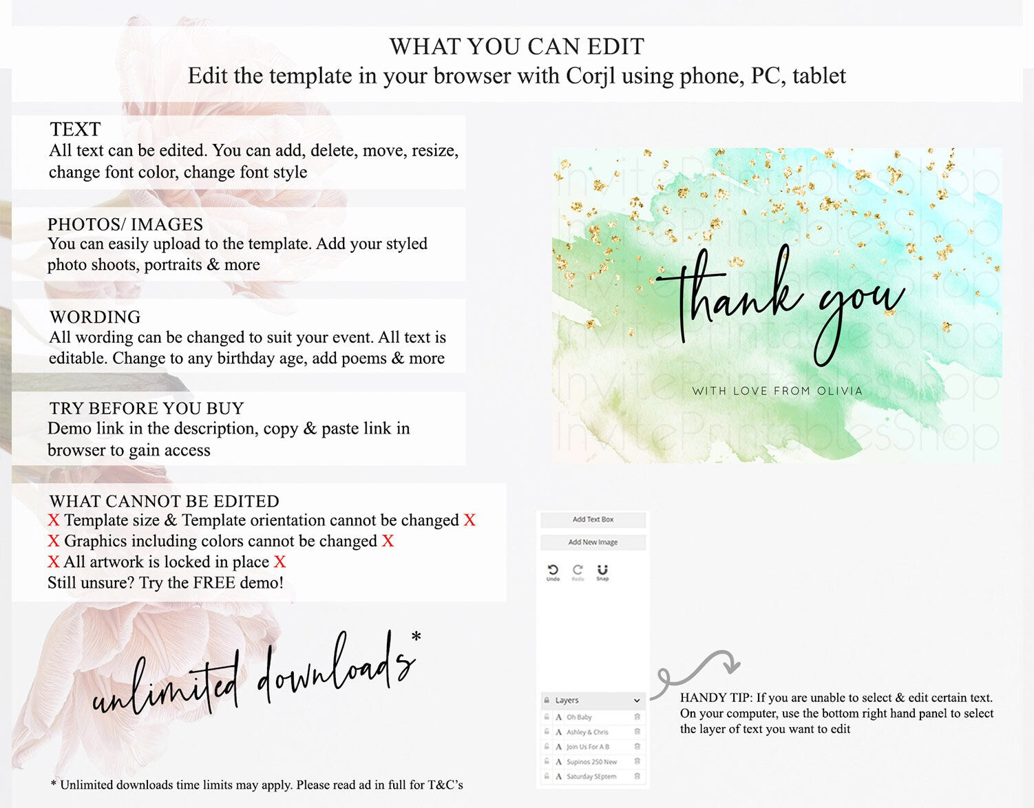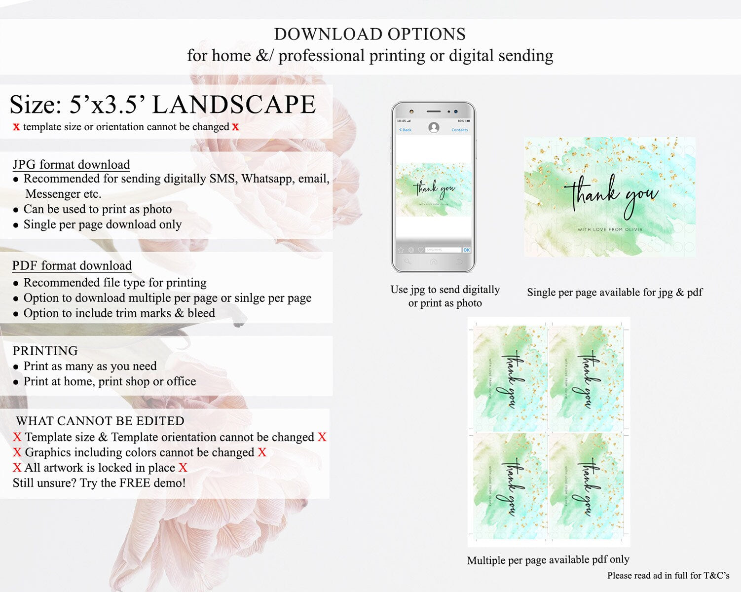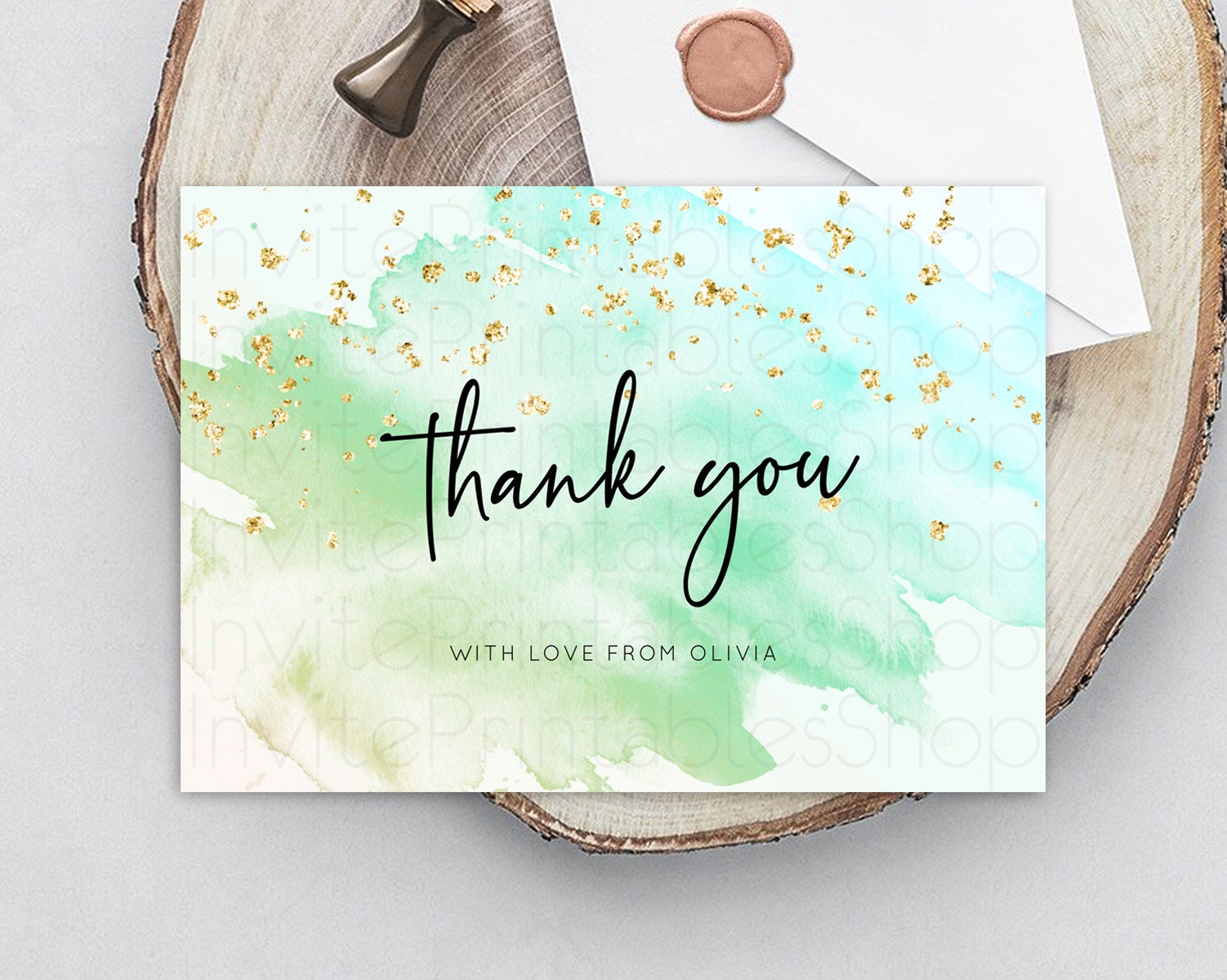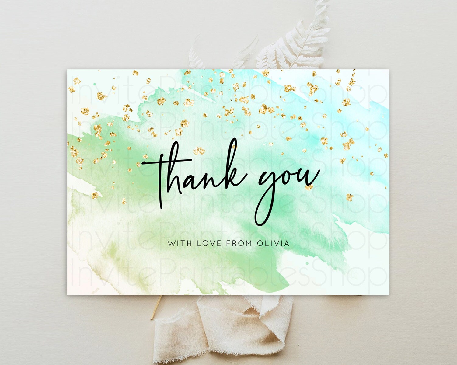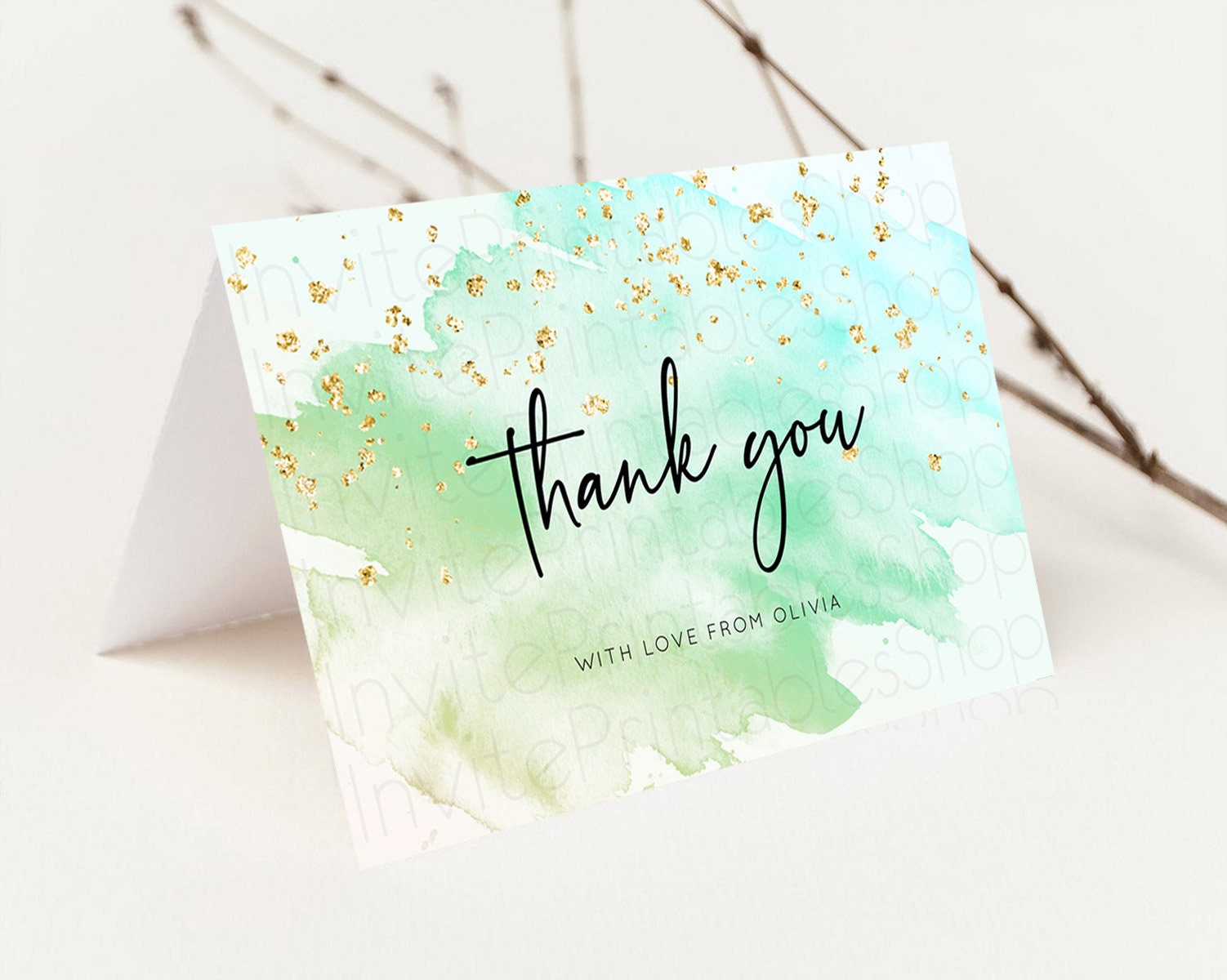 Green Thank You Green Watercolor Thank You Card Pastel Green Card Template Watercolor Splash Cards Teacher Thank You Card Template D10170