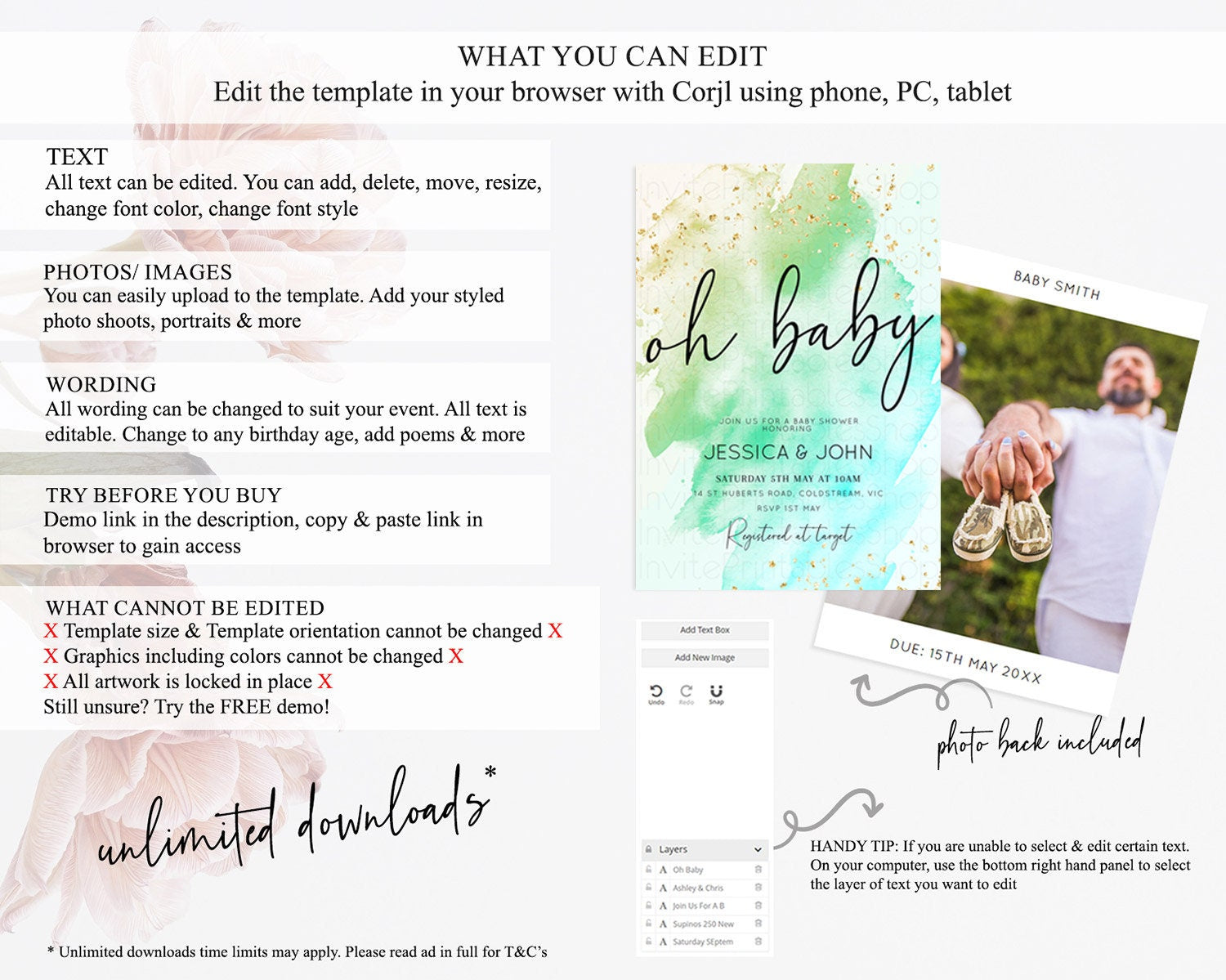 • After purchase, Corjl emails your editing link. Allow up to 15 minutes for delivery.