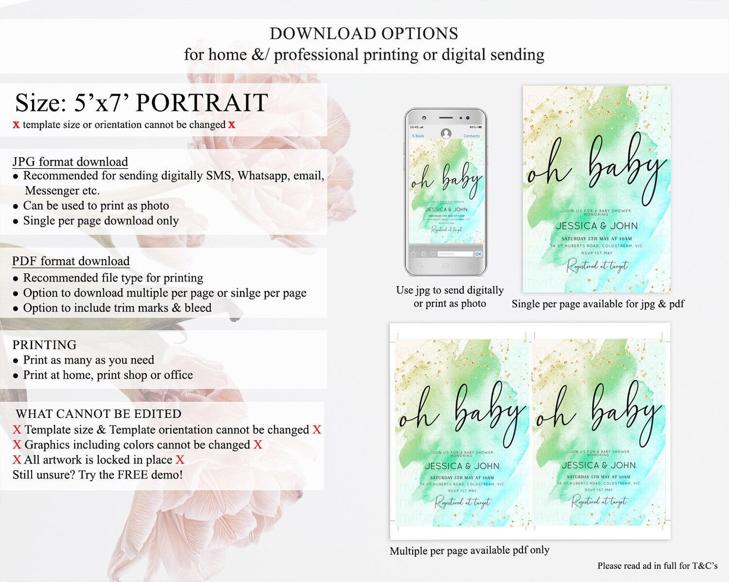 • Template size & orientation cannot be changed. Please use the demo link to confirm this product suits your needs.