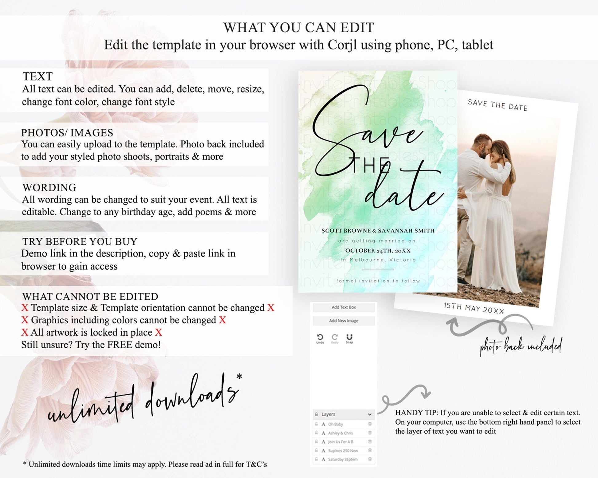 • Template size & orientation cannot be changed. Please use the demo link to confirm this product suits your needs.