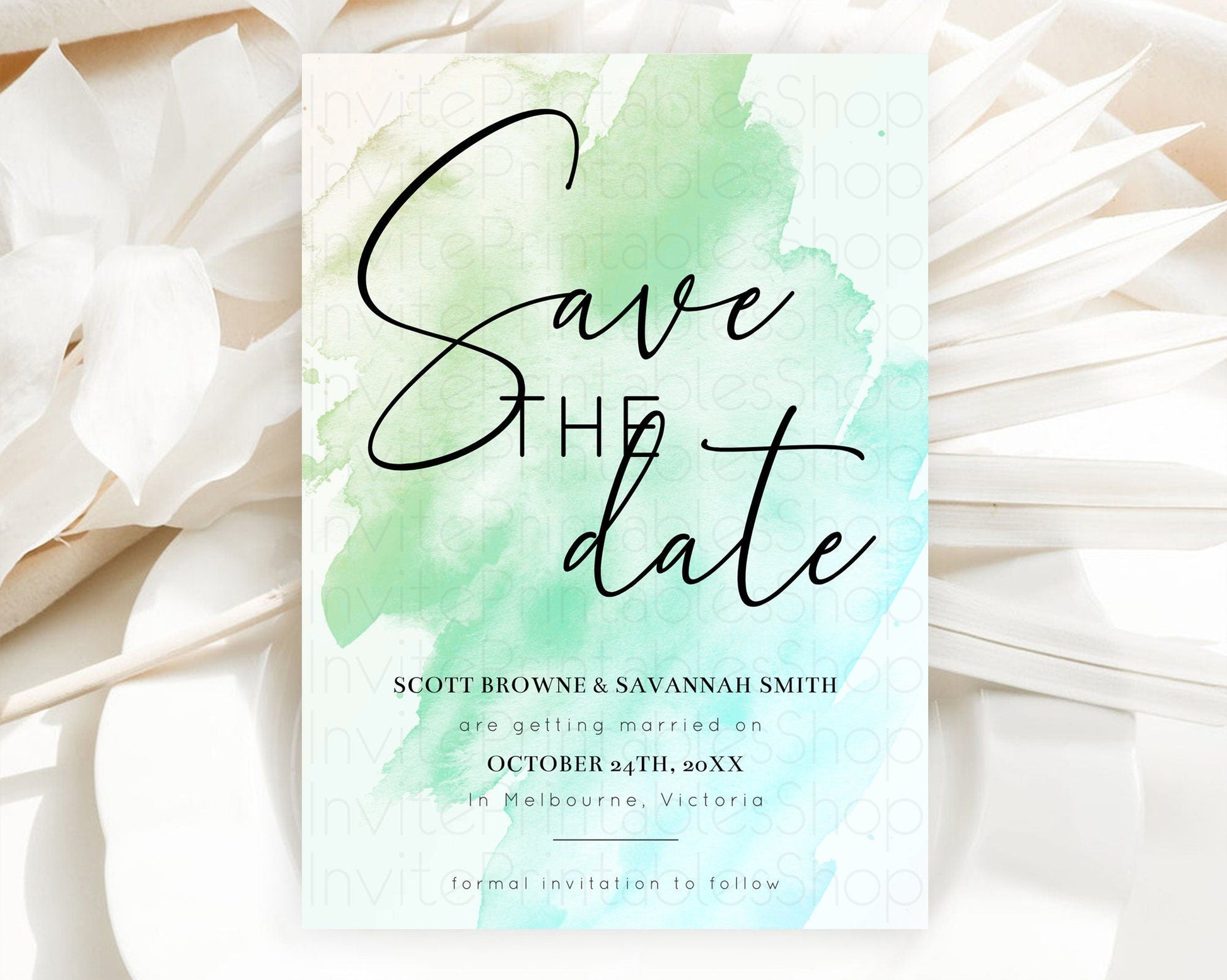 Green Watercolor Save The Date Template Ombre Green Watercolor Splash Party 1st Birthday Baby Shower Wedding Baptism Bridal Shower D10166