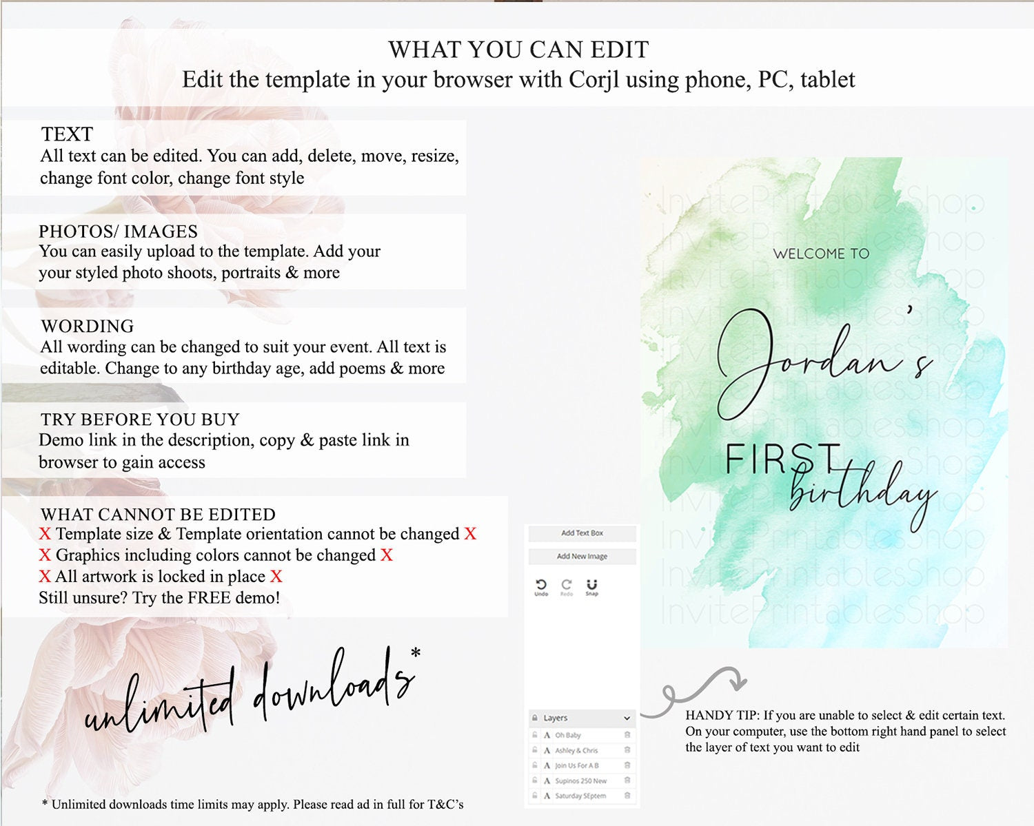 • After purchase, Corjl emails your editing link. Allow up to 15 minutes for delivery.