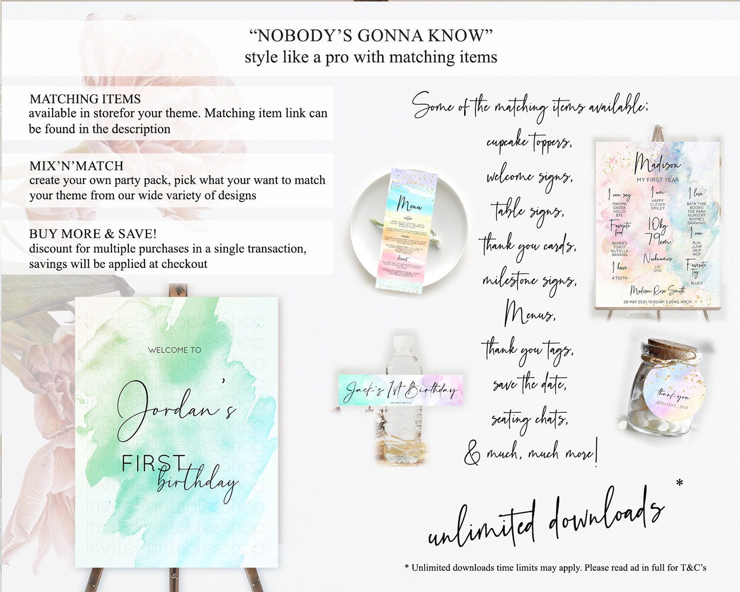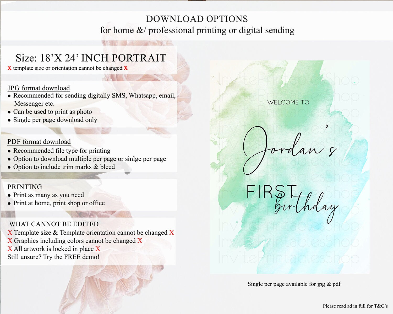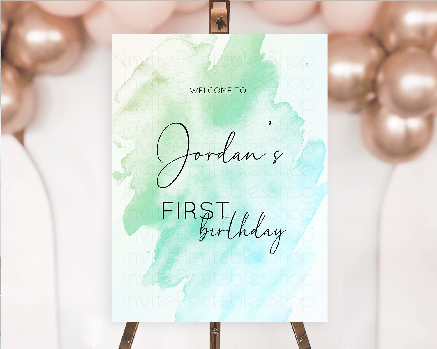 Green Welcome Sign Green Watercolor Welcome Board Pastel Green Party Decor Splash Welcome Poster First Birthday Welcome Sign D10166