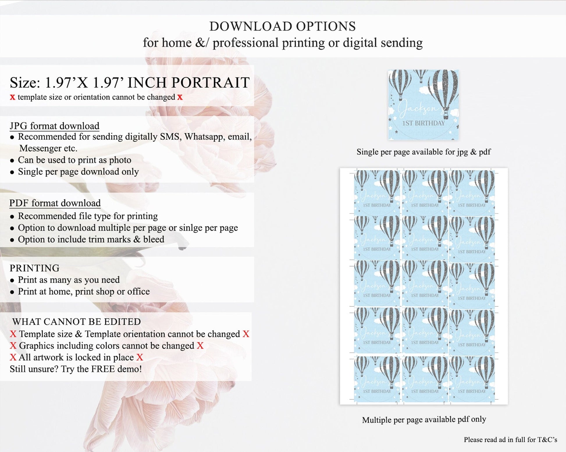 • Template size & orientation cannot be changed. Please use the demo link to confirm this product suits your needs.