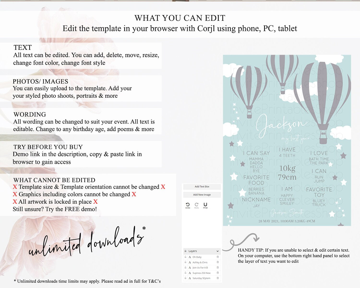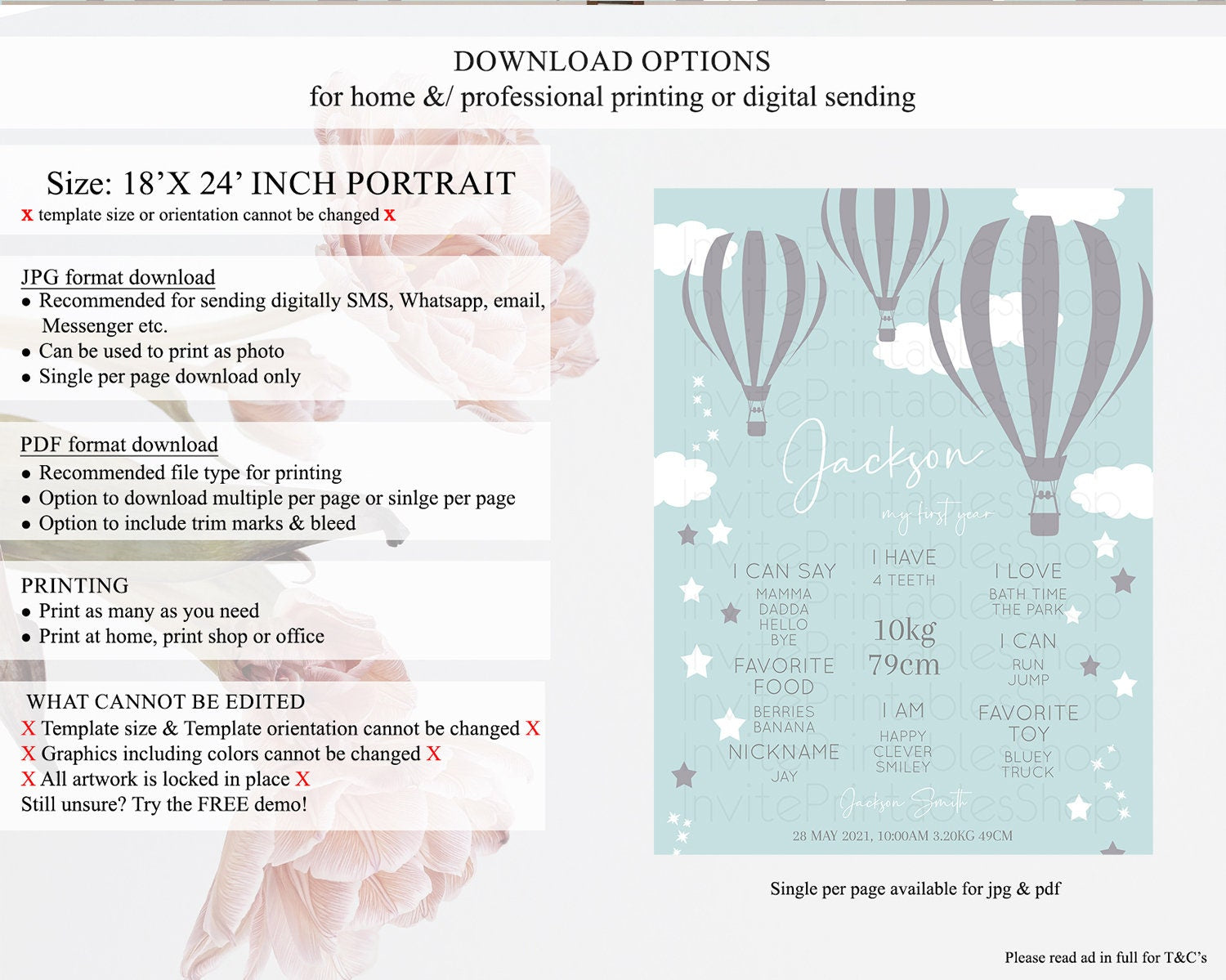 • Template size & orientation cannot be changed. Please use the demo link to confirm this product suits your needs.