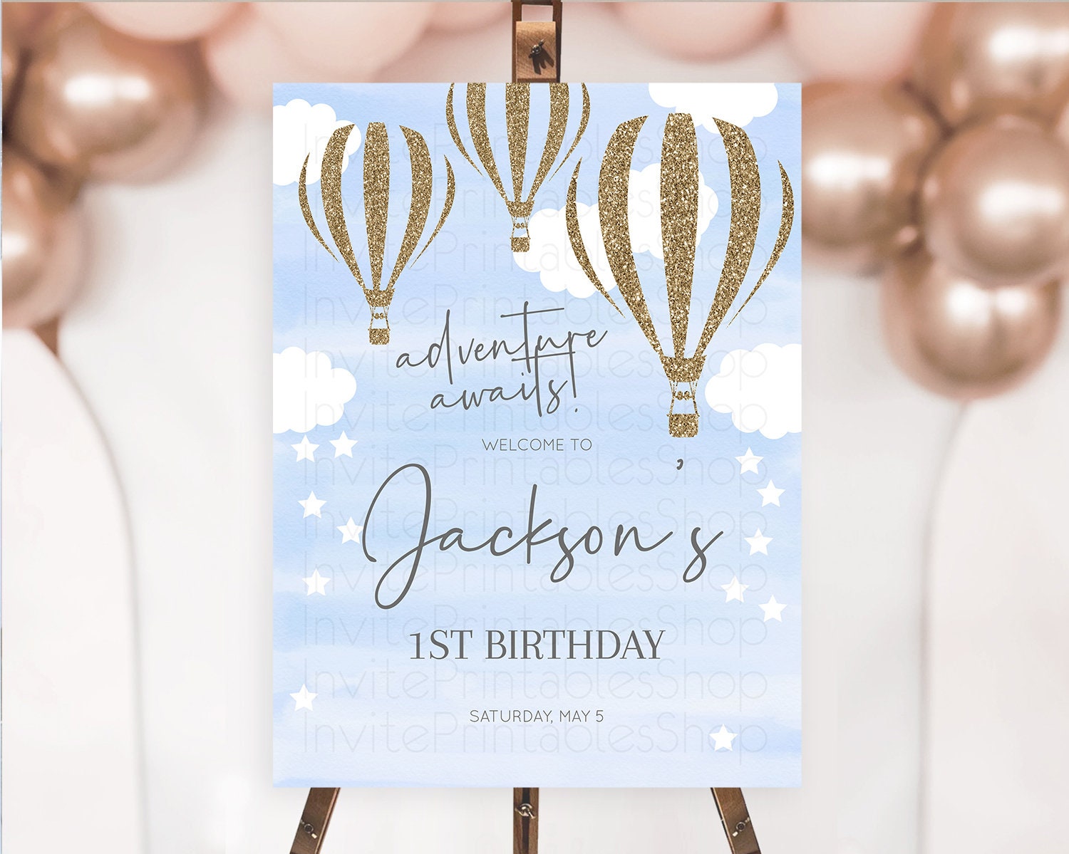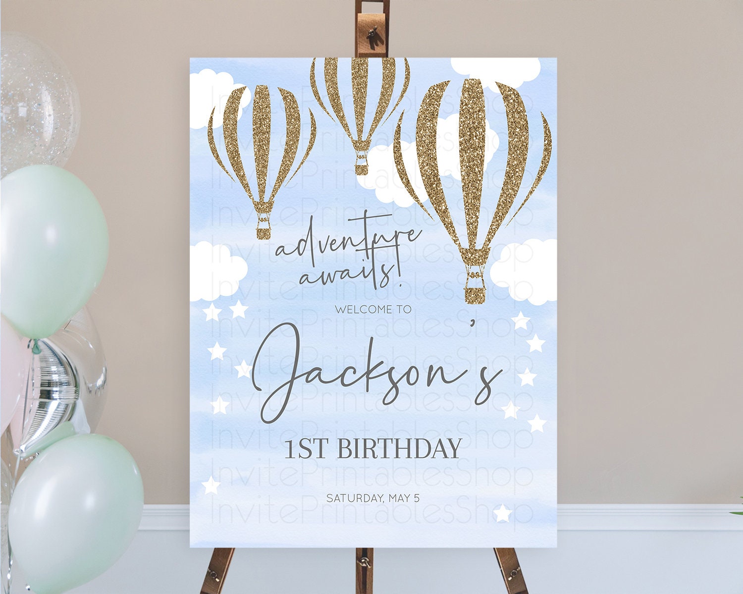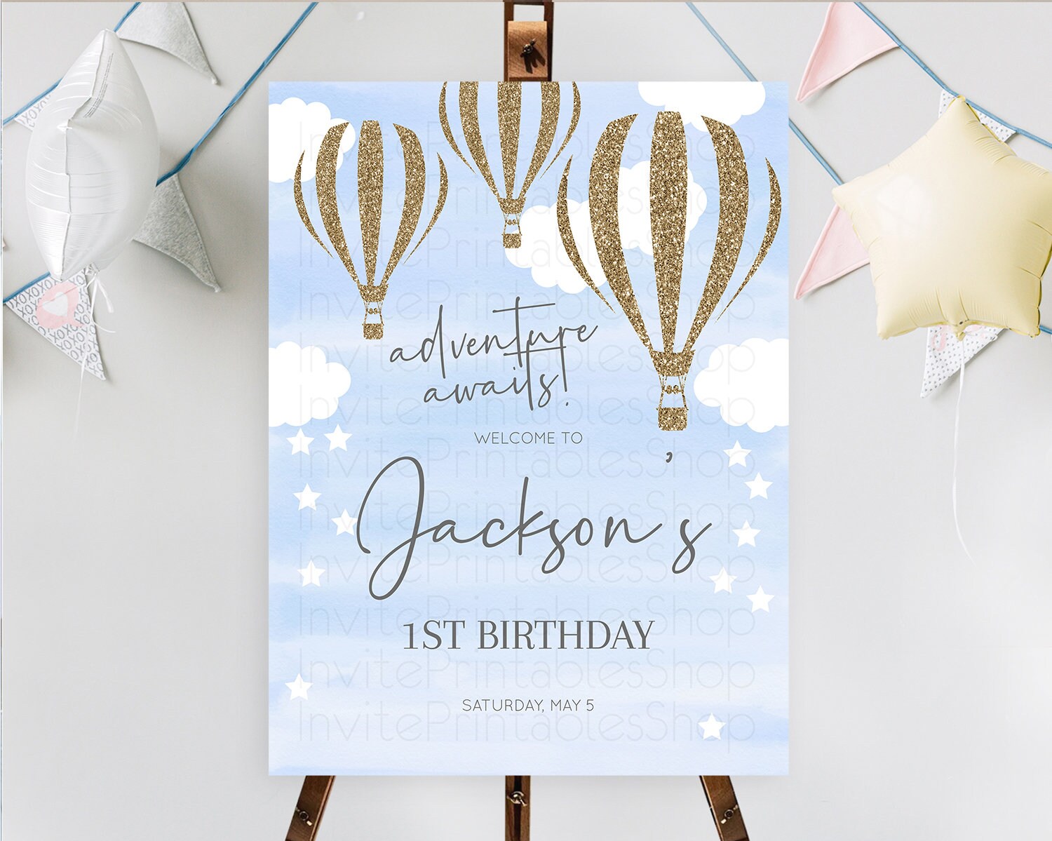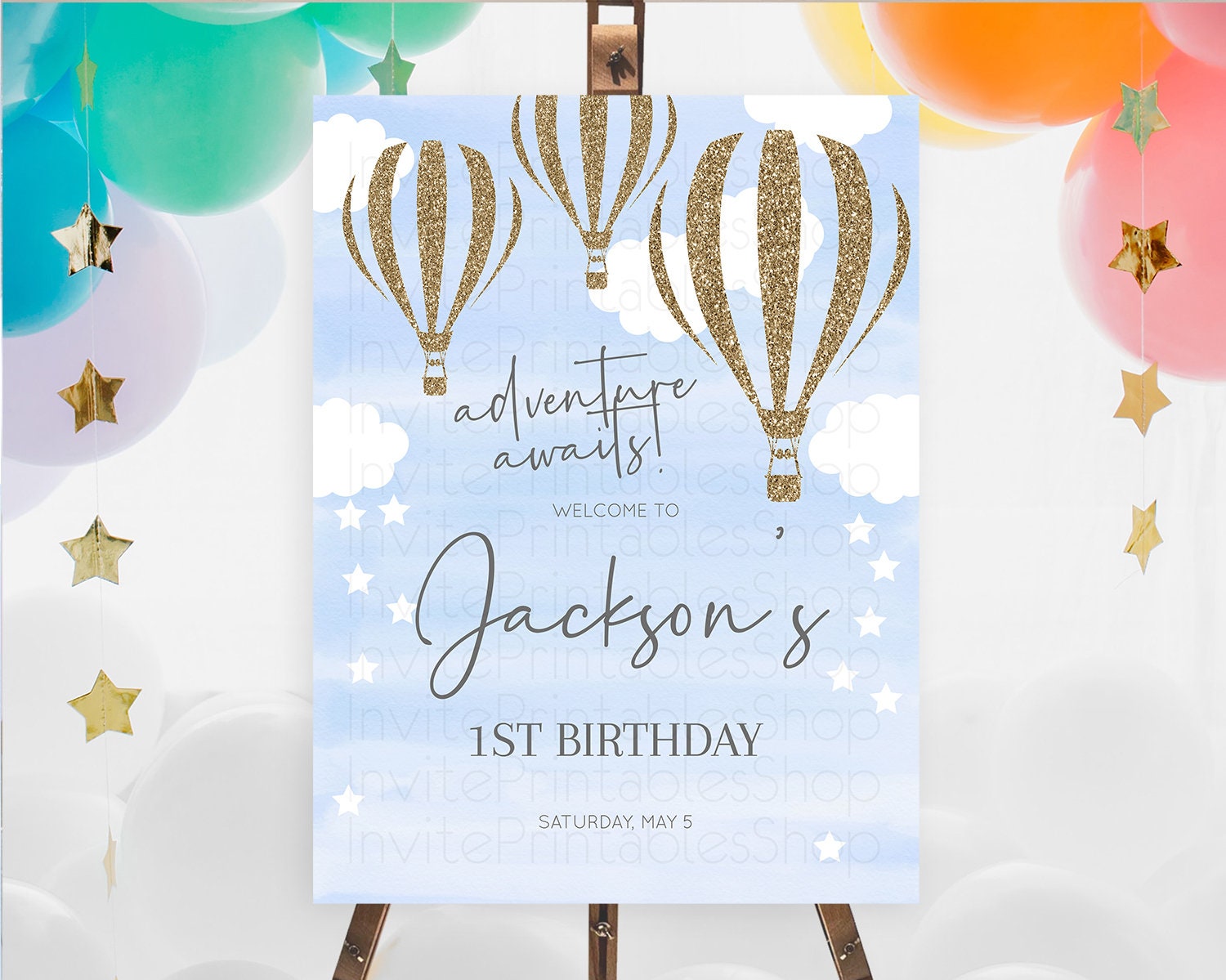 Hot Air Balloon First Birthday Welcome Board Hot Air Balloon Welcome Board Adventure Awaits Watercolor First Birthday Welcome Sign D10333