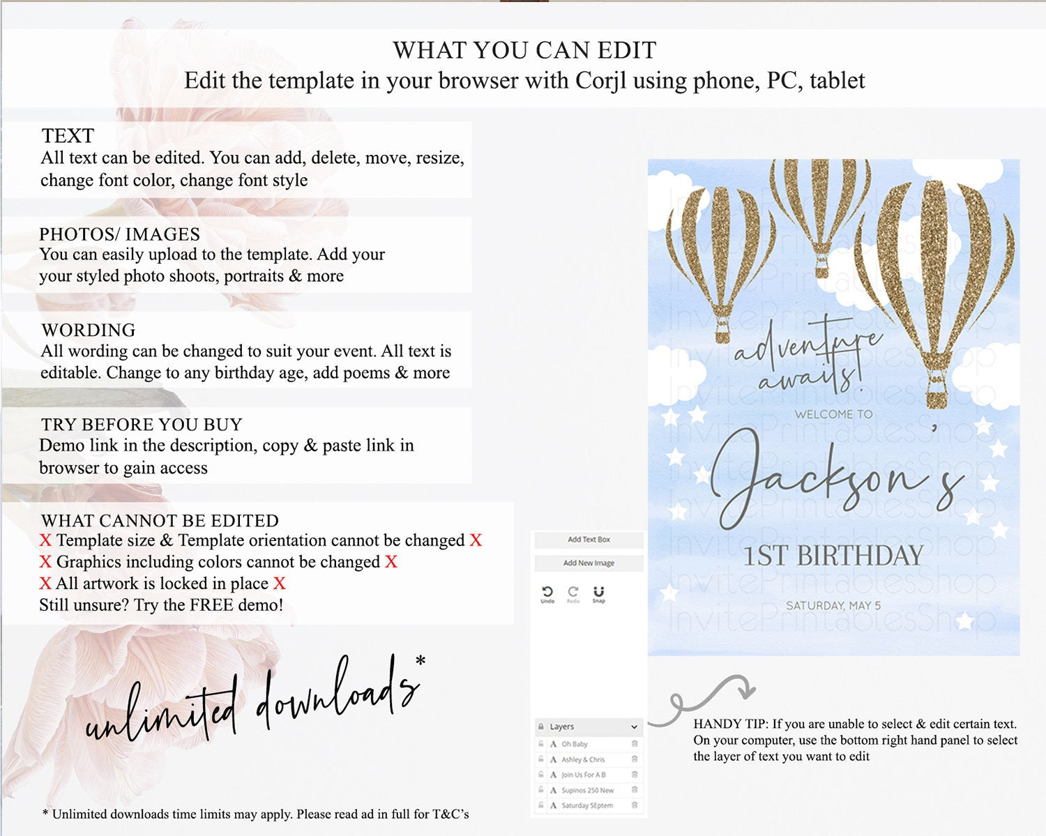 • After purchase, Corjl emails your editing link. Allow up to 15 minutes for delivery.
