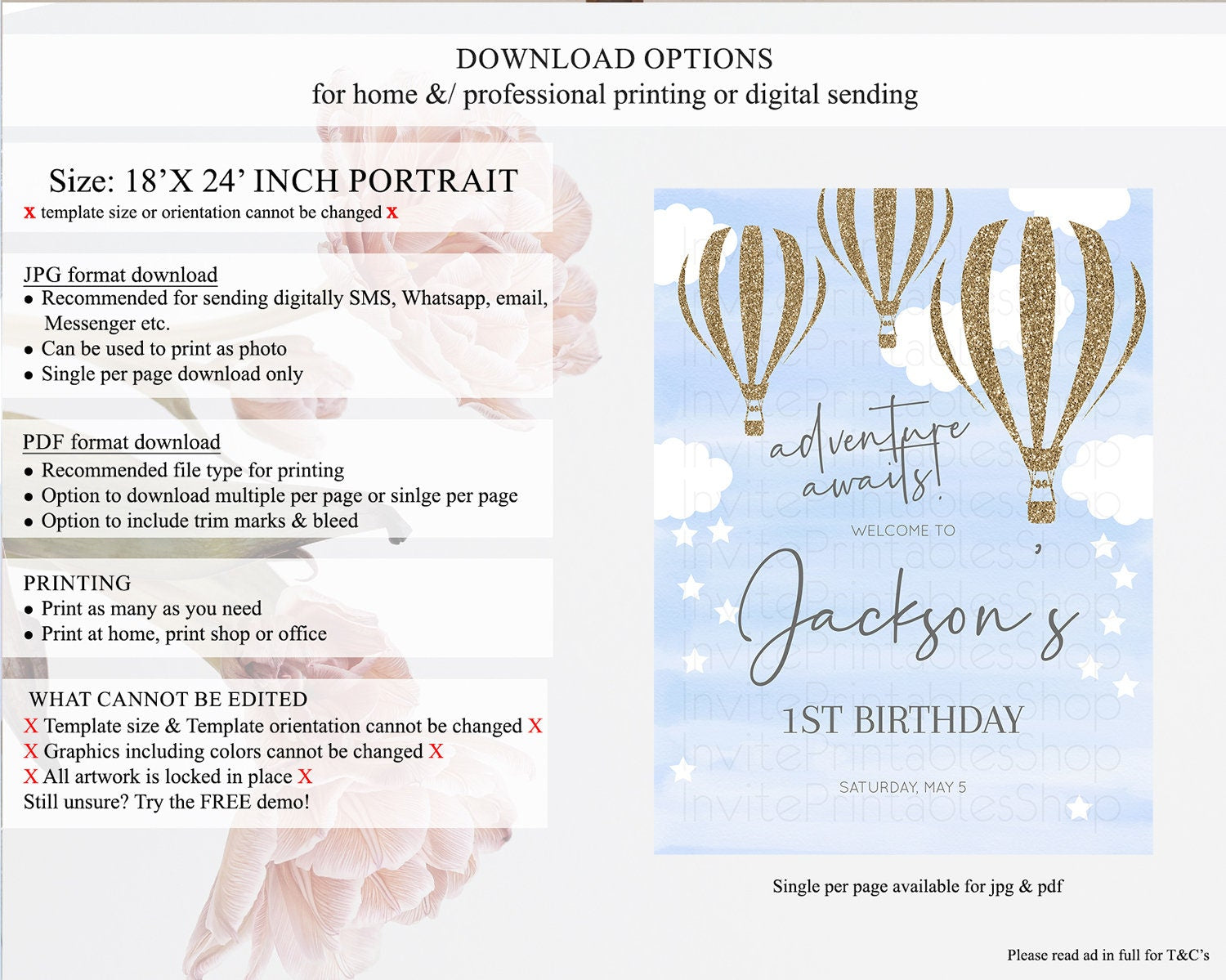 • Template size & orientation cannot be changed. Please use the demo link to confirm this product suits your needs.