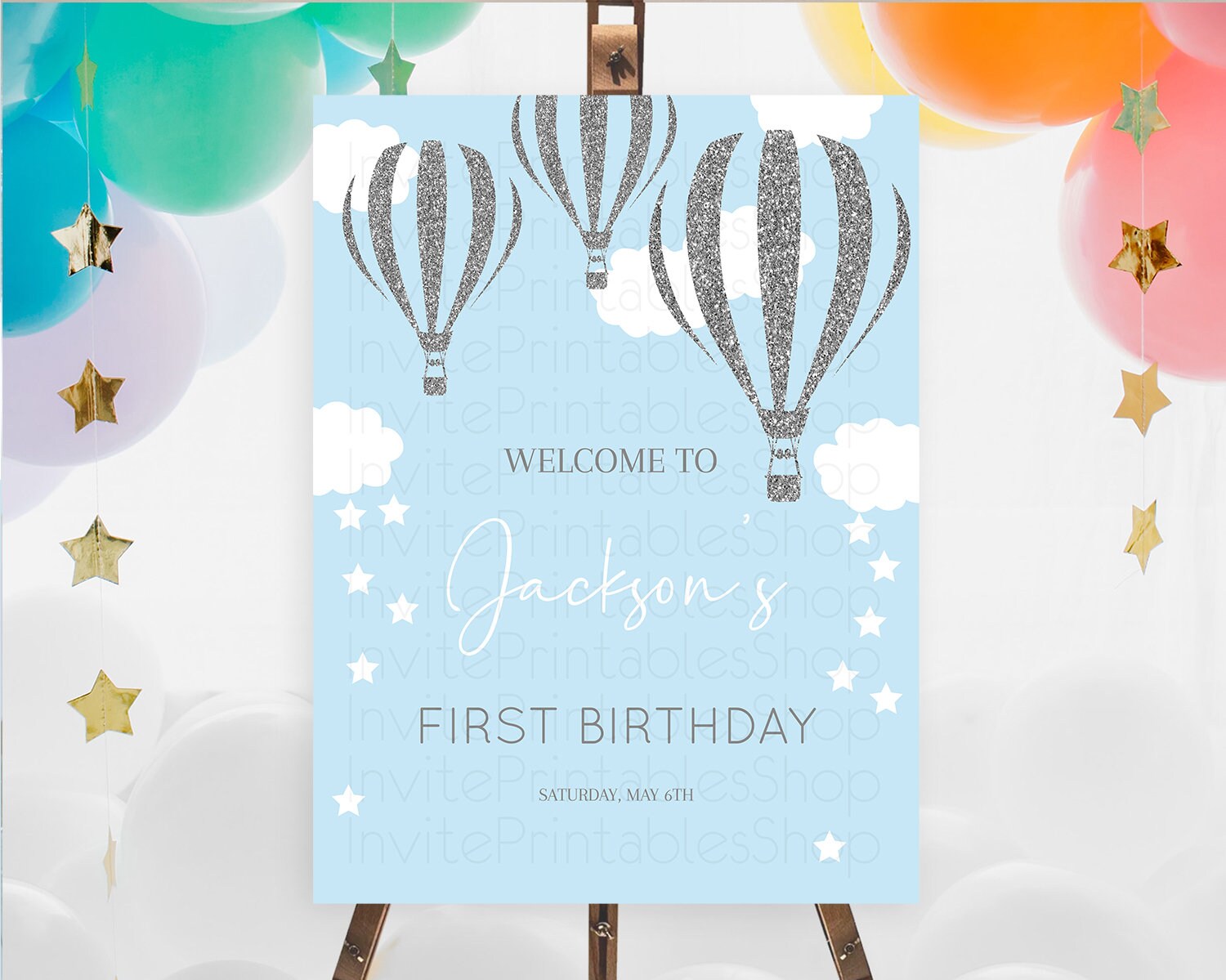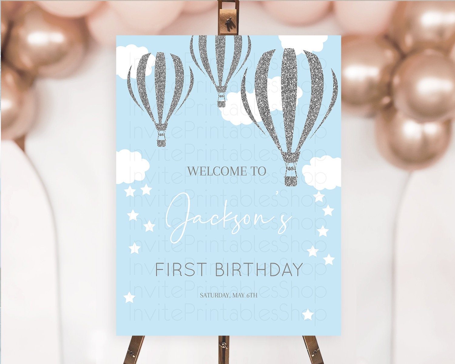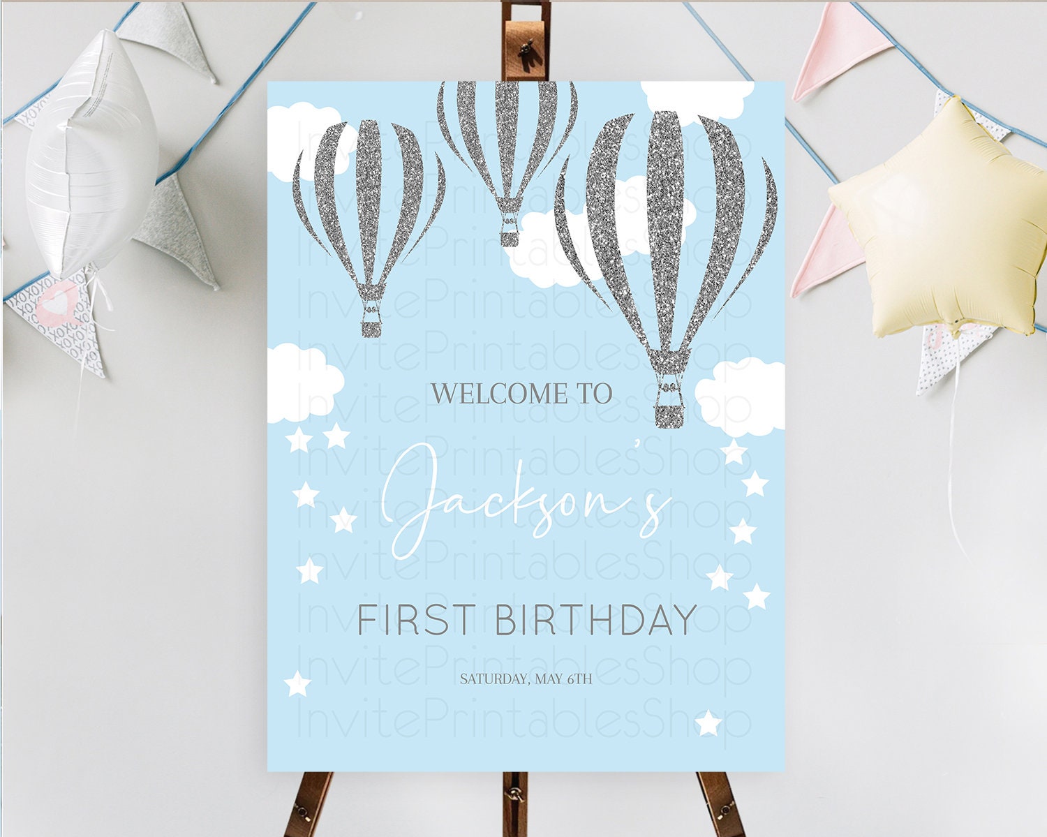 Hot Air Balloon First Birthday Welcome Board Hot Air Balloon Welcome Board Adventure Awaits Watercolor First Birthday Welcome Sign D10335