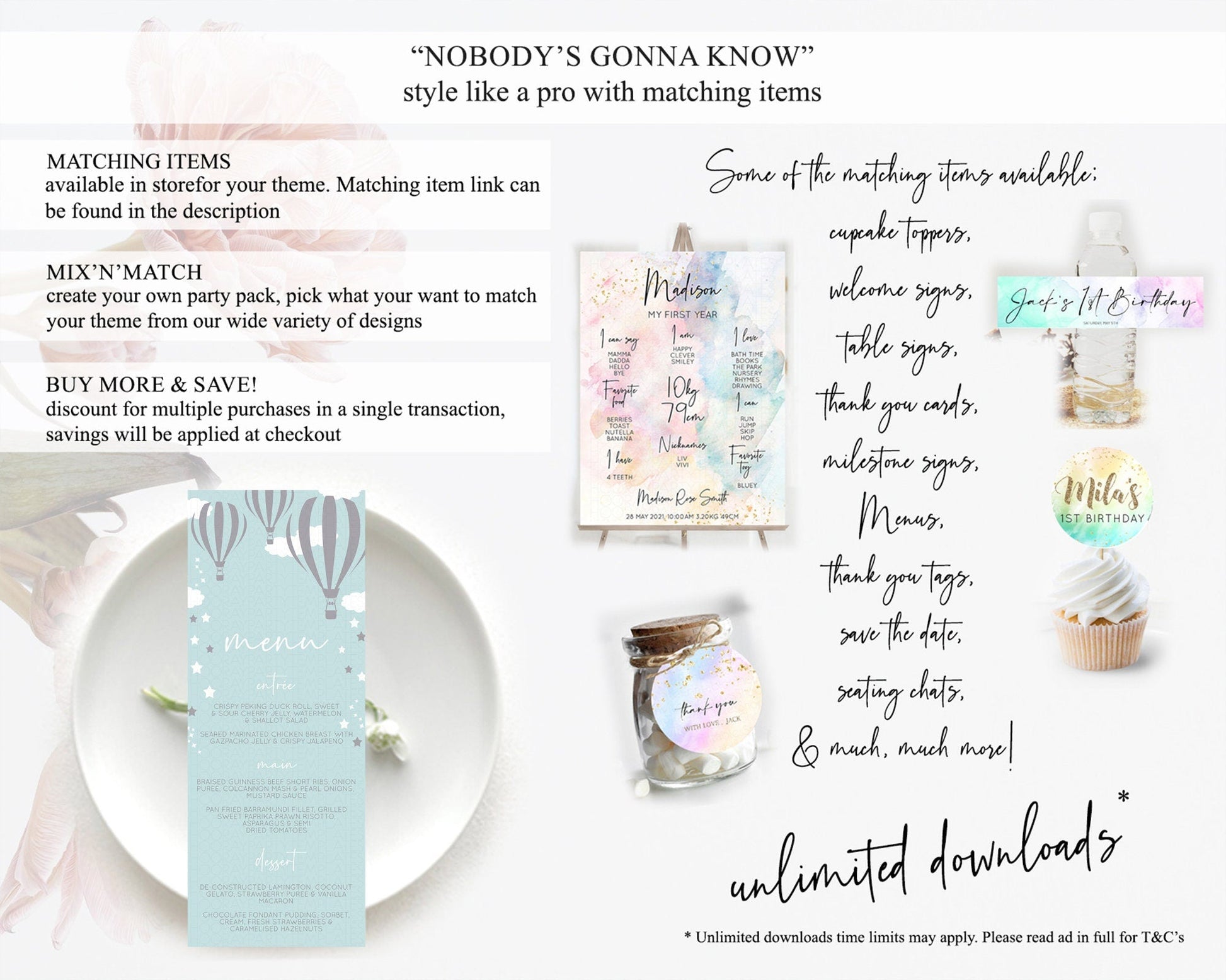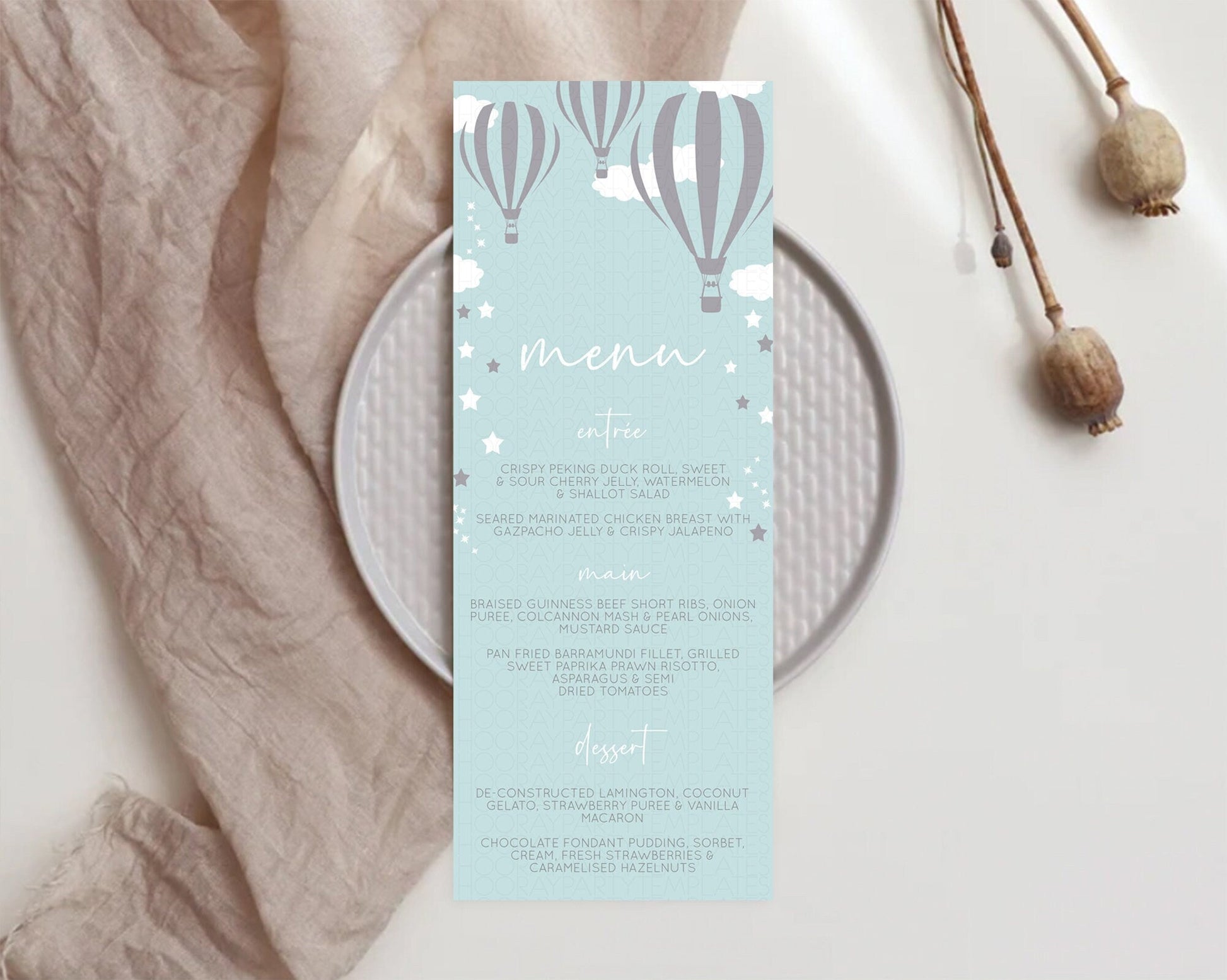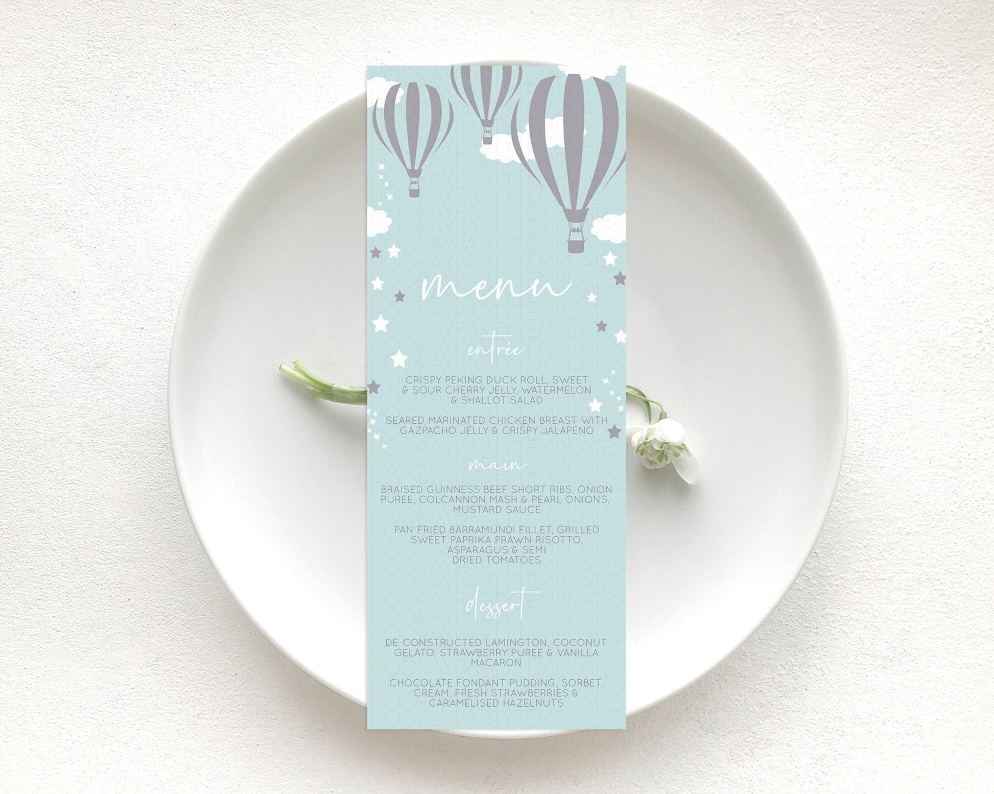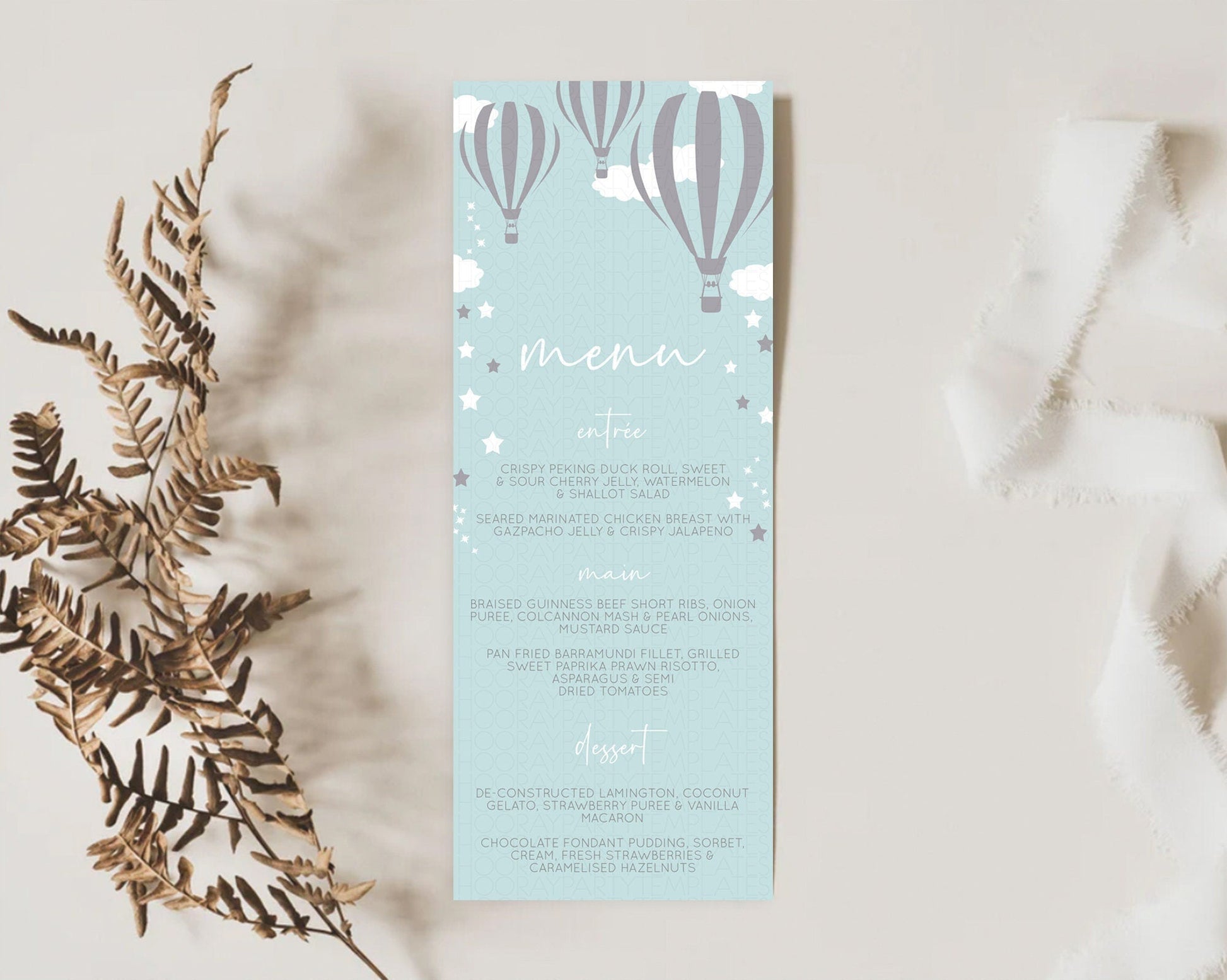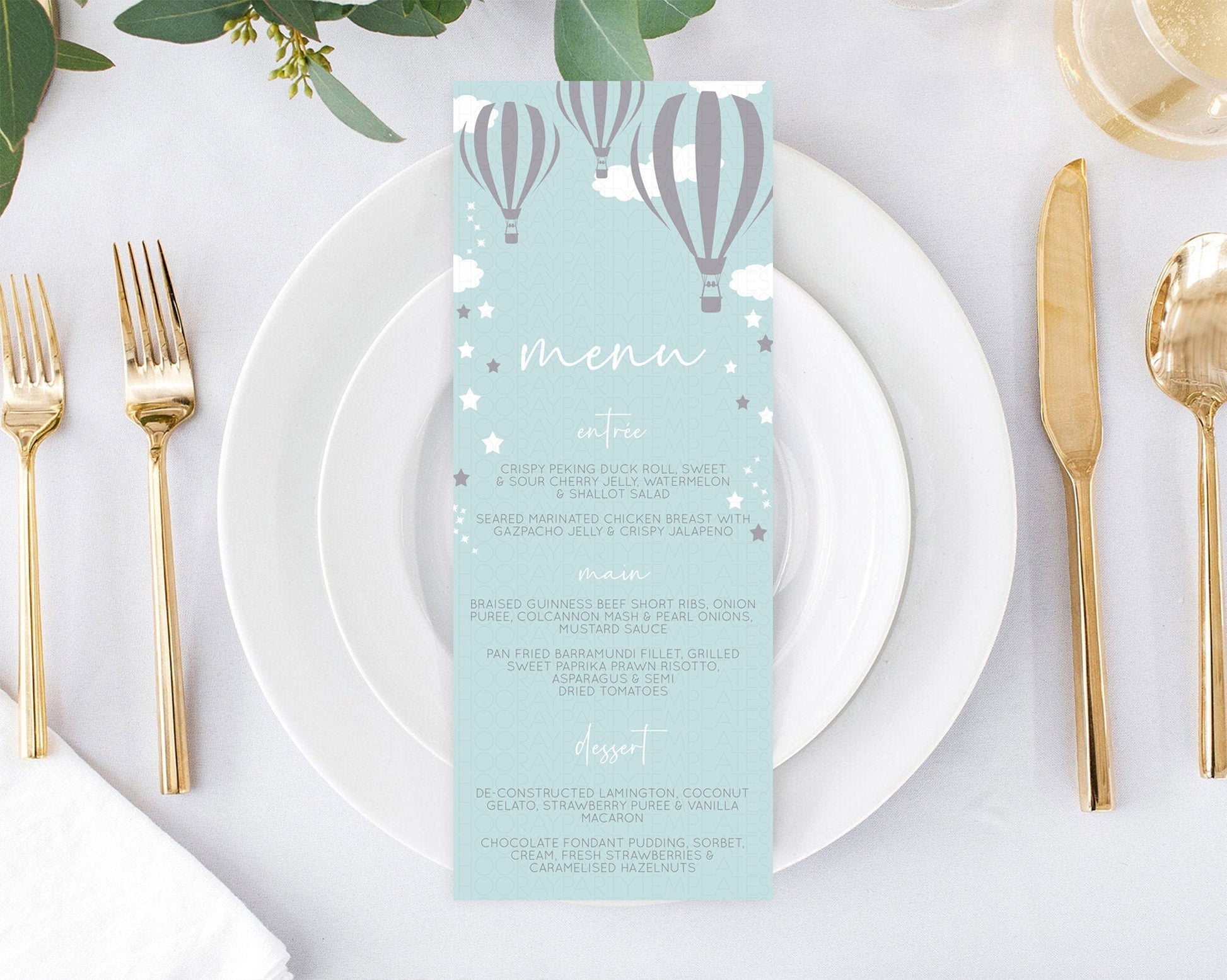 Hot Air Balloon Menu Hot Air Balloon Menu Template Hot Air Balloon Table Decor Adventure Awaits Dinner Dessert Party Food Menu D10324