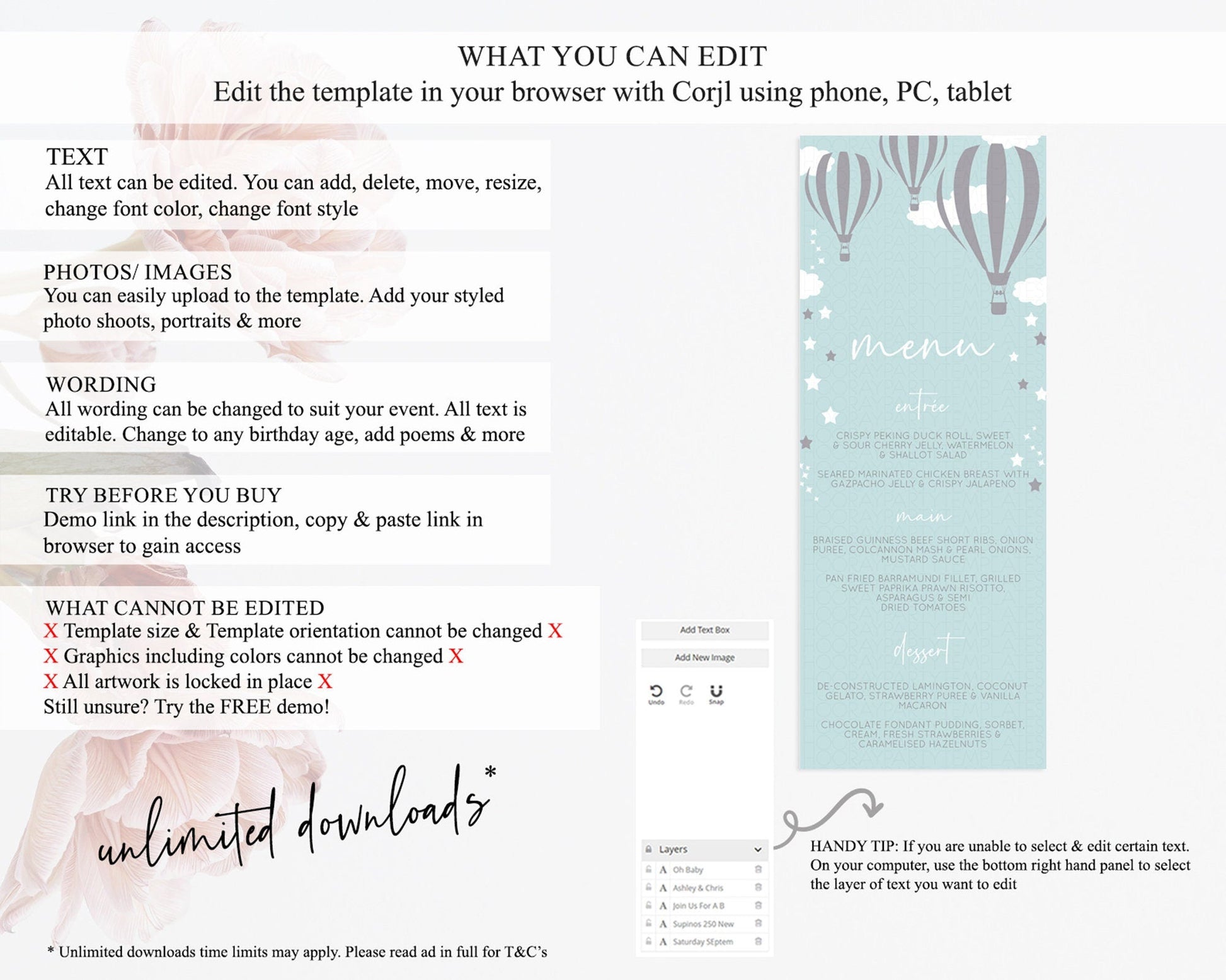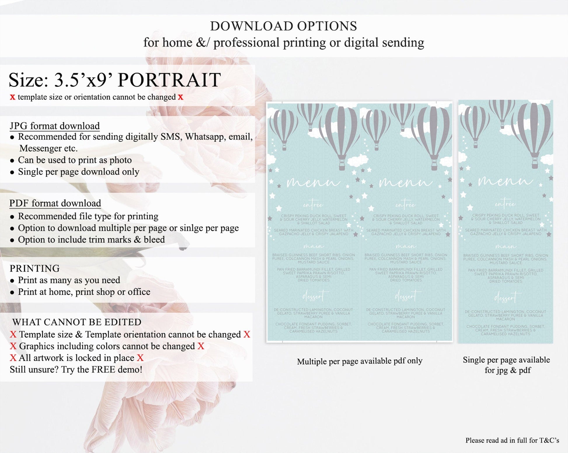 • Template size & orientation cannot be changed. Please use the demo link to confirm this product suits your needs.