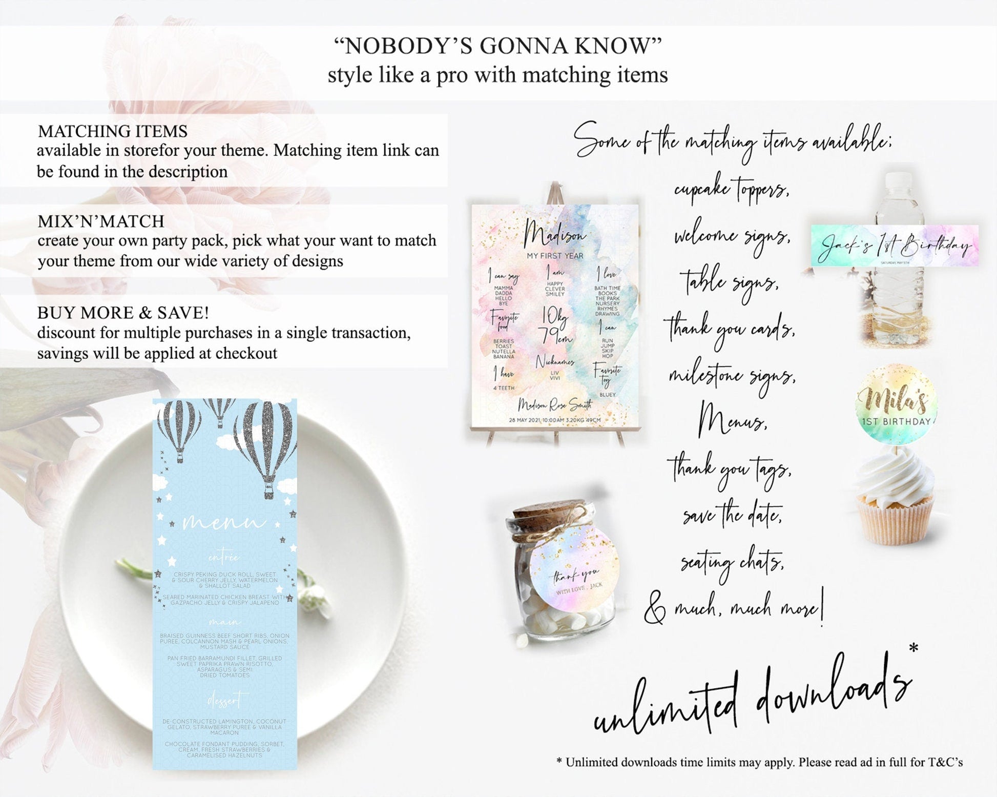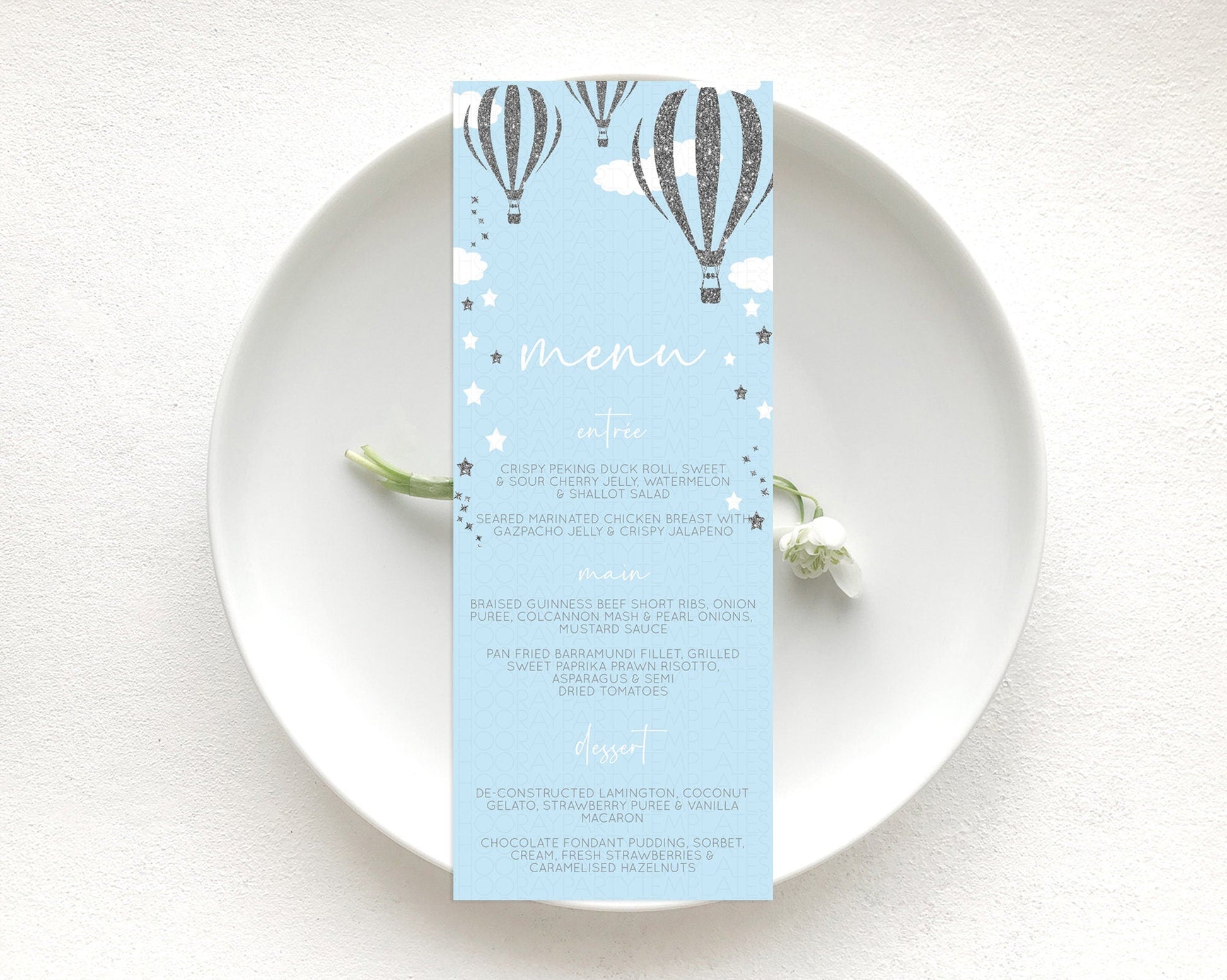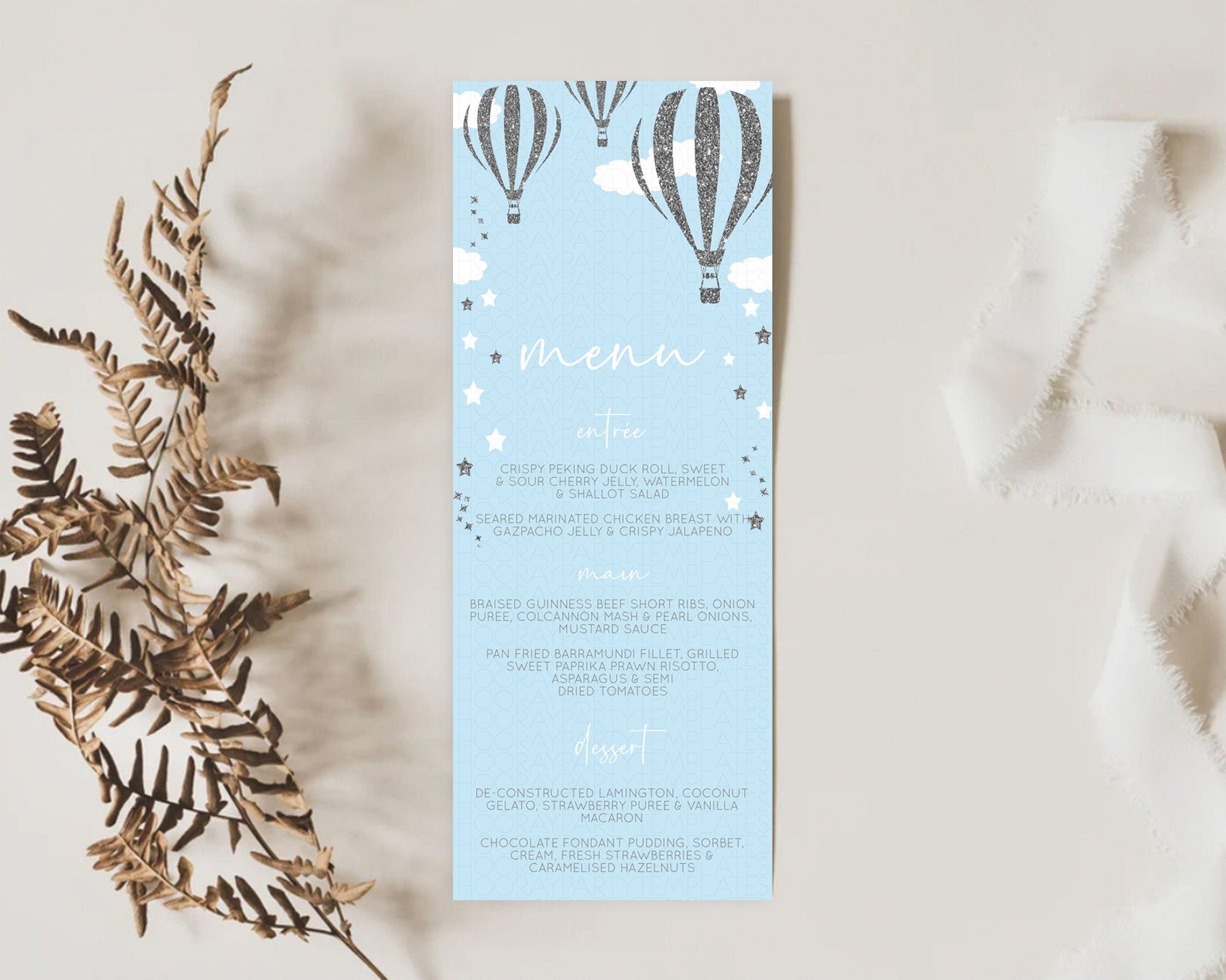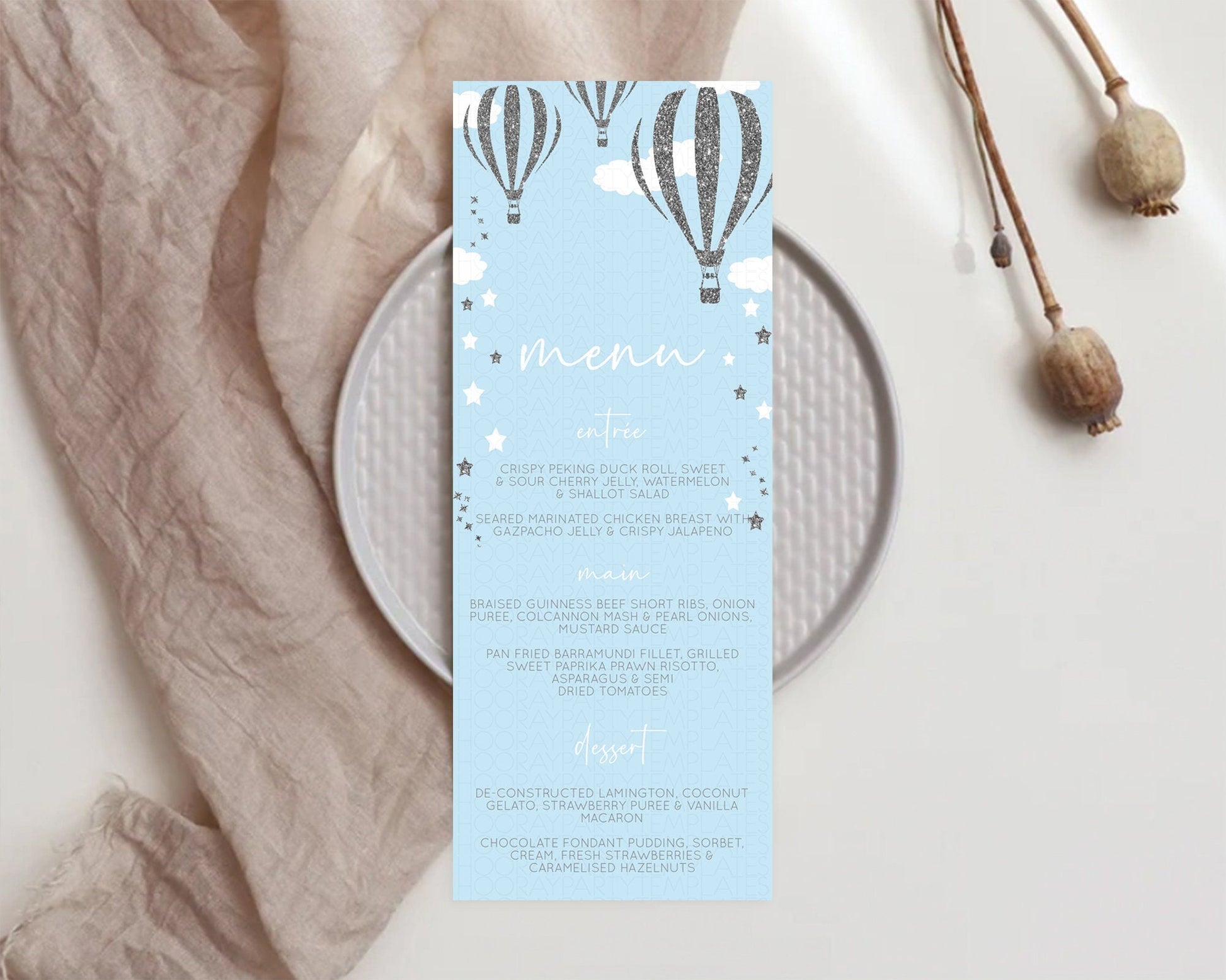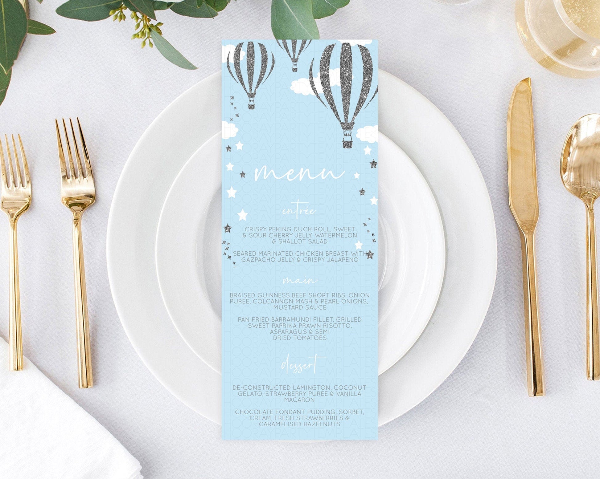 Hot Air Balloon Menu Hot Air Balloon Menu Template Hot Air Balloon Table Decor Adventure Awaits Dinner Dessert Party Food Menu D10335