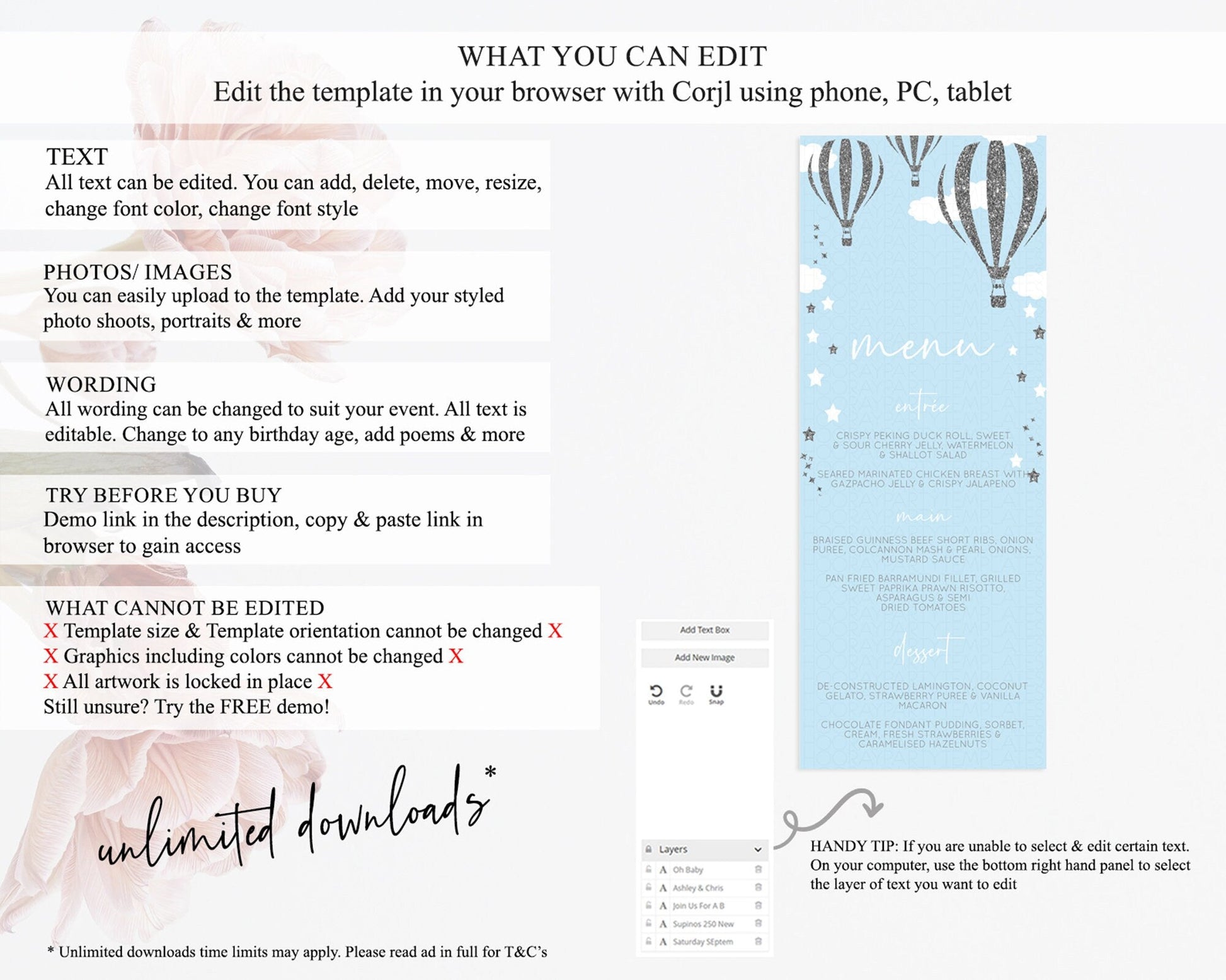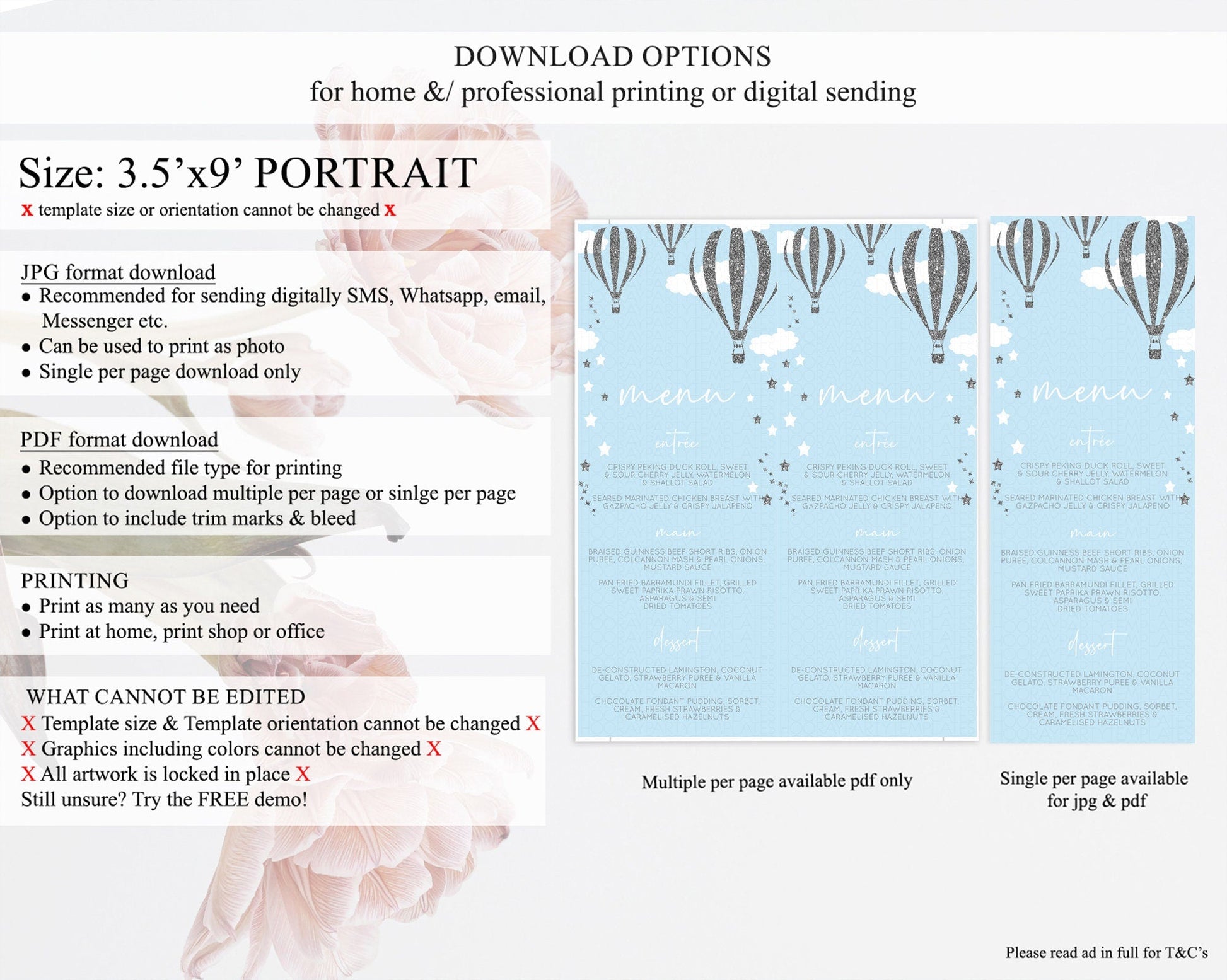 • Template size & orientation cannot be changed. Please use the demo link to confirm this product suits your needs.