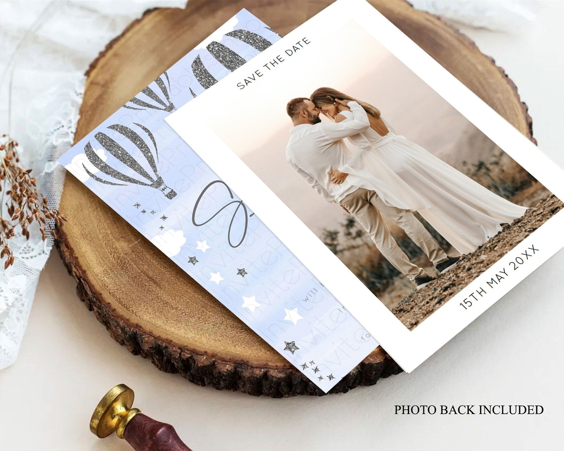 Hot air balloon save the date card