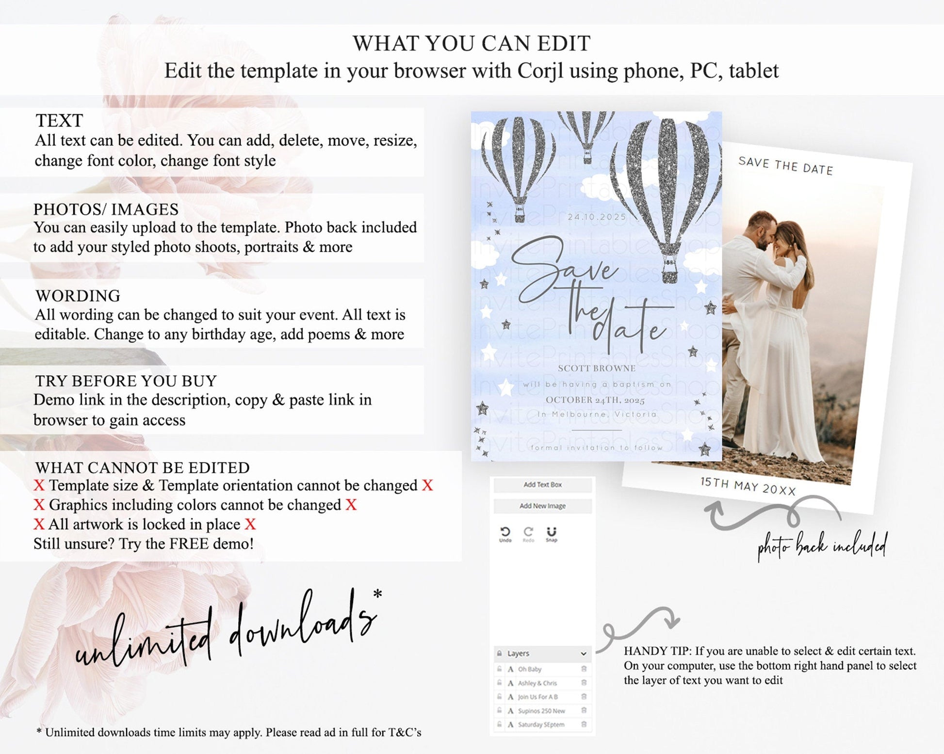 • Template size & orientation cannot be changed. Please use the demo link to confirm this product suits your needs.