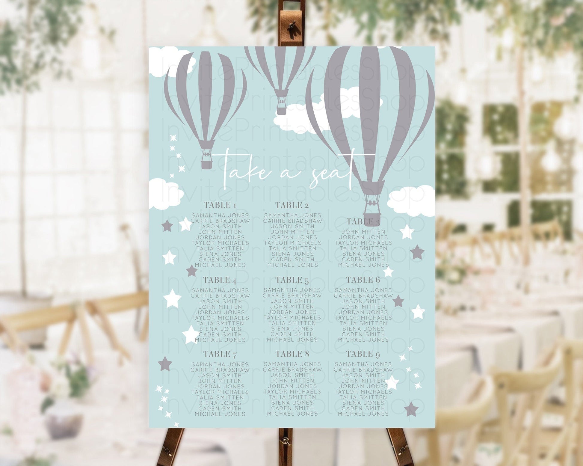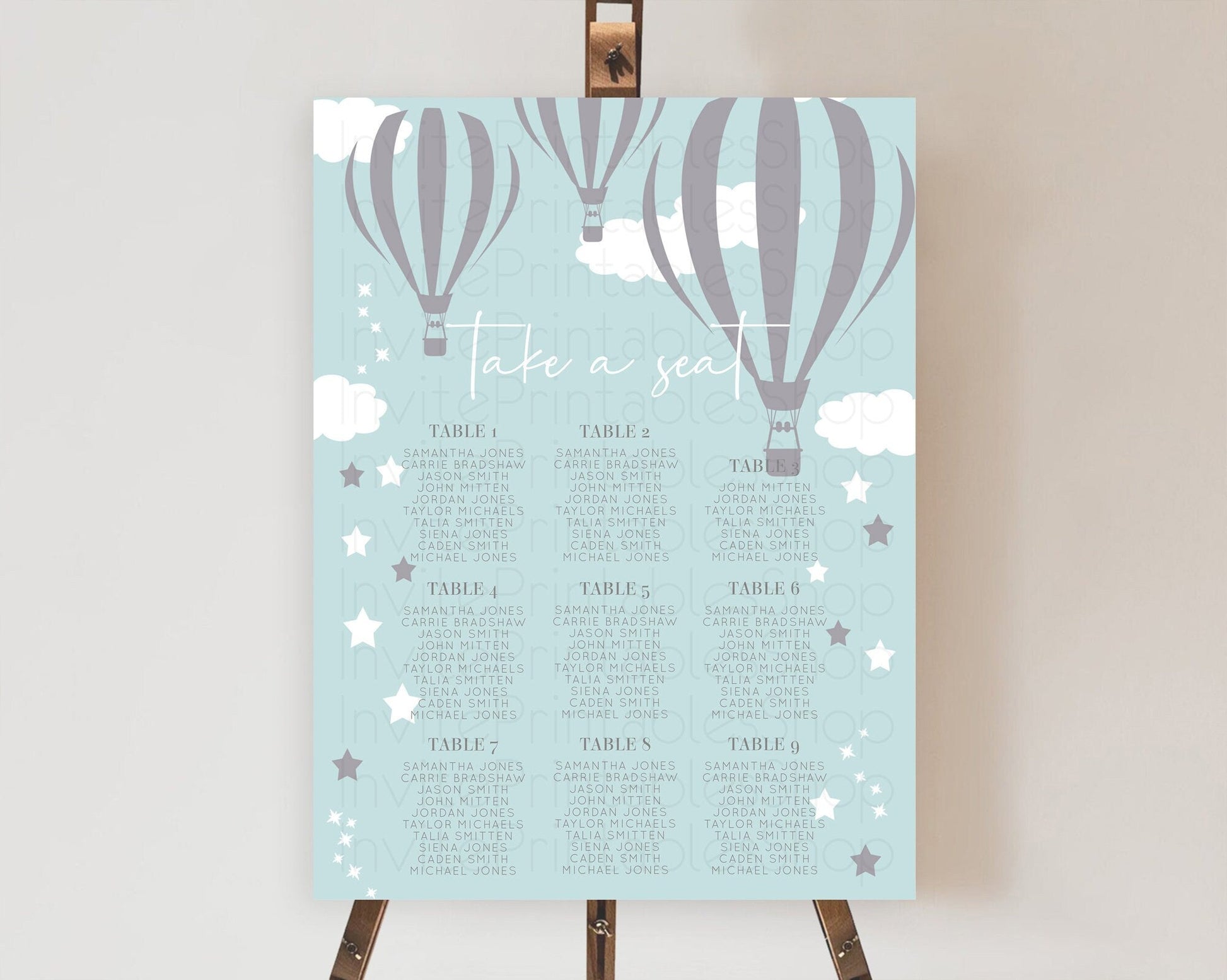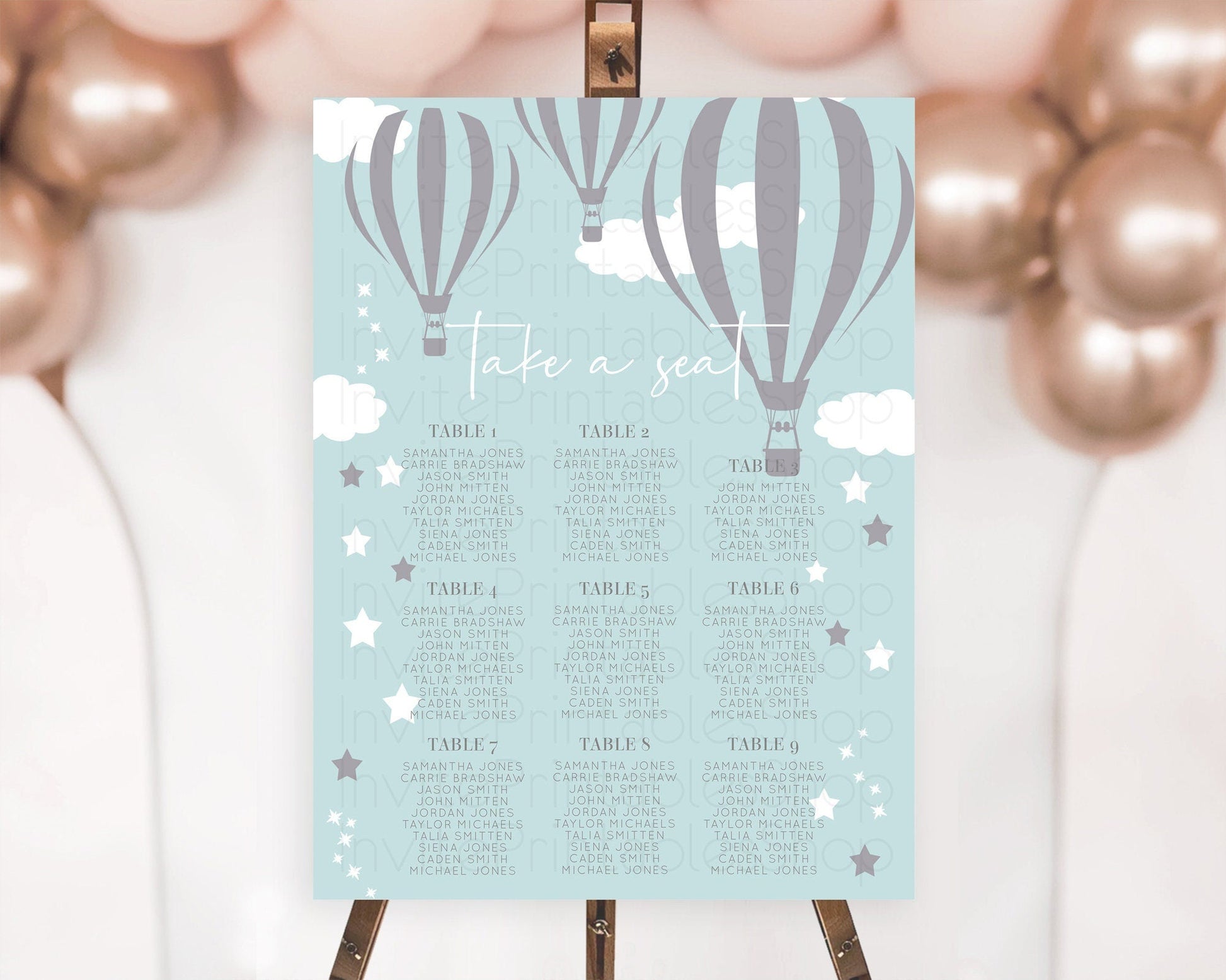 Hot Air Balloon Seating Chart Hot Air Balloon Seating Chart Adventure Awaits Up & Away Glitter Blue Watercolor Seating Take a Seat D10324