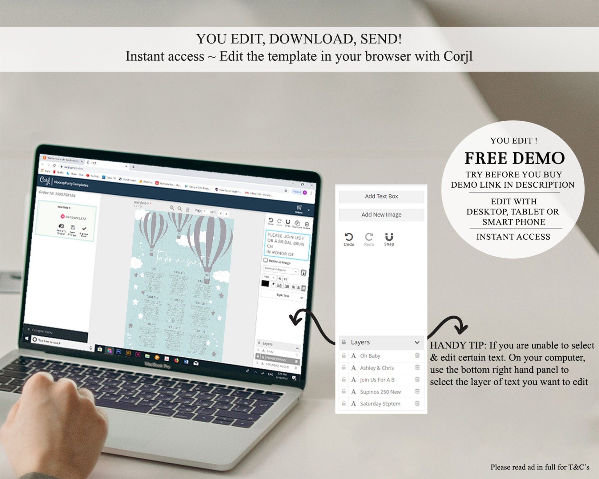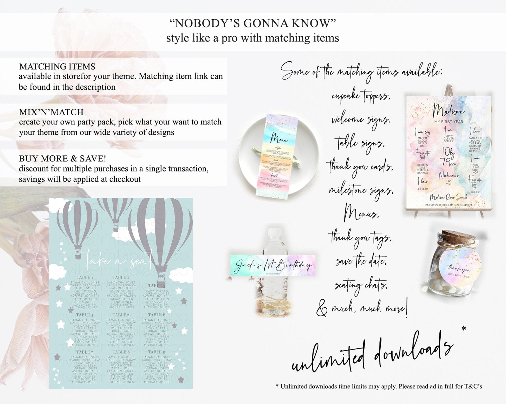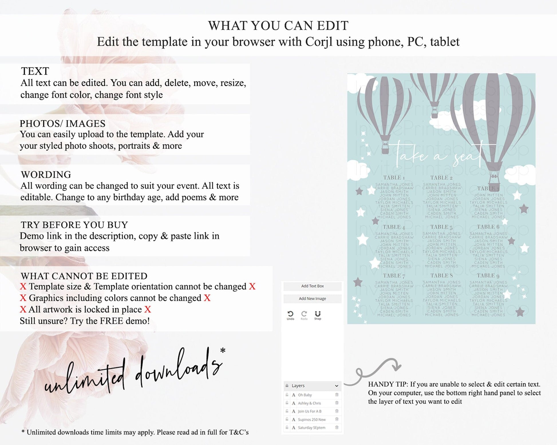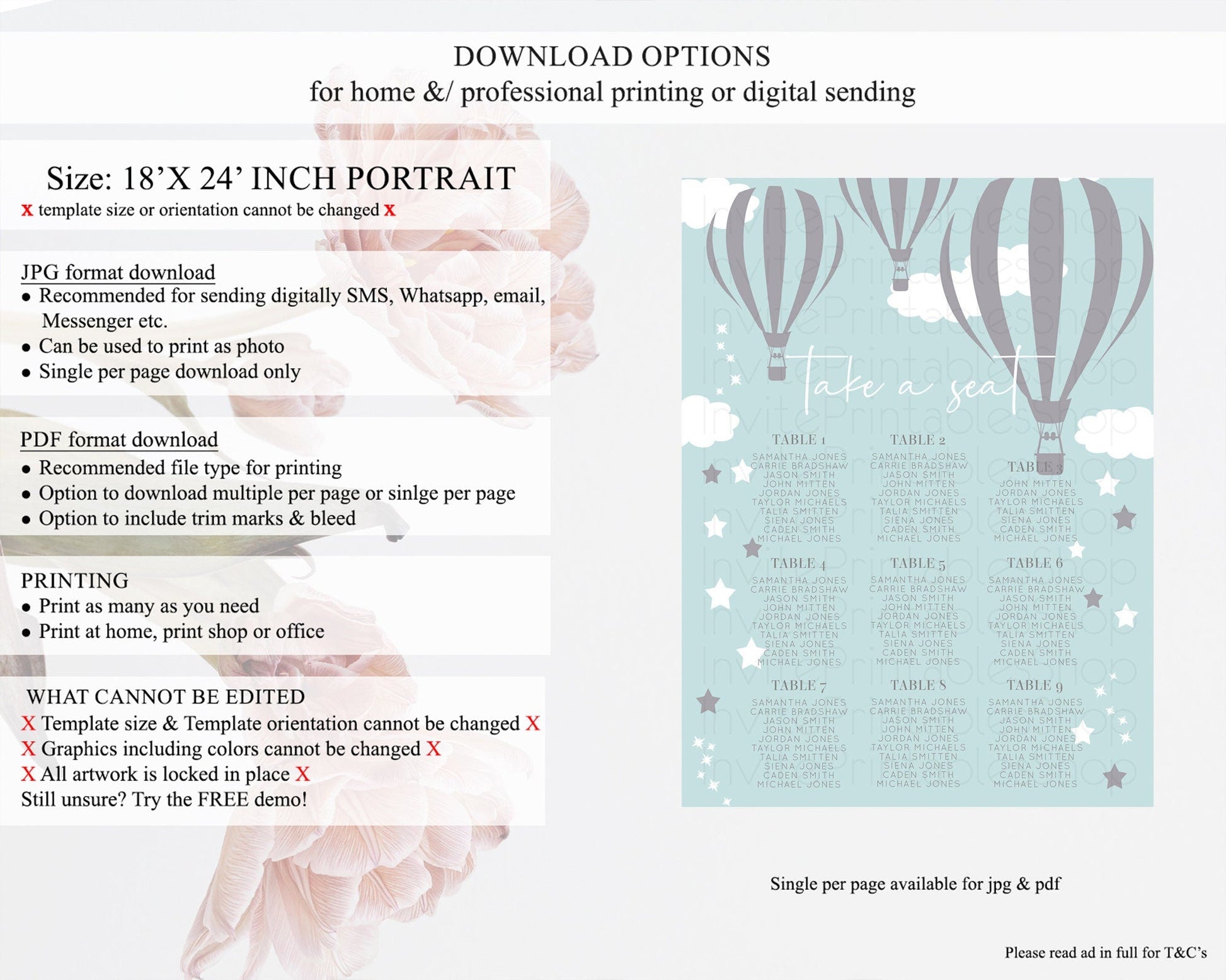Hot Air Balloon Seating Chart Hot Air Balloon Seating Chart Adventure Awaits Up & Away Glitter Blue Watercolor Seating Take a Seat D10324
