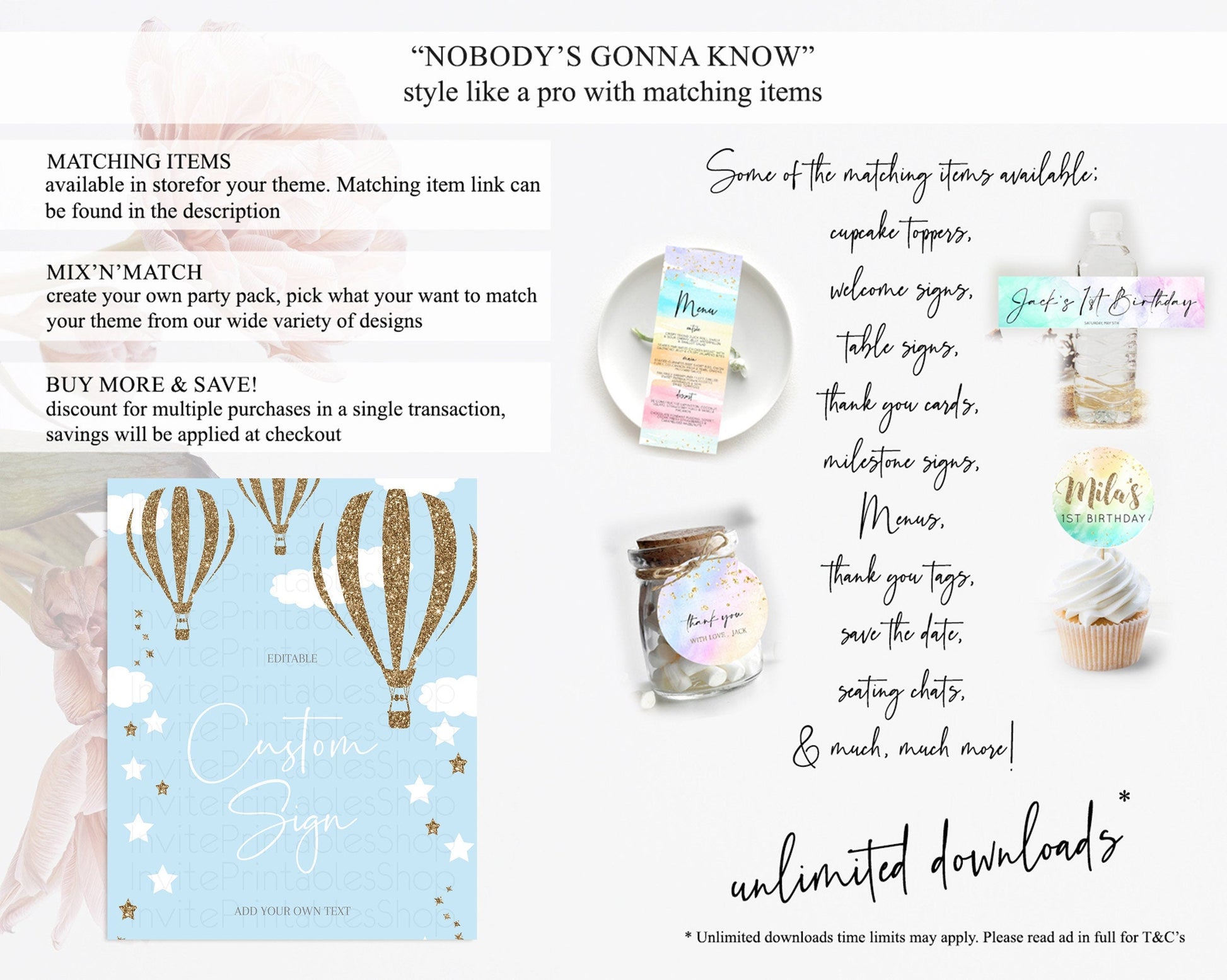 Hot Air Balloon Sign Hot Air Balloon Table Sign Decor Adventure Awaits Mr. ONEderful Party 1st Birthday Baptism Baby Shower D10332