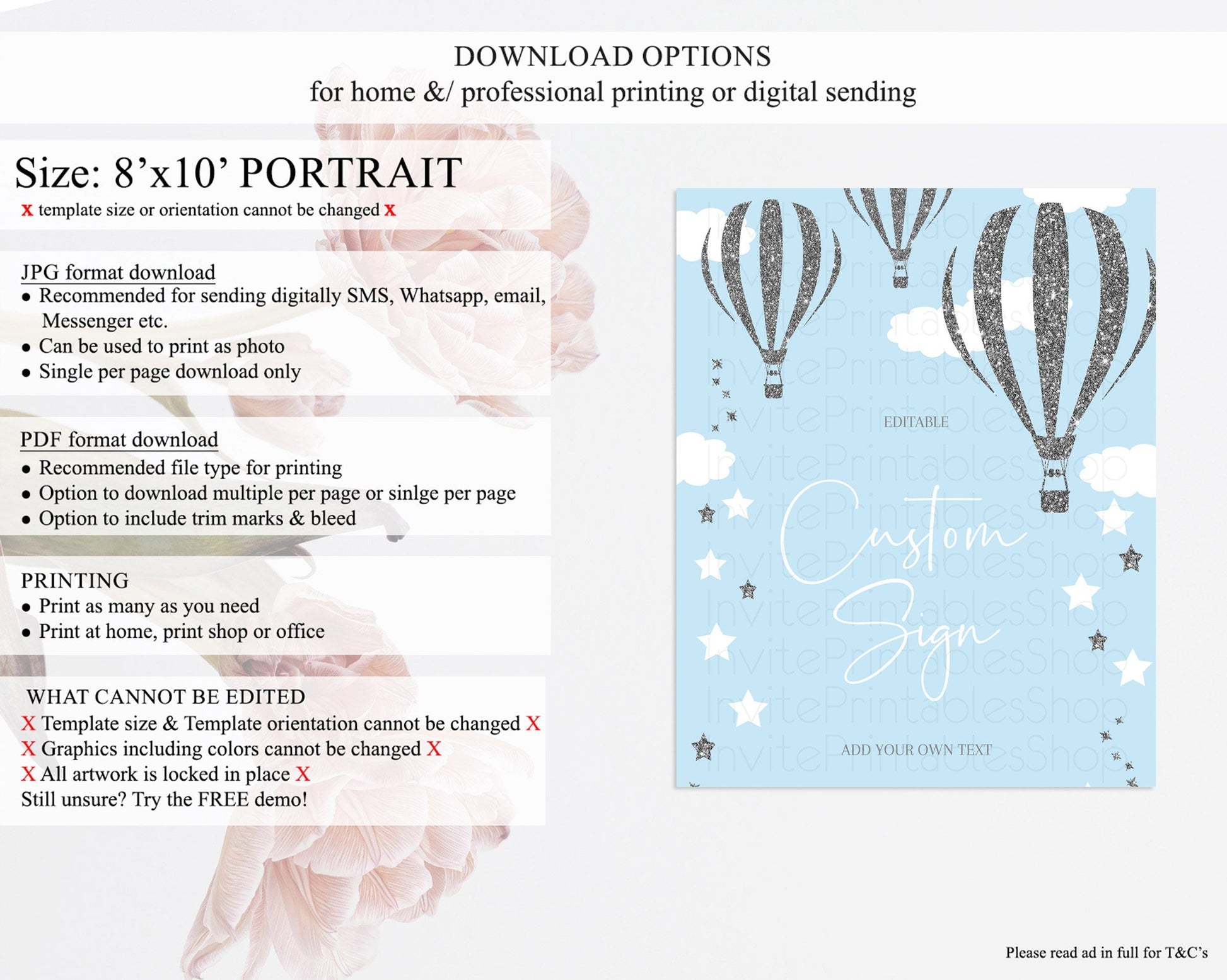 • Template size & orientation cannot be changed. Please use the demo link to confirm this product suits your needs.