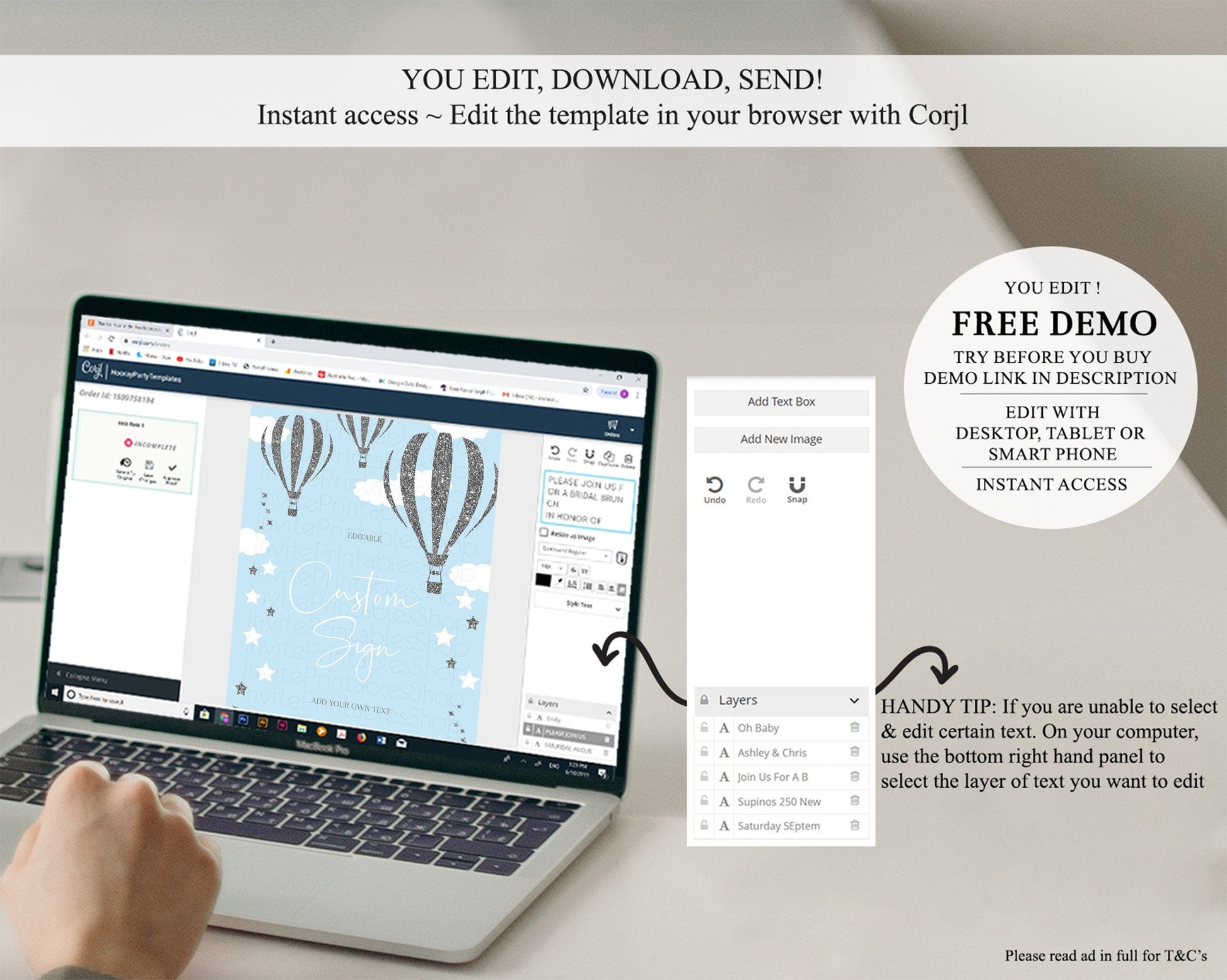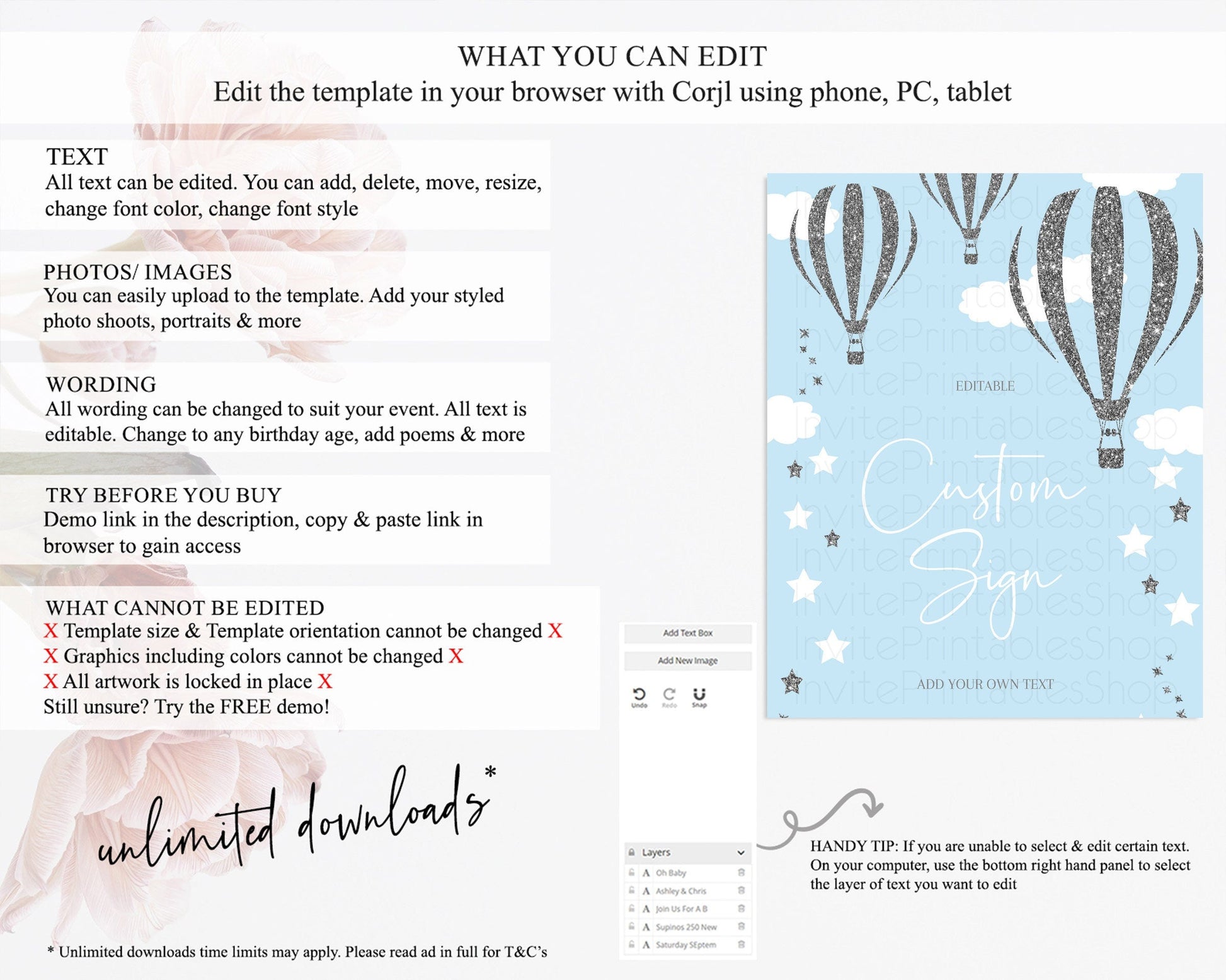 • After purchase, Corjl emails your editing link. Allow up to 15 minutes for delivery.