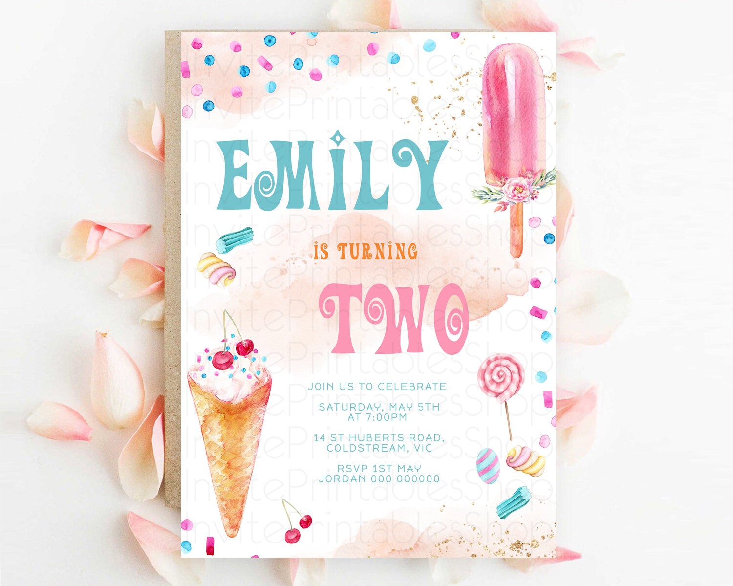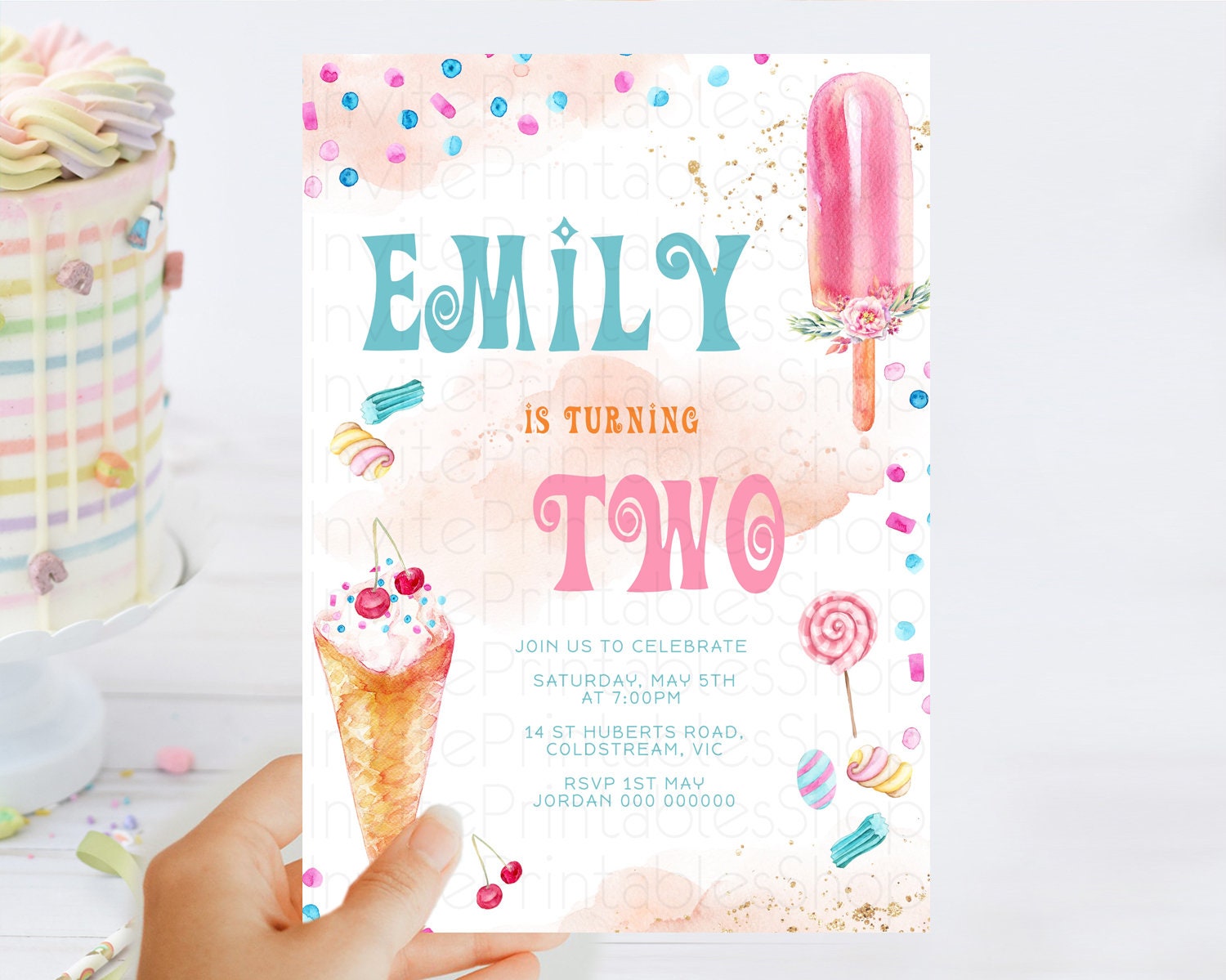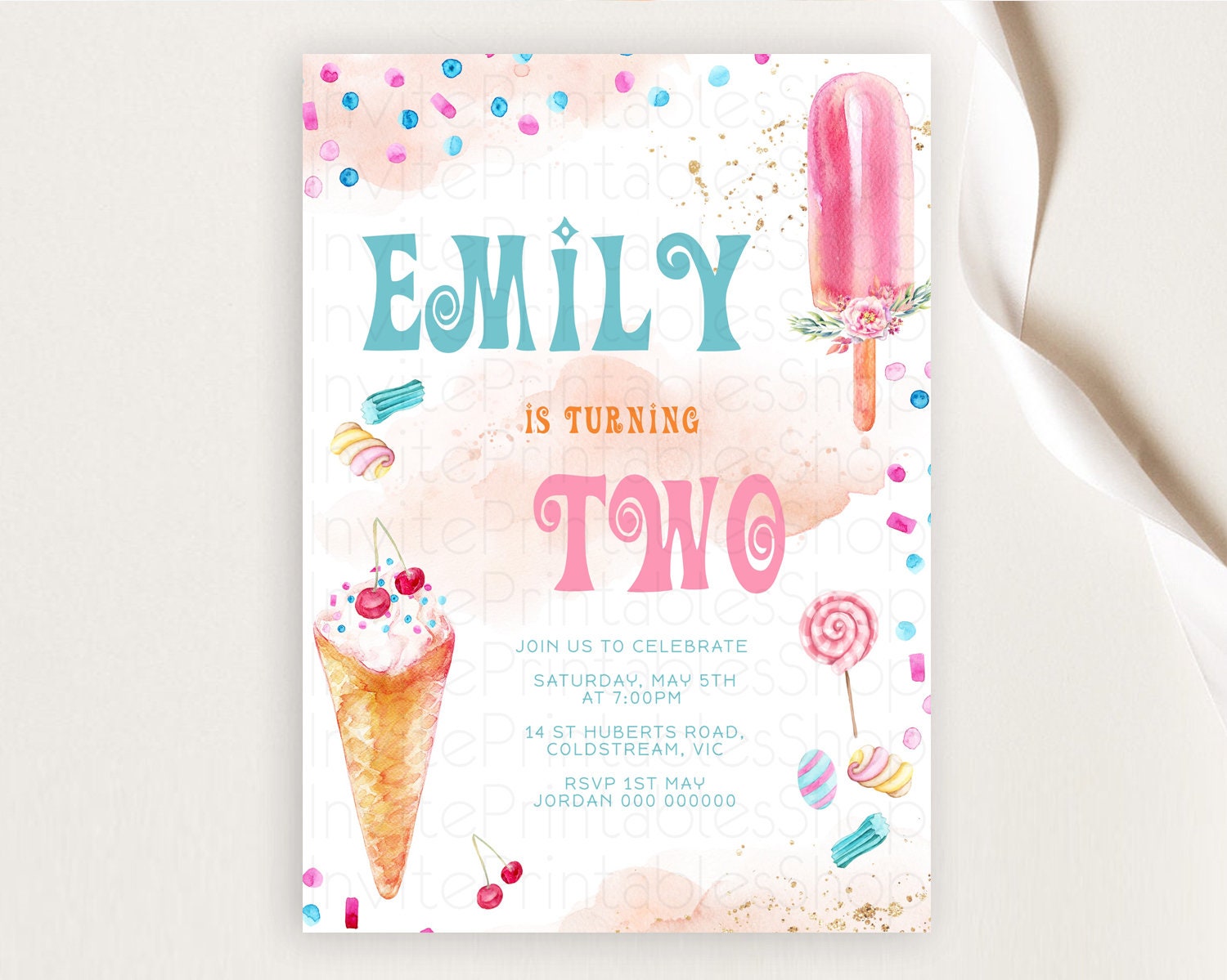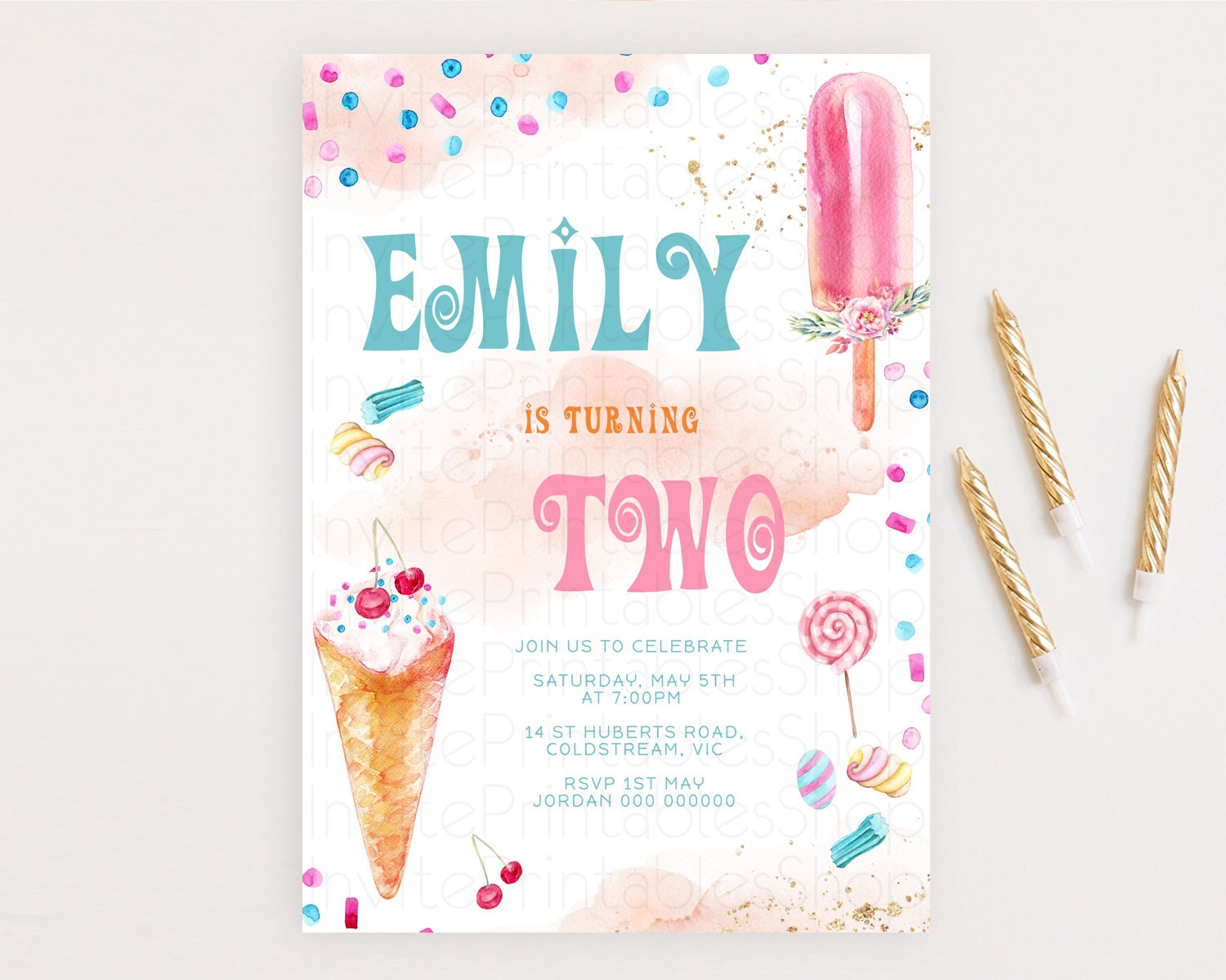 Ice Cream Birthday Invitation Sweet One Invitation Heres The Scoop Invite Two Sweet Party Pastel Invitation 2nd 1st First Birthday D10554