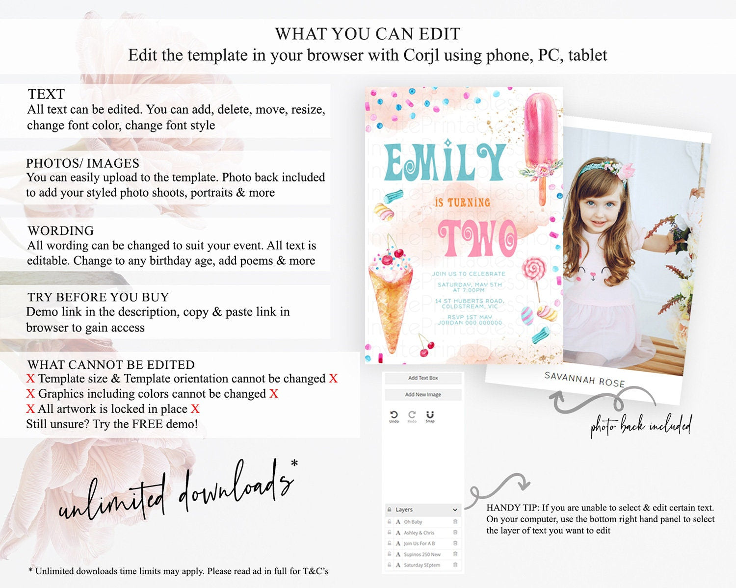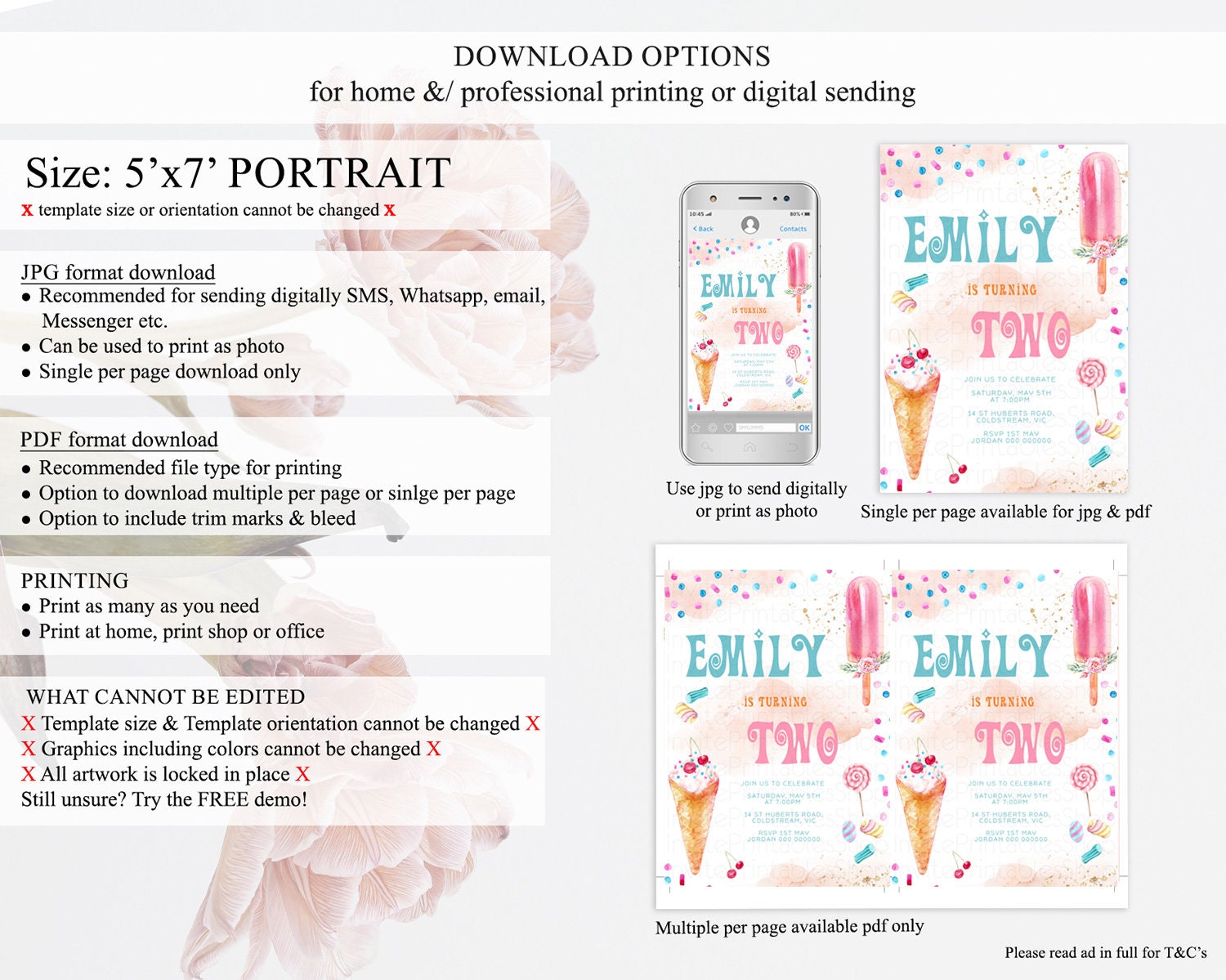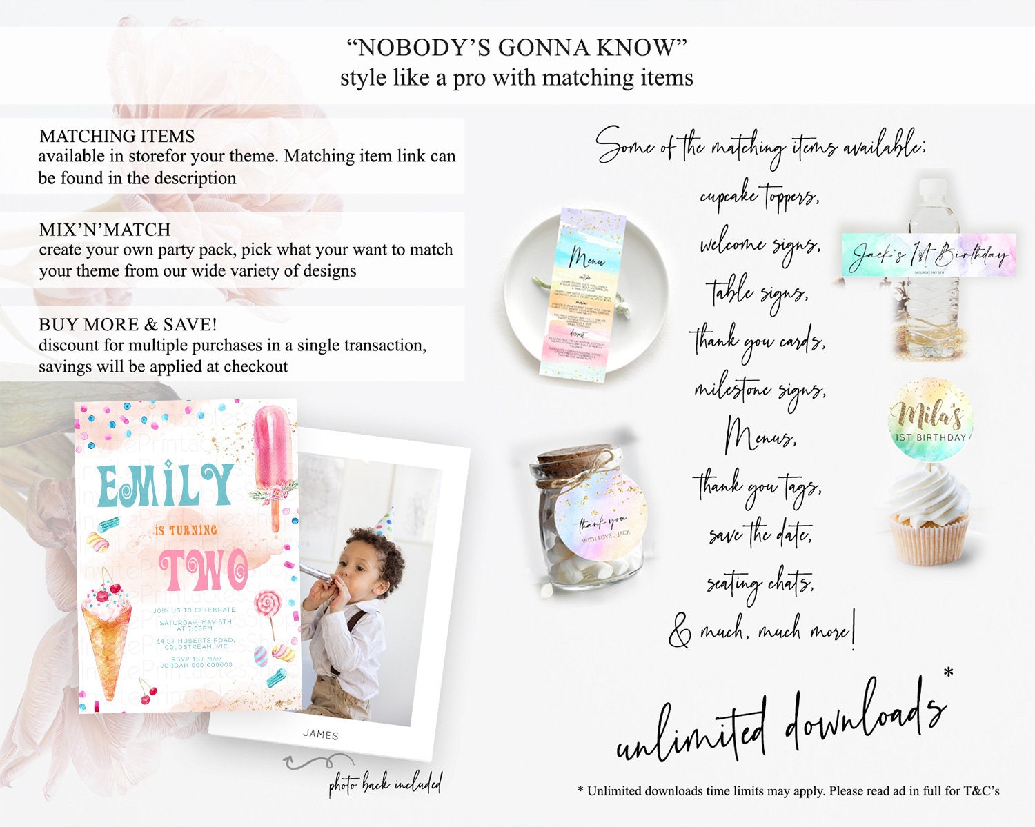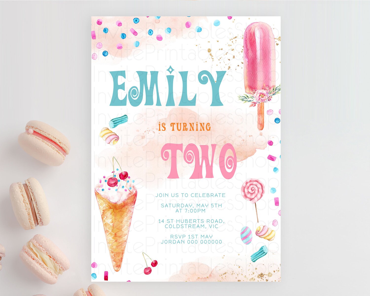 Ice Cream Birthday Invitation Sweet One Invitation Heres The Scoop Invite Two Sweet Party Pastel Invitation 2nd 1st First Birthday D10554