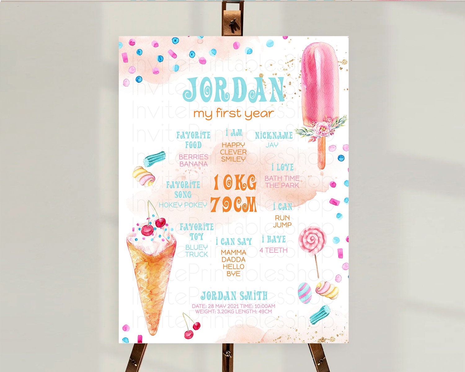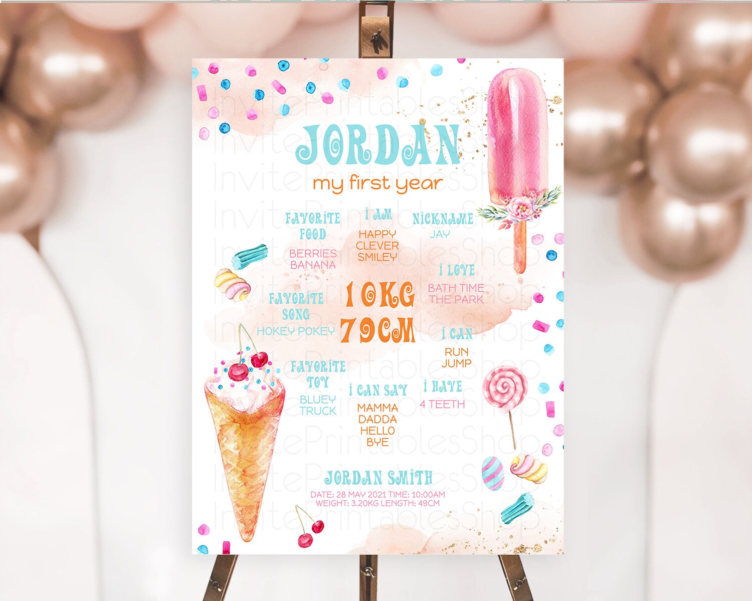 Ice Cream First Birthday Milestone Board Sweet One Milestone Poster Heres The Scoop Pastel Candy Sign First Birthday Welcome Sign D10554