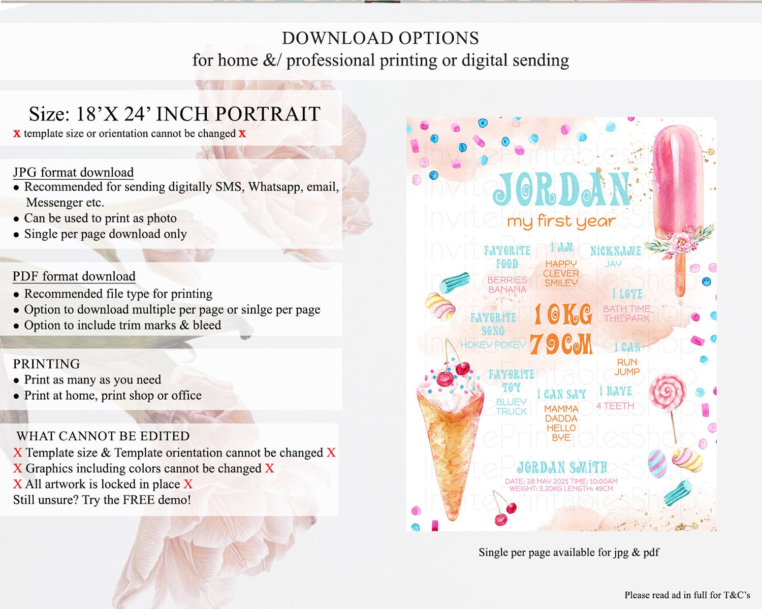 • Template size & orientation cannot be changed. Please use the demo link to confirm this product suits your needs.
